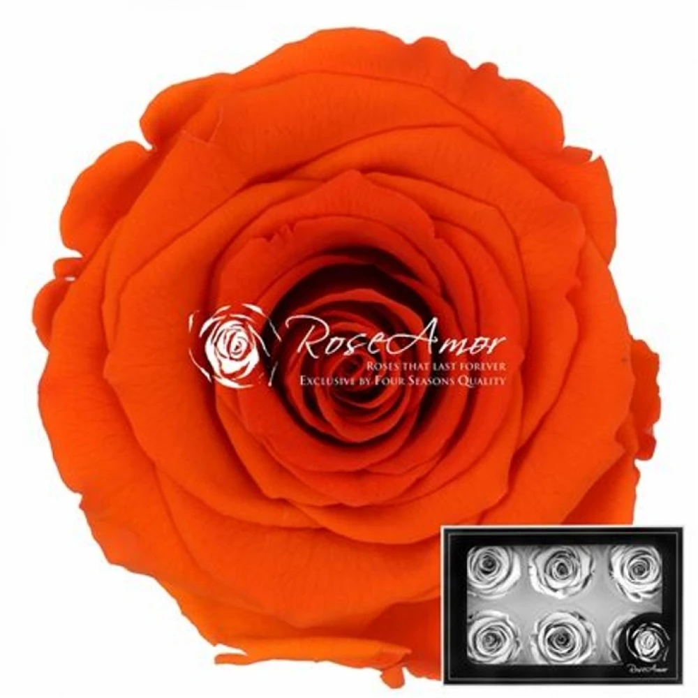 Stabilizované temně oranžové růže v elegantní krabičce po 6 ks od Rose Amor jsou výrazným symbolem radosti a energie. Tyto růže, jejichž barva připomíná zářivý západ slunce, jsou umělecky uspořádány a zachovány ve své nejlepší formě, aby přinesly kus přírodní krásy do každého prostoru. Růže prochází speciálním procesem stabilizace. Tento proces zachovává jejich krásu a svěžest po dlouhou dobu, aniž by potřebovaly jakoukoliv péči nebo vodu.