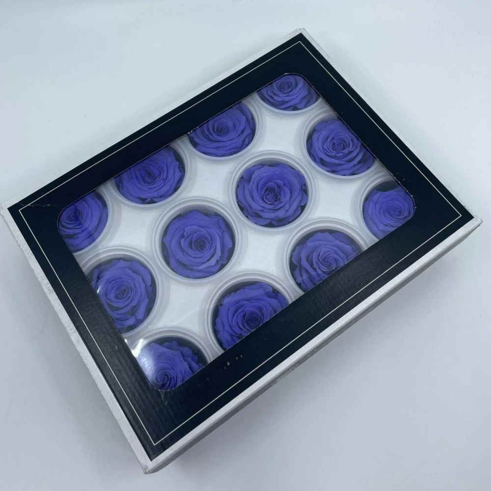 Stabilizované tmavě fialové růže v krabičce 12ks
