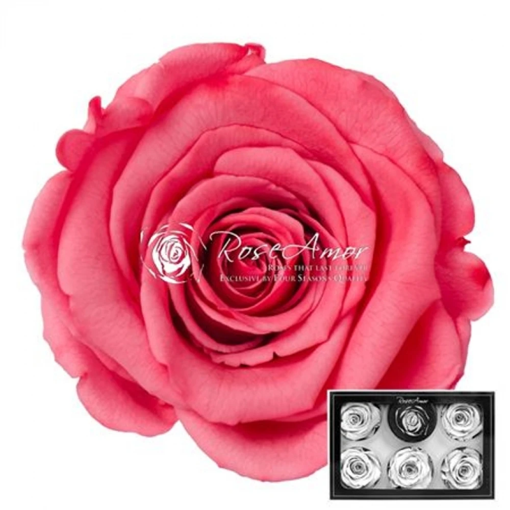 Stabilizované tmavě růžové růže velikosti L, v elegantní krabičce po 6 ks jsou příkladem řemeslné dokonalosti a trvalé krásy. Bez potřeby vody či péče si díky inovativní technice stabilizace zachovávají svou sytou barvu a plnost tvaru, zůstávají nádherně svěží po dlouhá léta.