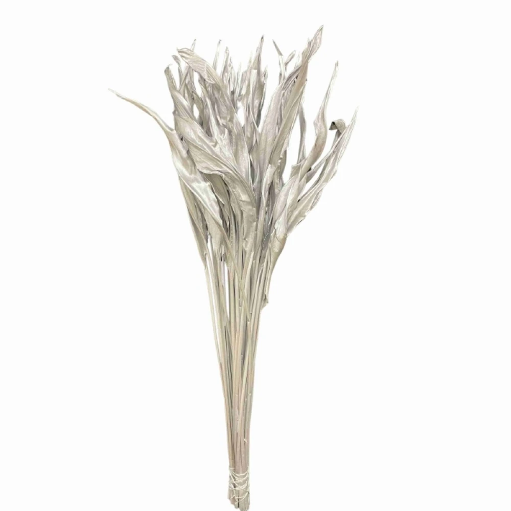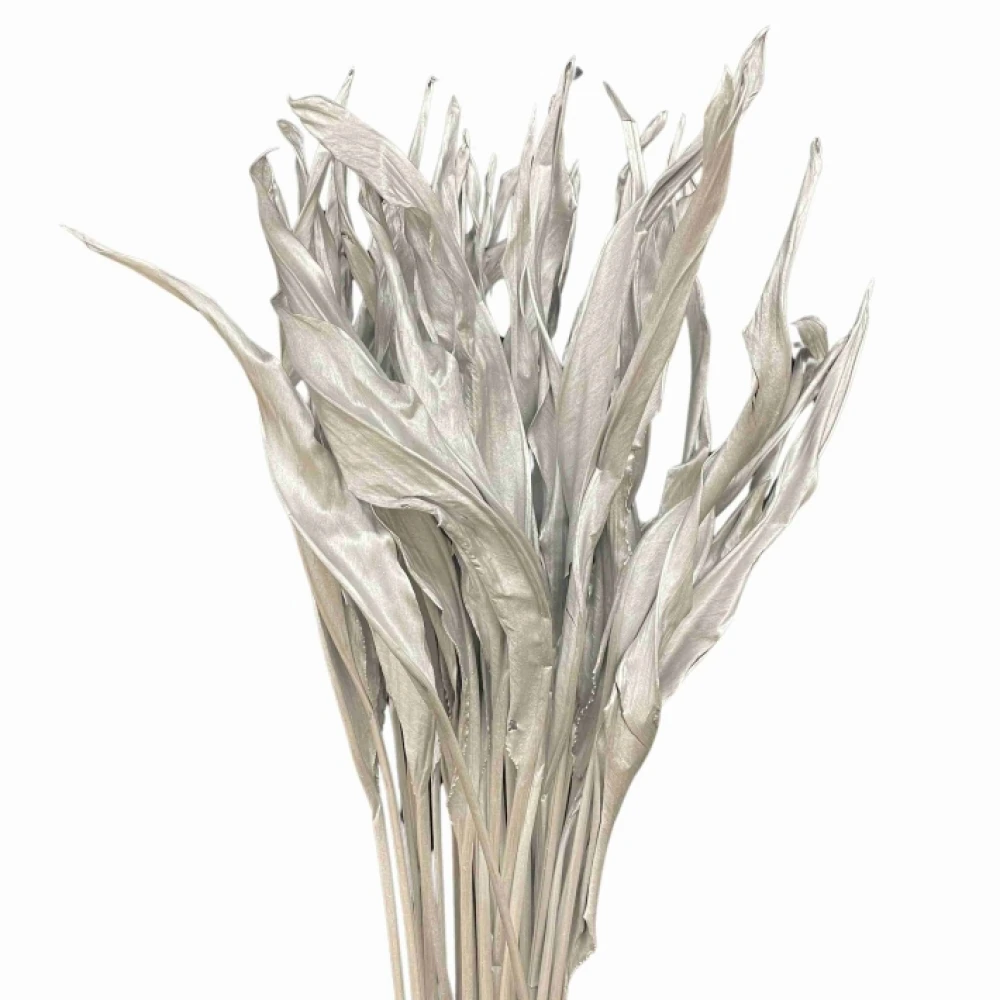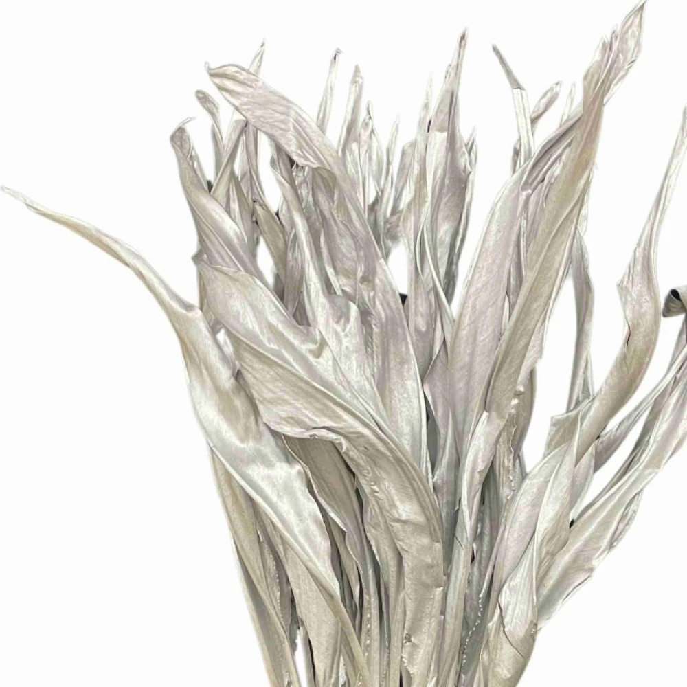 Oživte své prostory elegancí s našimi STRELITZIA BLAD SILVER. Tyto dekorační listy mají nádechem stříbrného lesku. Každý list je opatřen šetrným procesem barvení, kde používají ekologické barvy splňující nejpřísnější normy, získané od předního světového výrobce dekoračních prostředků, firmy Oasis.