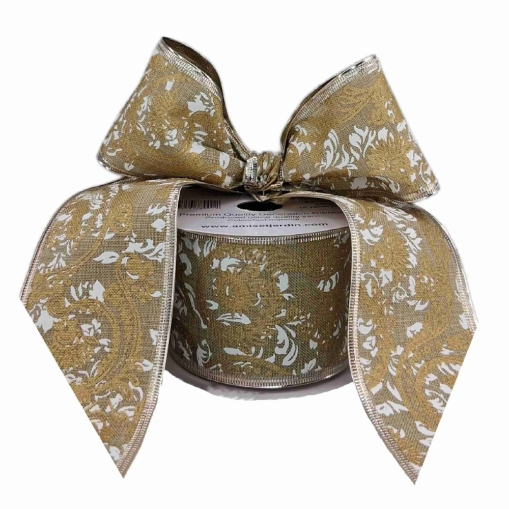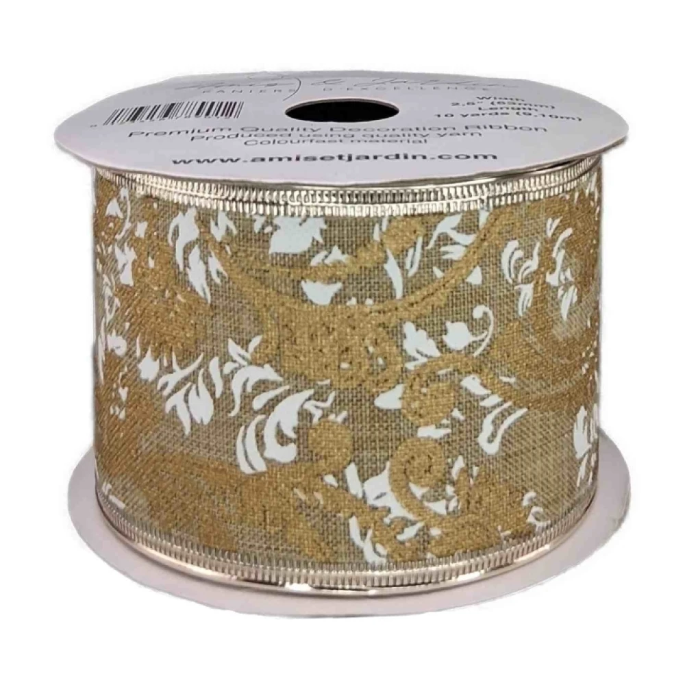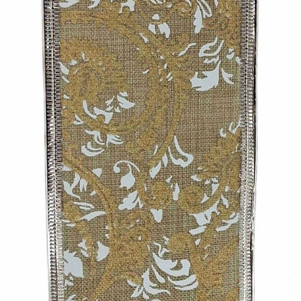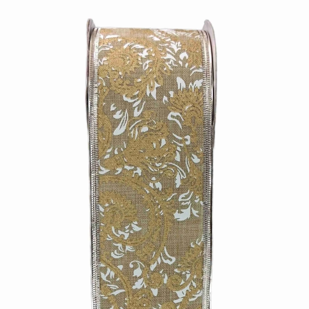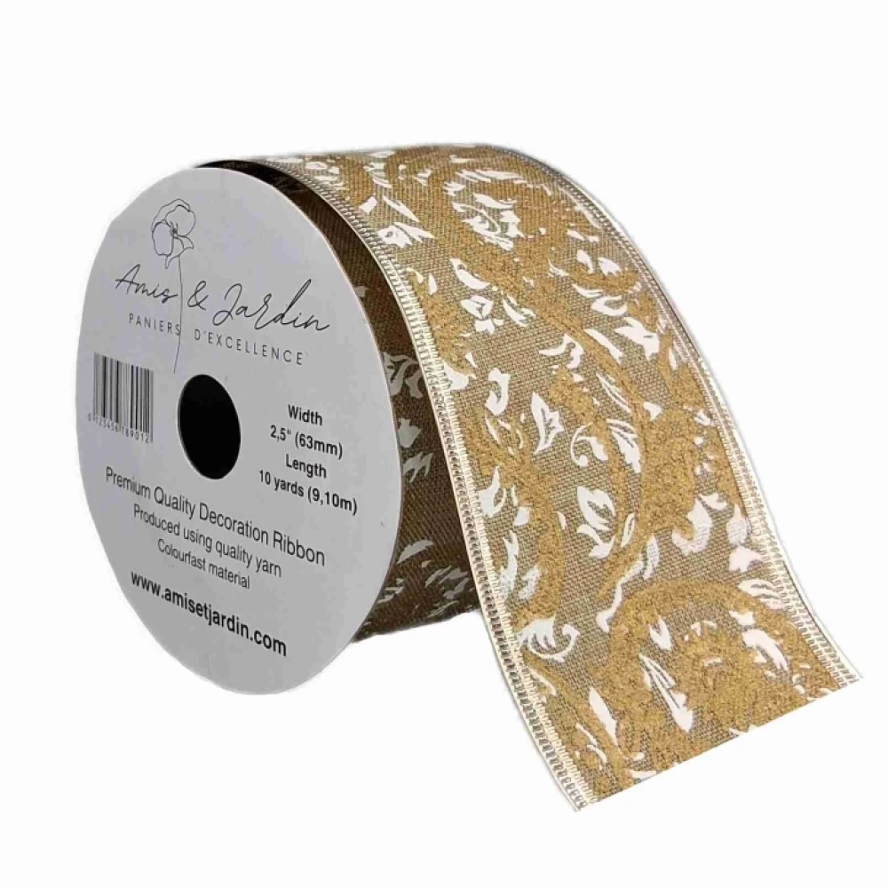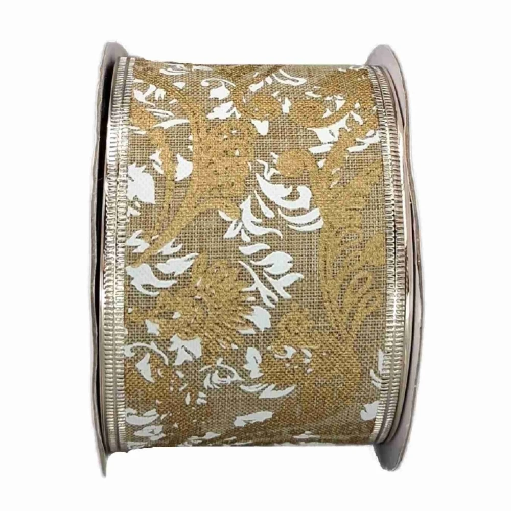 Stuha jutová s drátkem béžová ornamenty 9.1 m