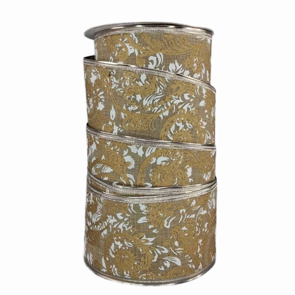 - Stuha jutová s drátkem béžová ornamenty 9.1 m