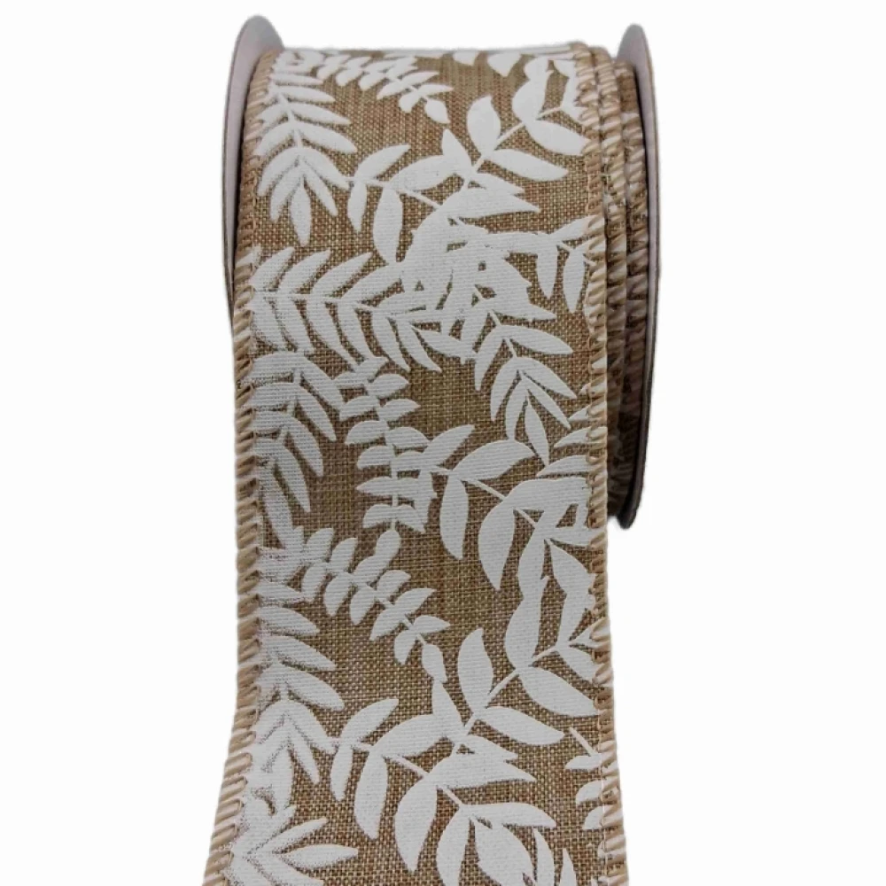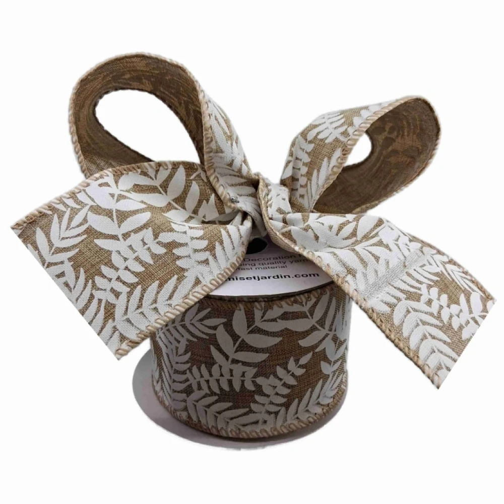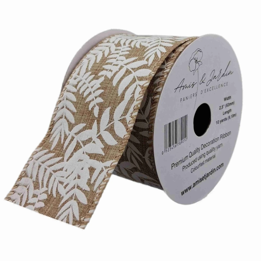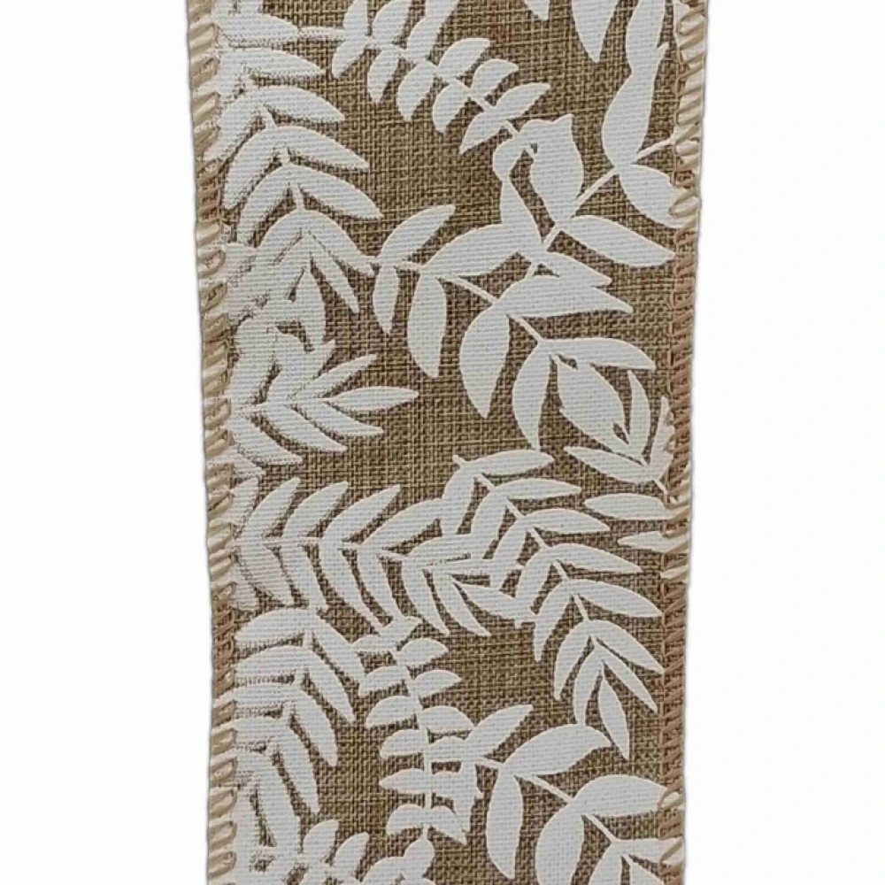 Stuha jutová s drátkem béžová přírodní listy 9.1 m