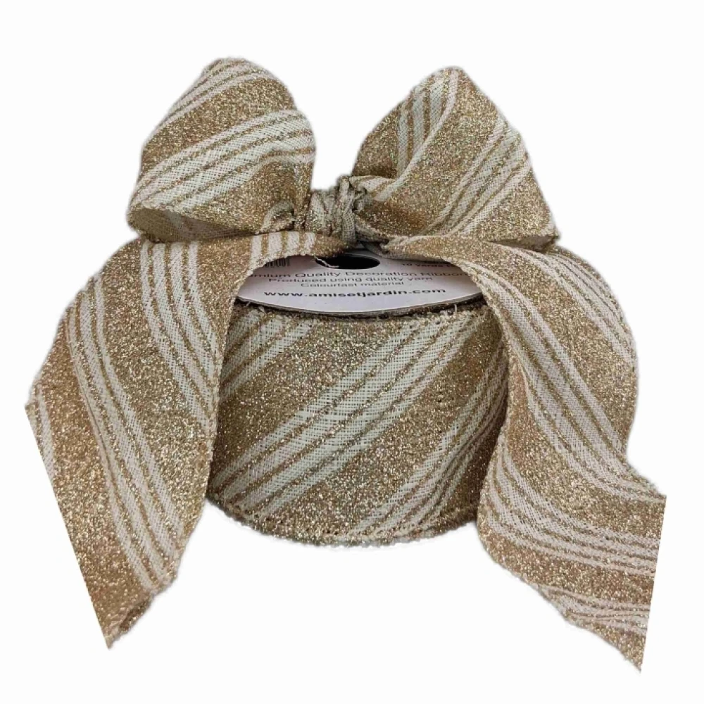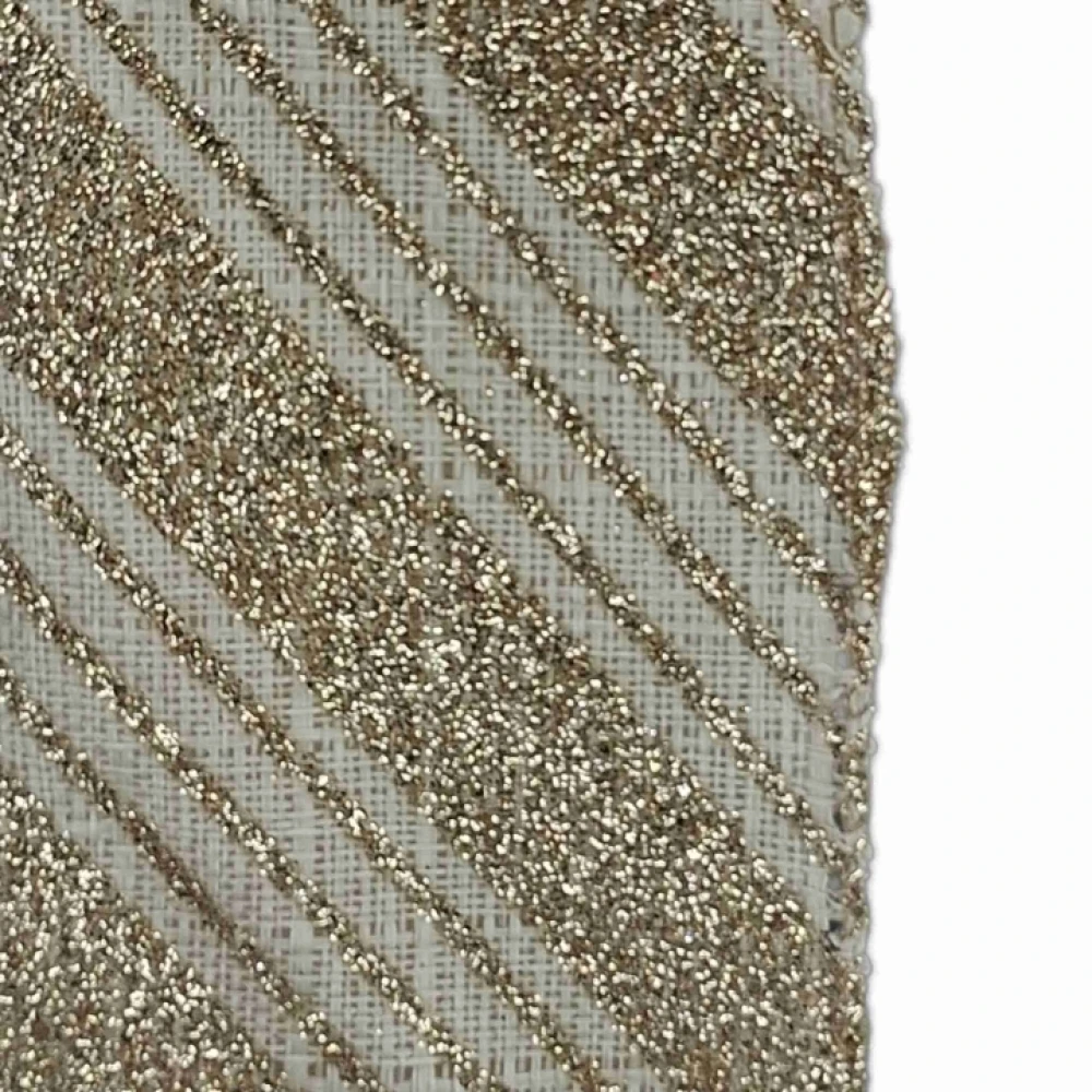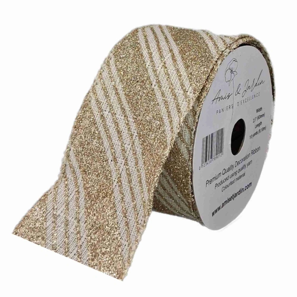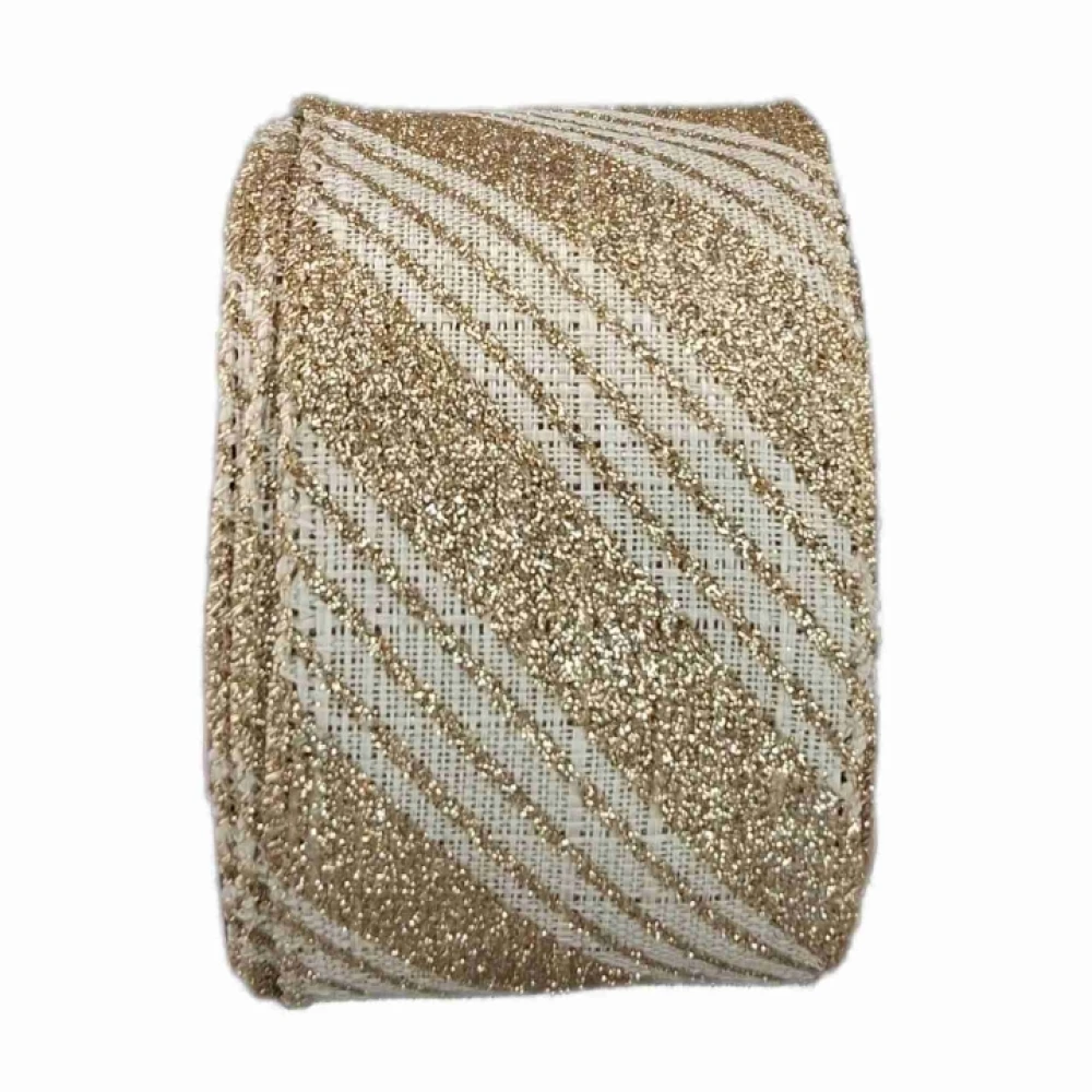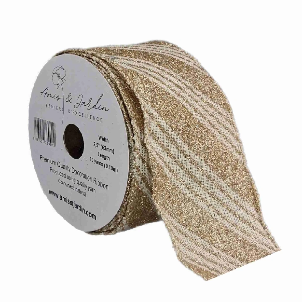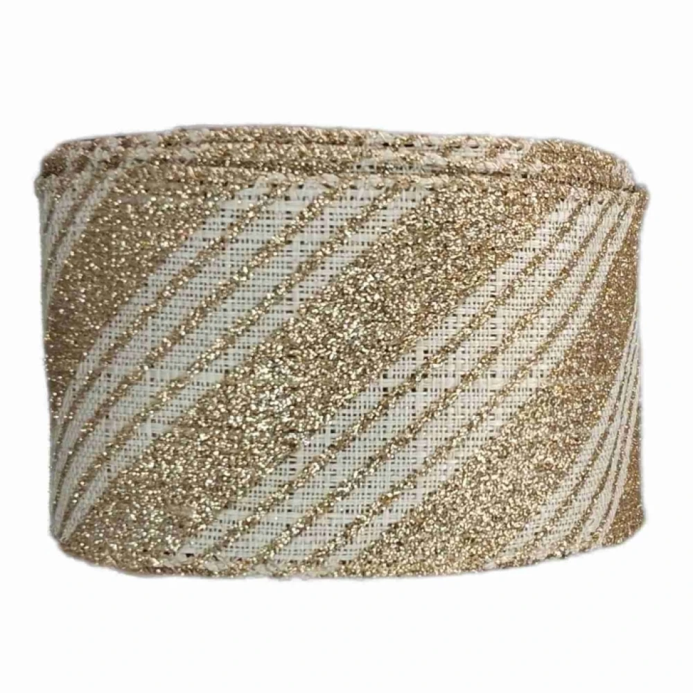 Tato elegantní jutová stuha s drátkem v béžové barvě a zlatými třpytivými pruhy je ideální pro vánoční dekorace a dárkové balení. Díky měkké tuhosti a zesílenému lemu se snadno tvaruje do velkých mašlí na dárky nebo adventní věnce. Stuhy jsou skladem. Objednejte dnes do 17:00, zítra vám je doručíme kamkoliv po ČR. Kurýra můžete díky GPS sledovat online.