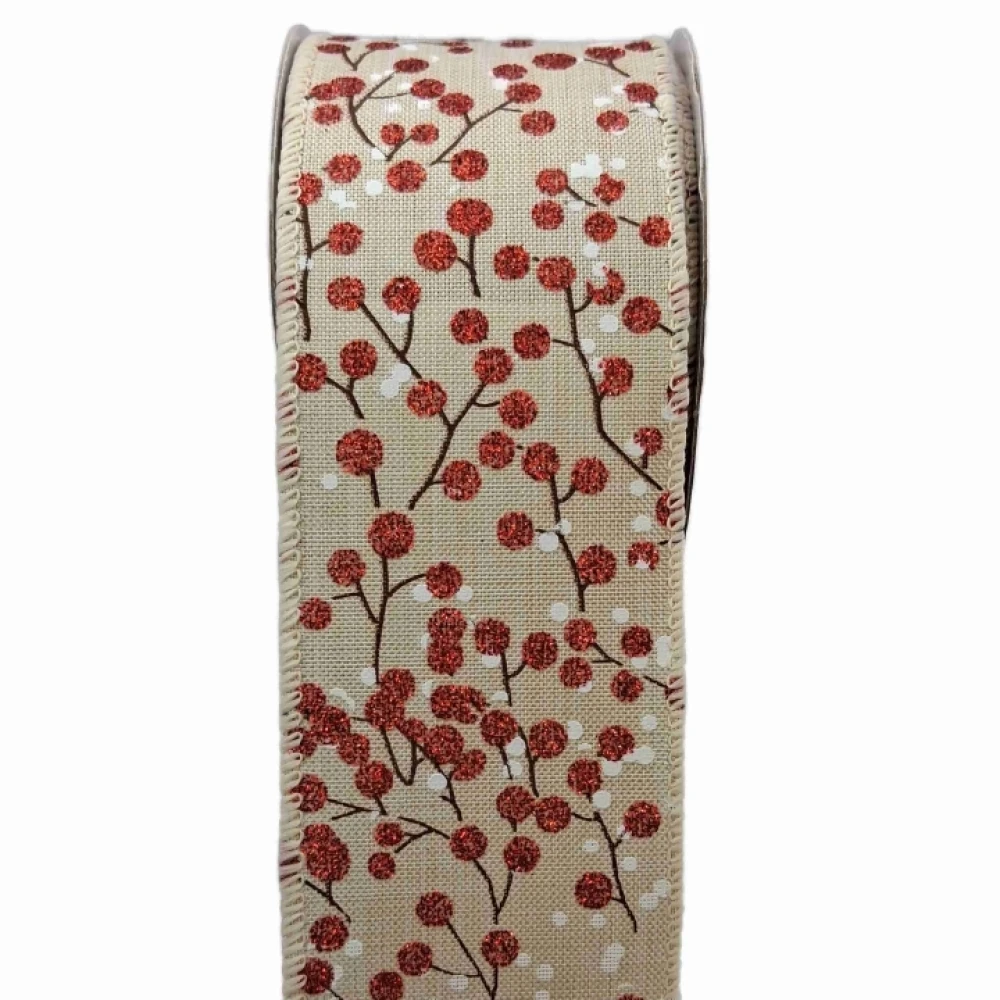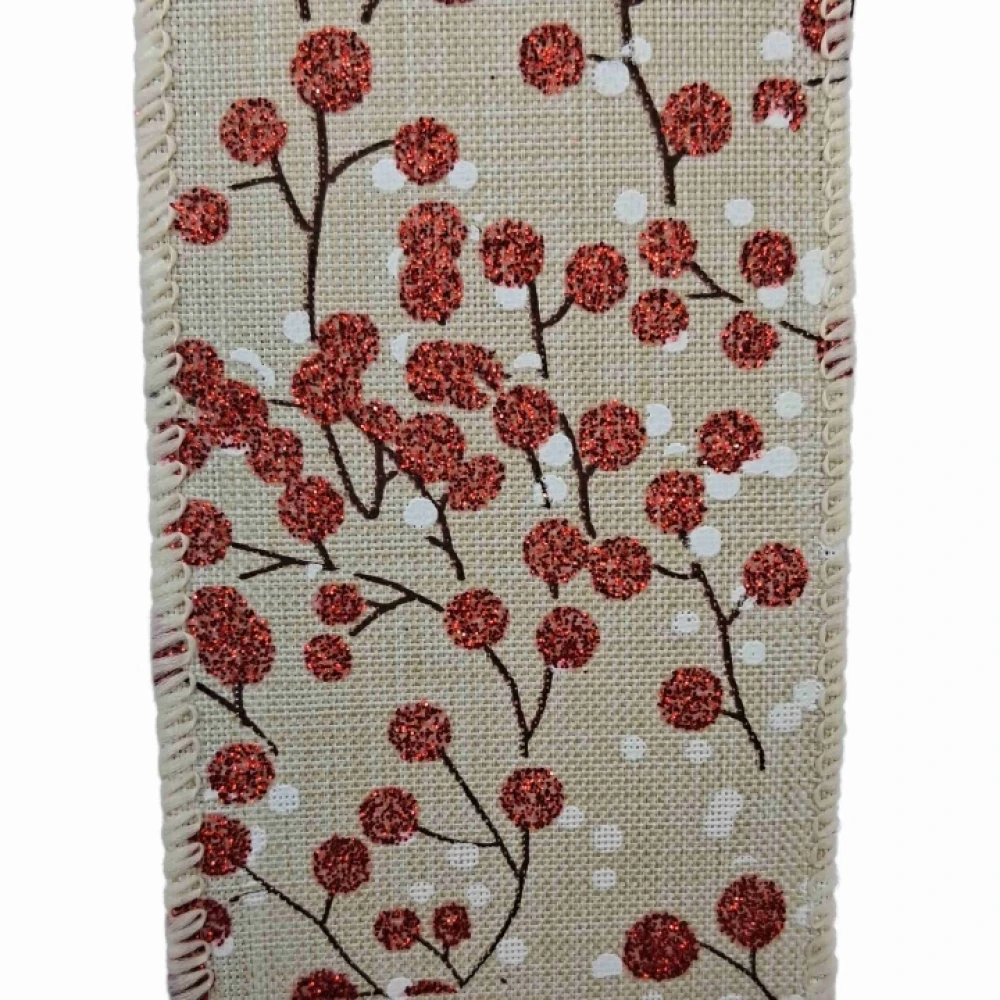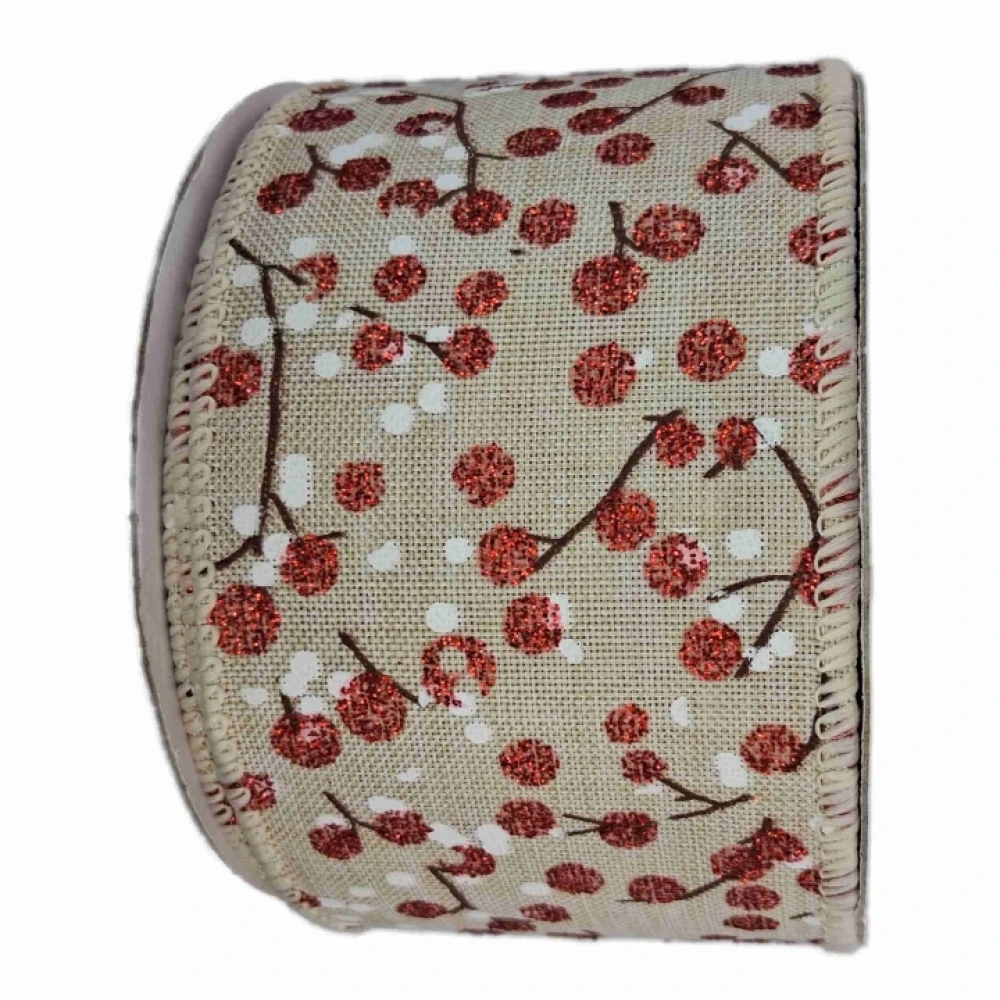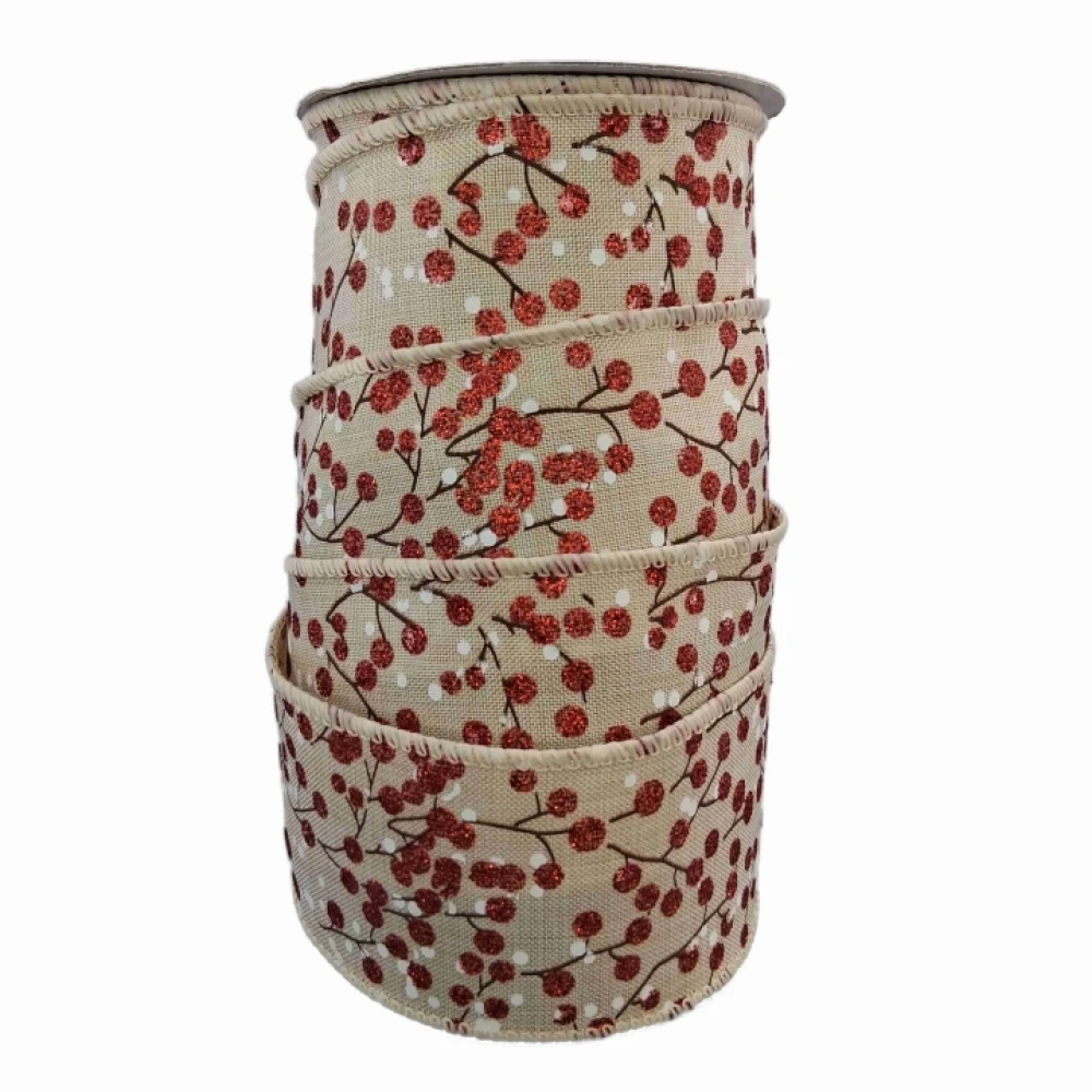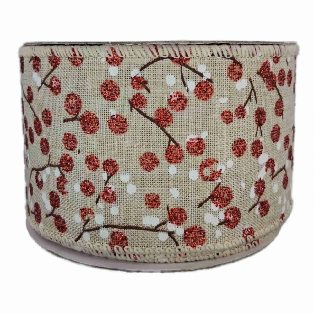 Stuha jutová s drátkem béžová vánoční větvičky s bobulkami 9.1 m