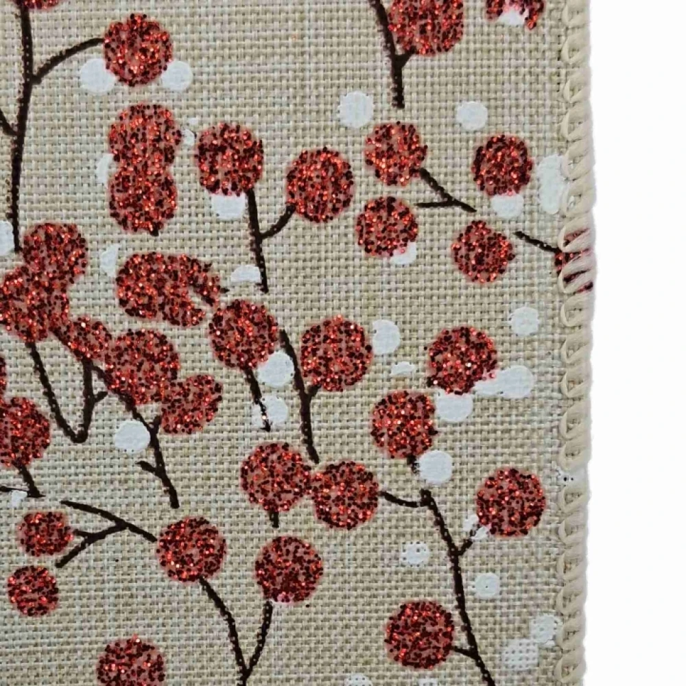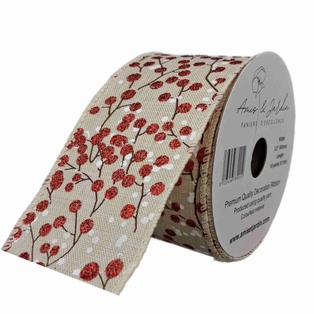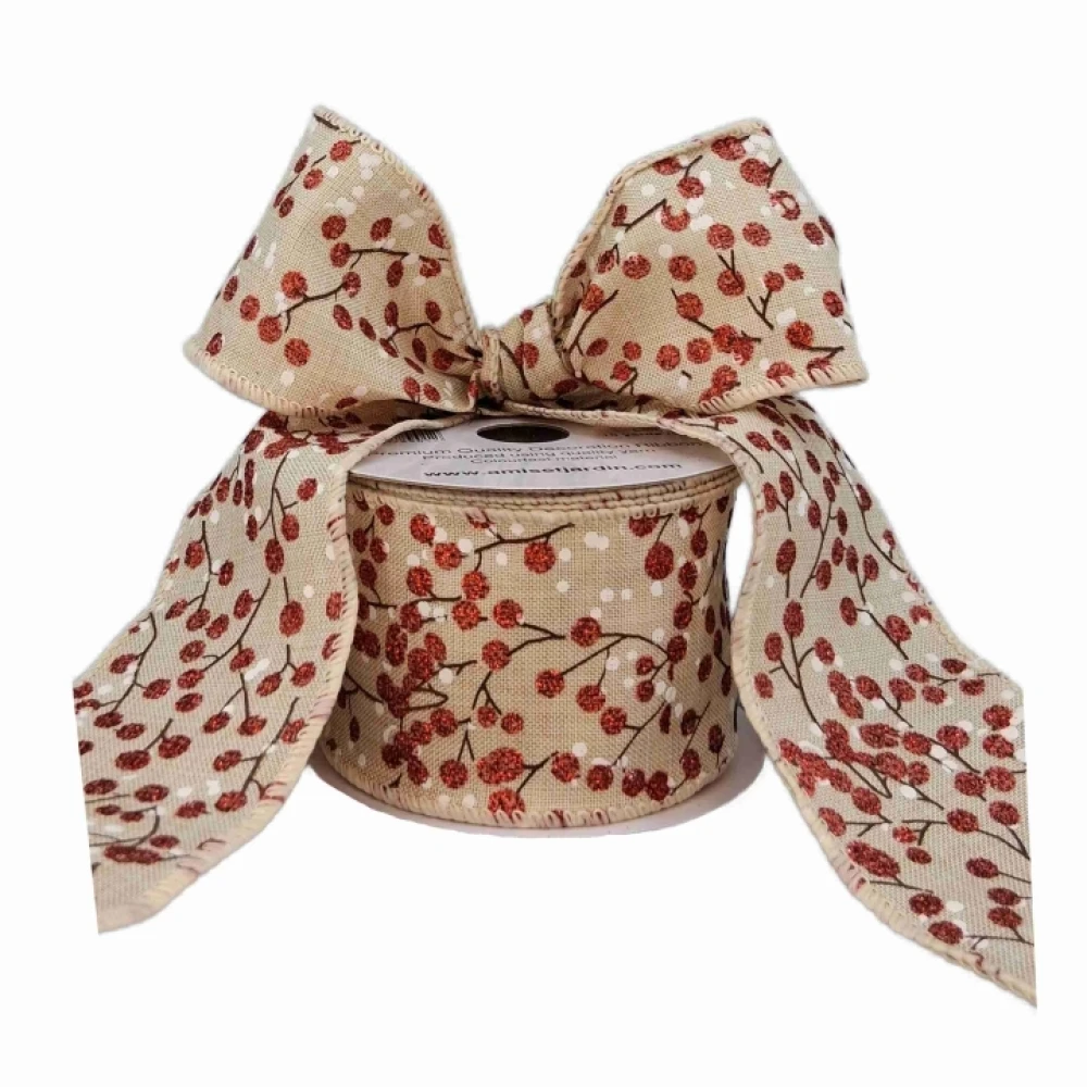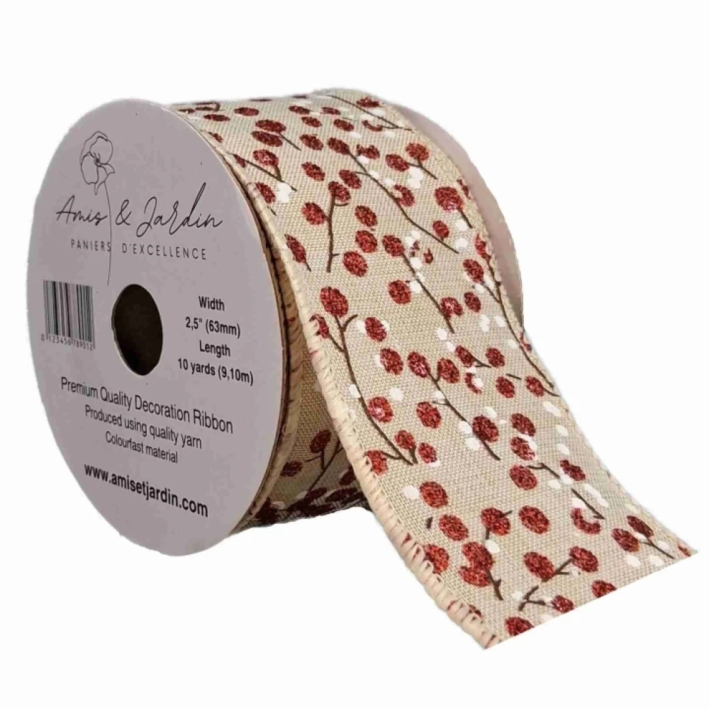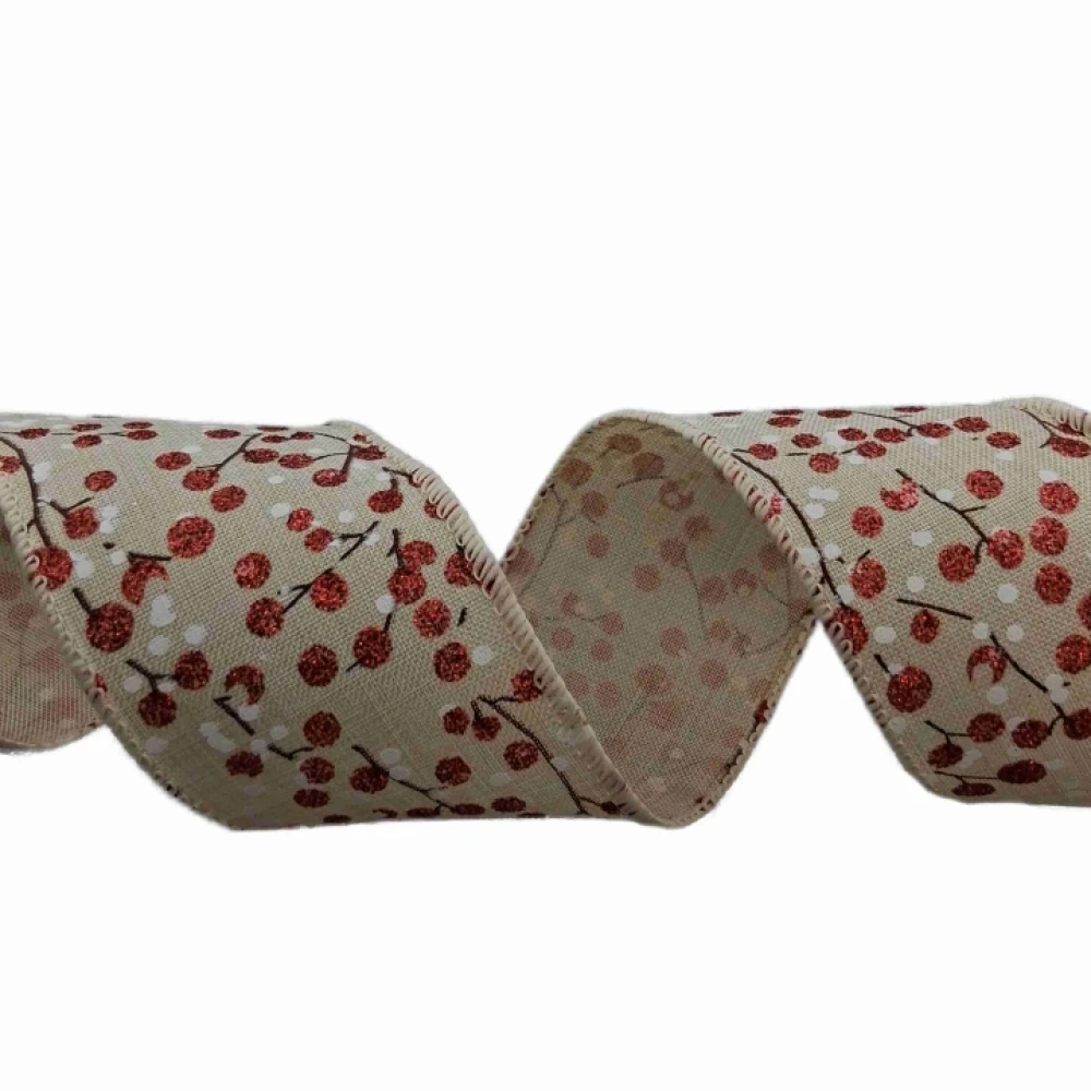 Stuha jutová s drátkem béžová vánoční větvičky s bobulkami 9.1 m