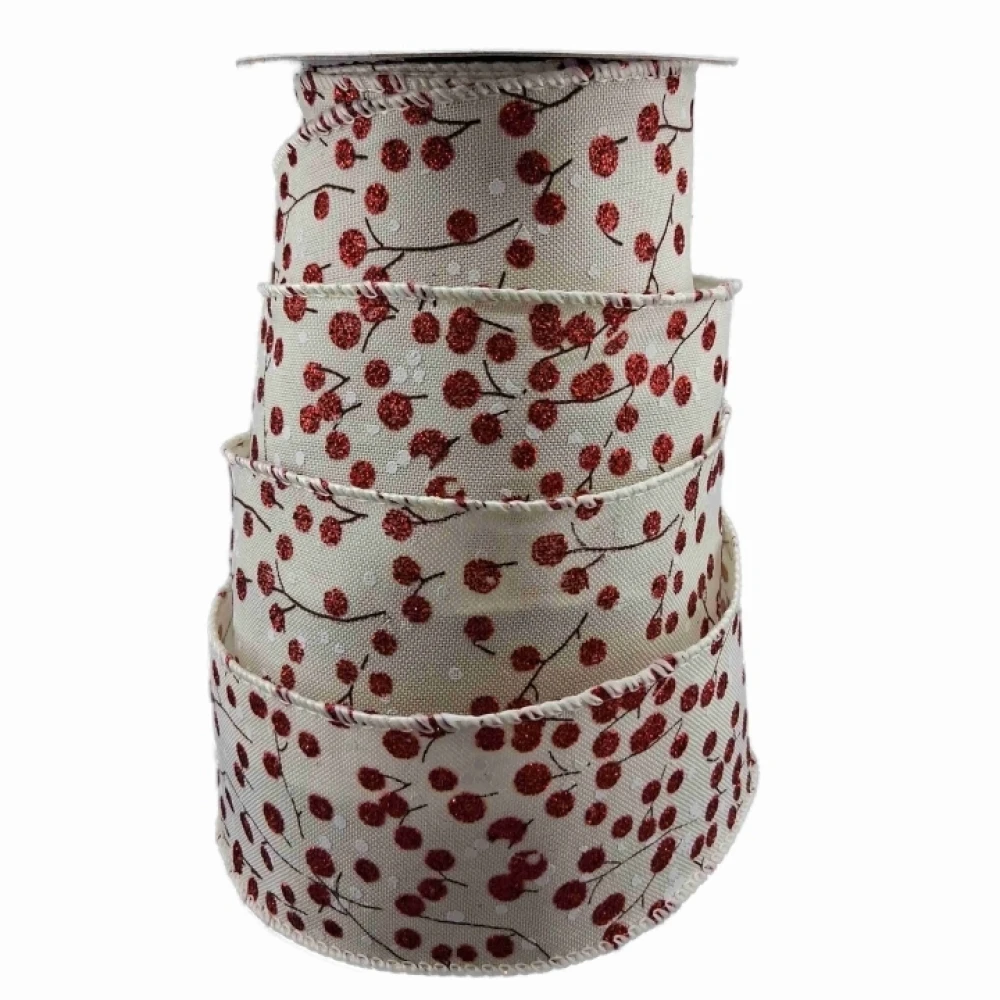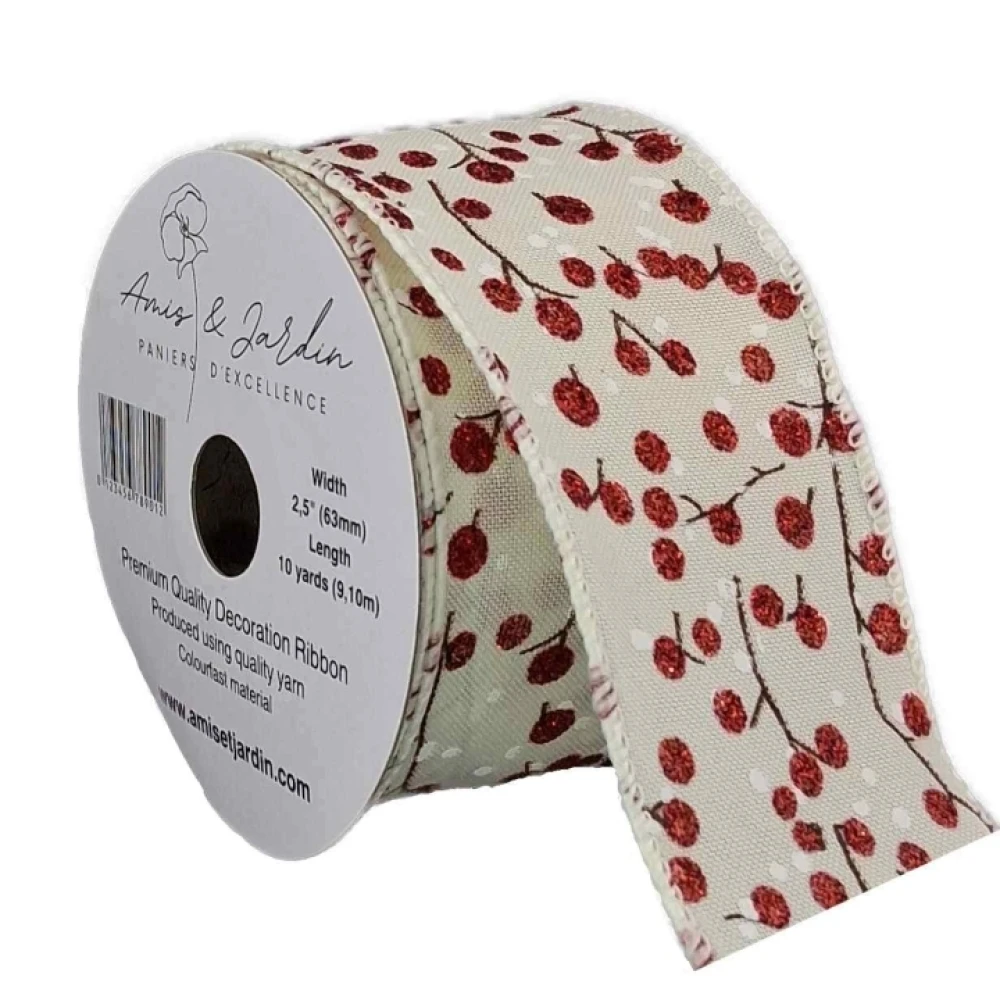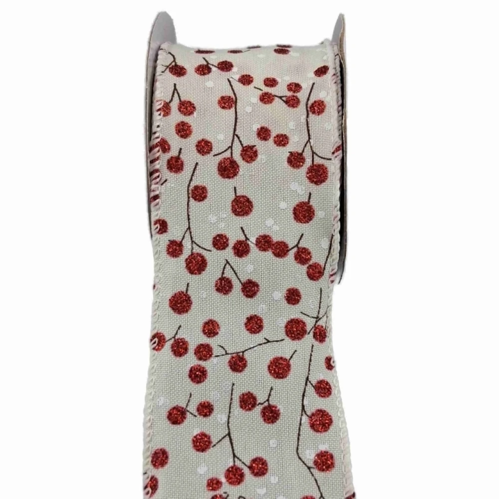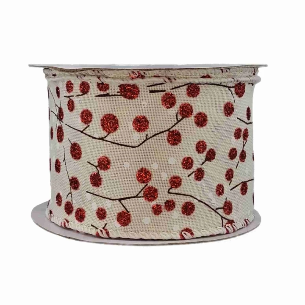 Stuha jutová s drátkem béžová vánoční větvičky s bobulkami 9.1 m