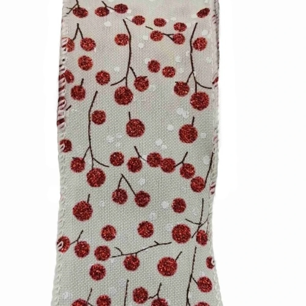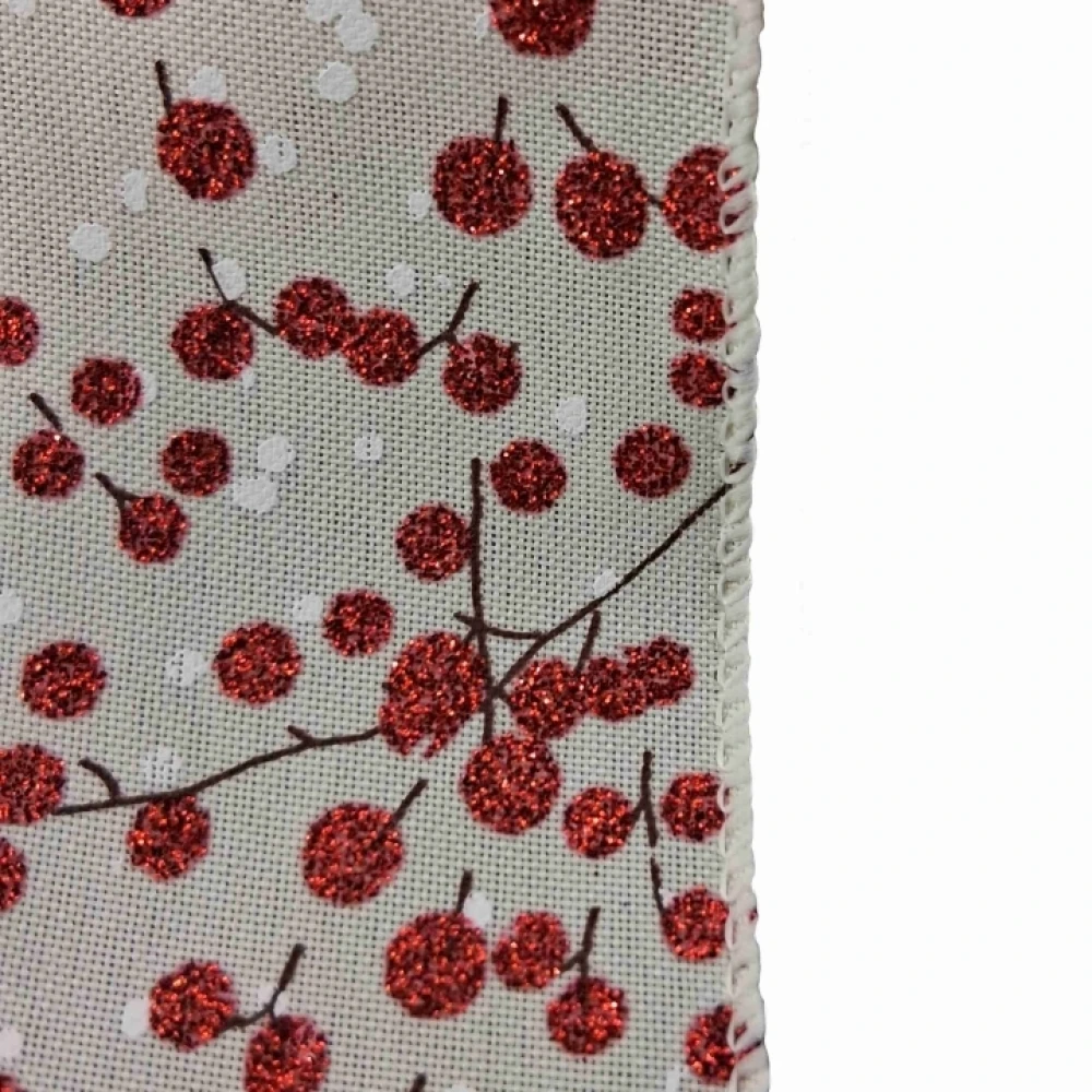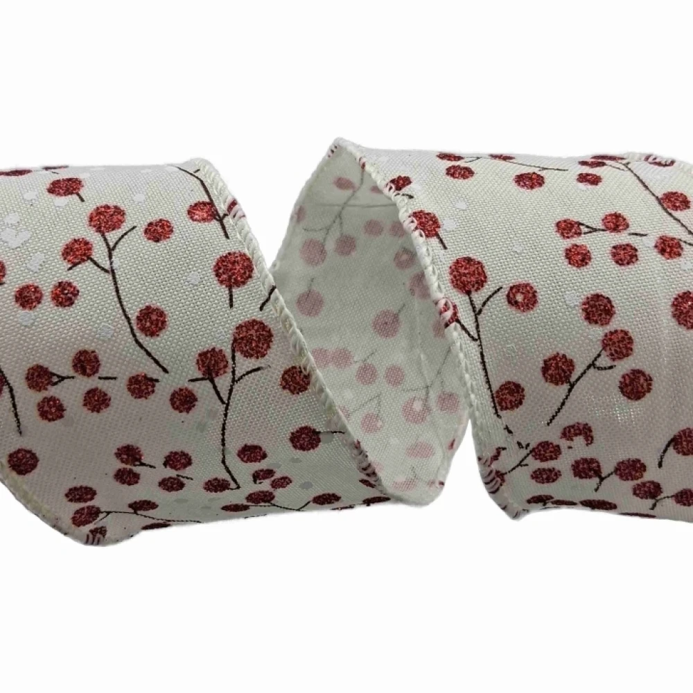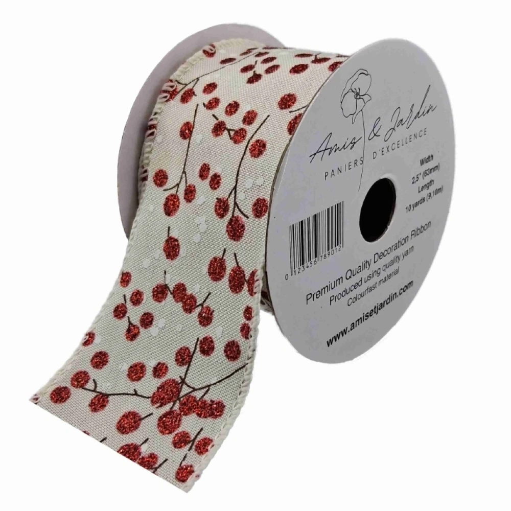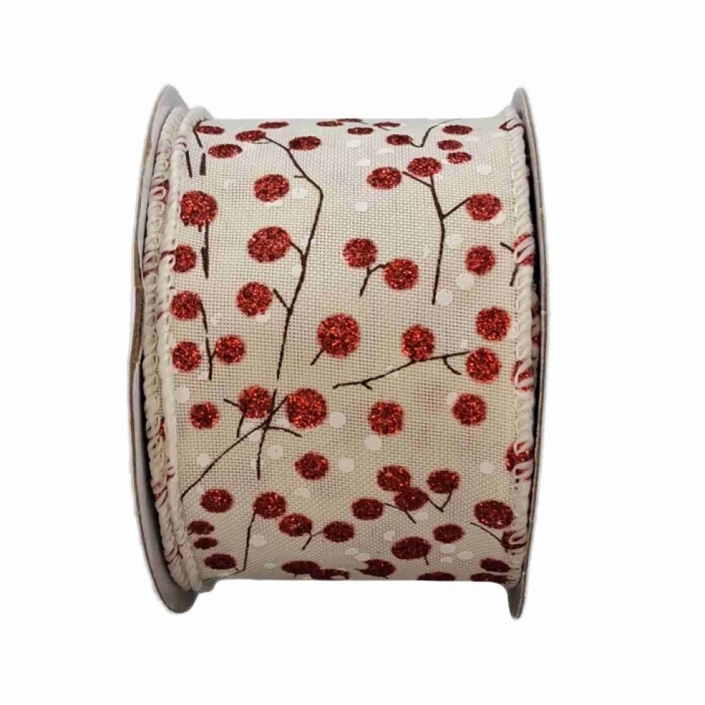 Stuha jutová s drátkem béžová vánoční větvičky s bobulkami 9.1 m