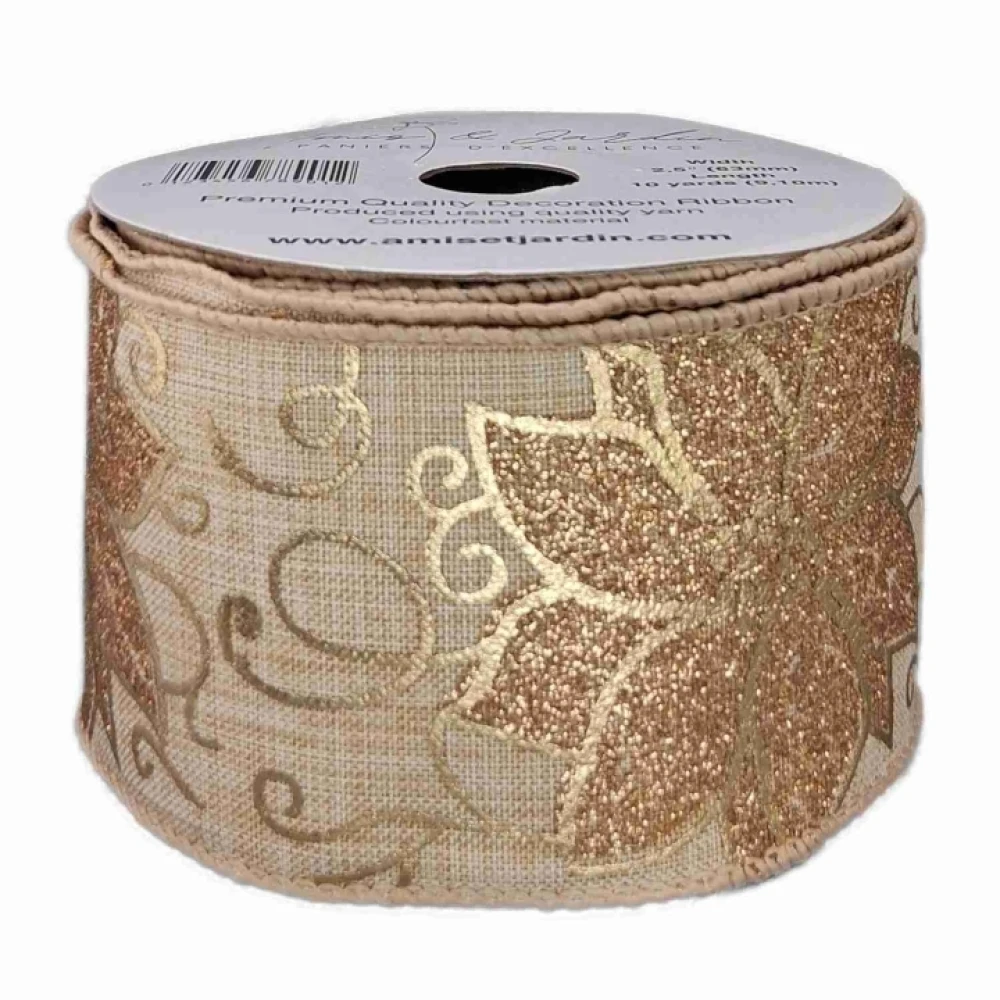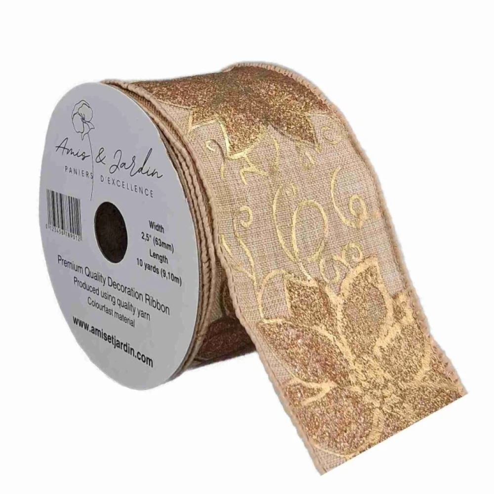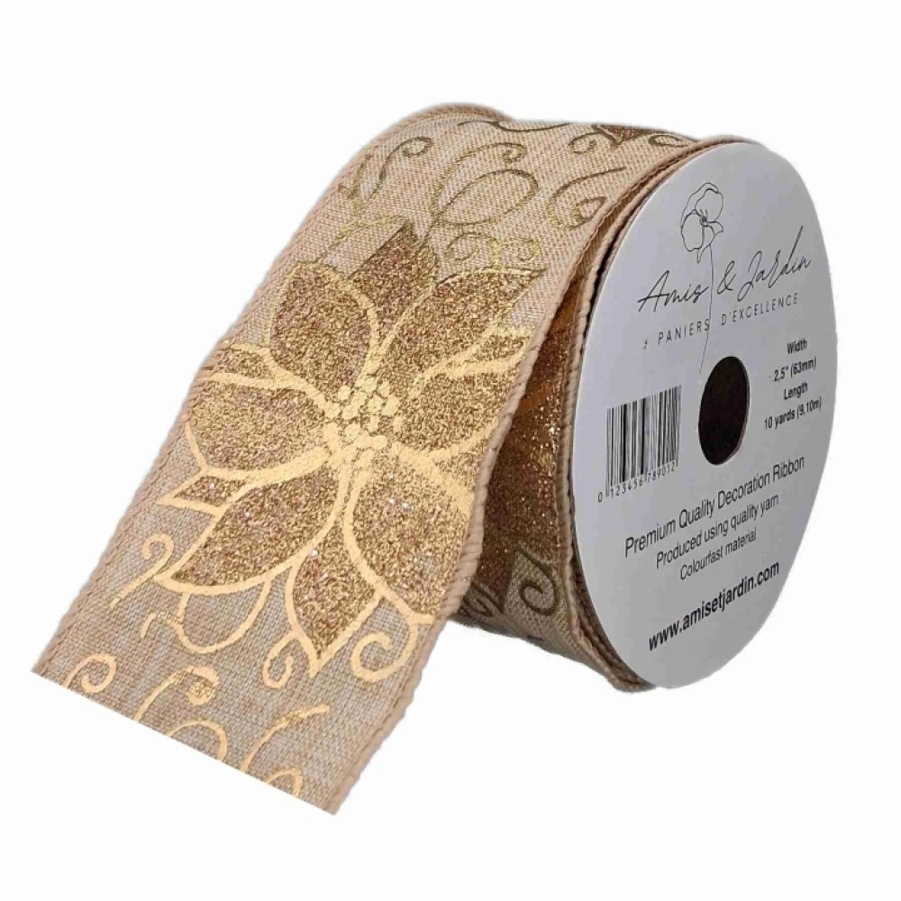 Stuha jutová s drátkem béžovo - zlatá vánoční 9.1 m