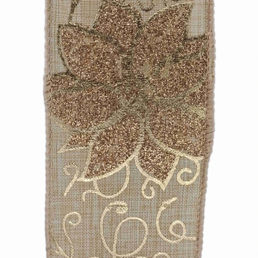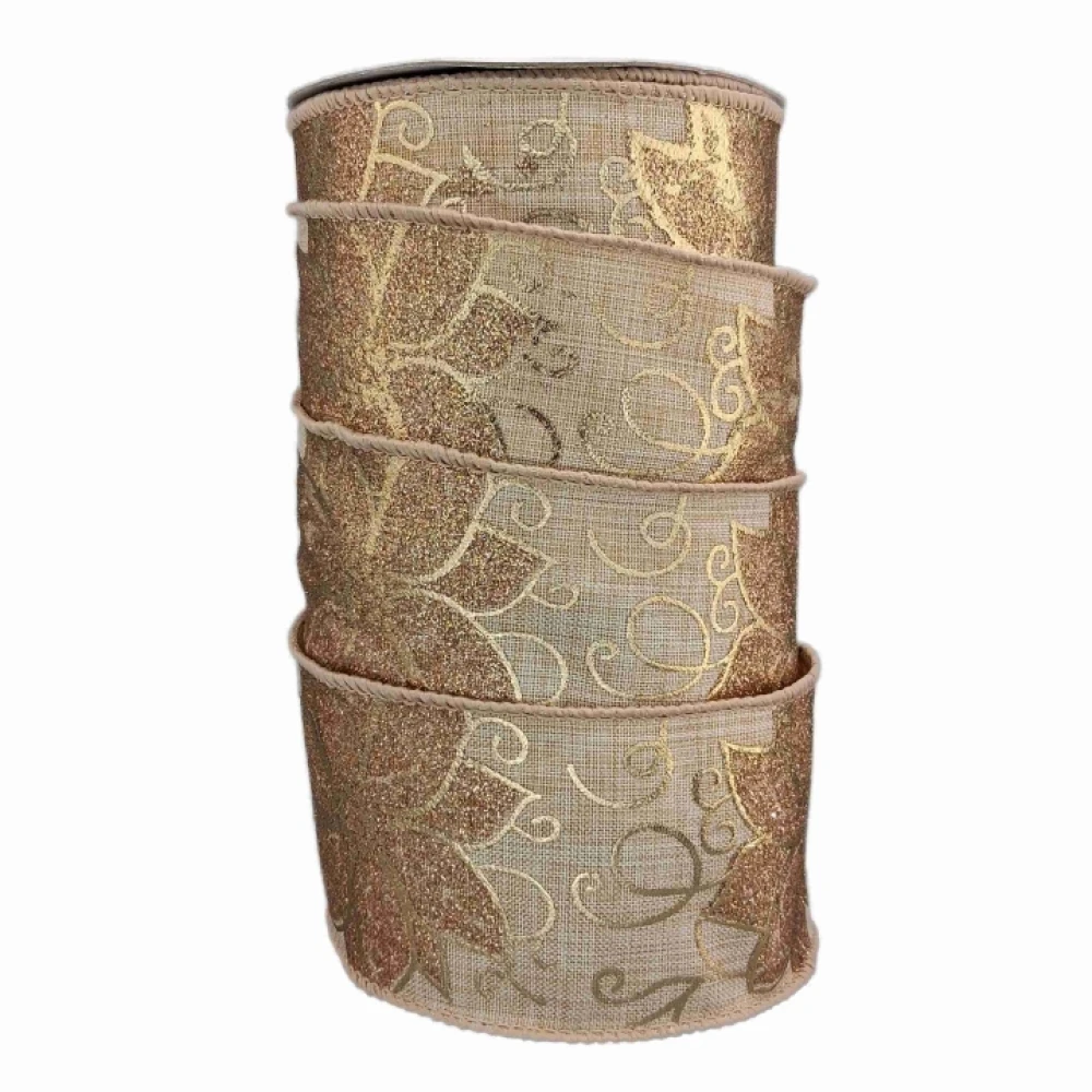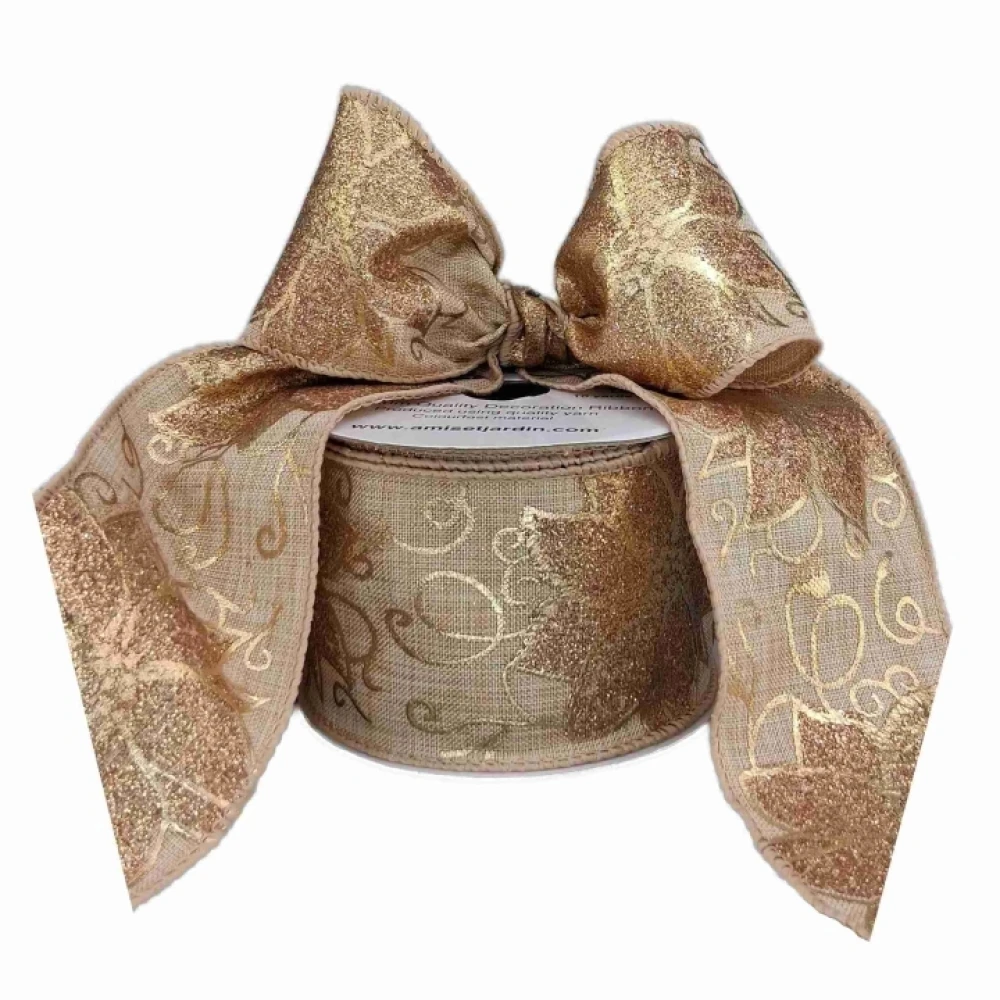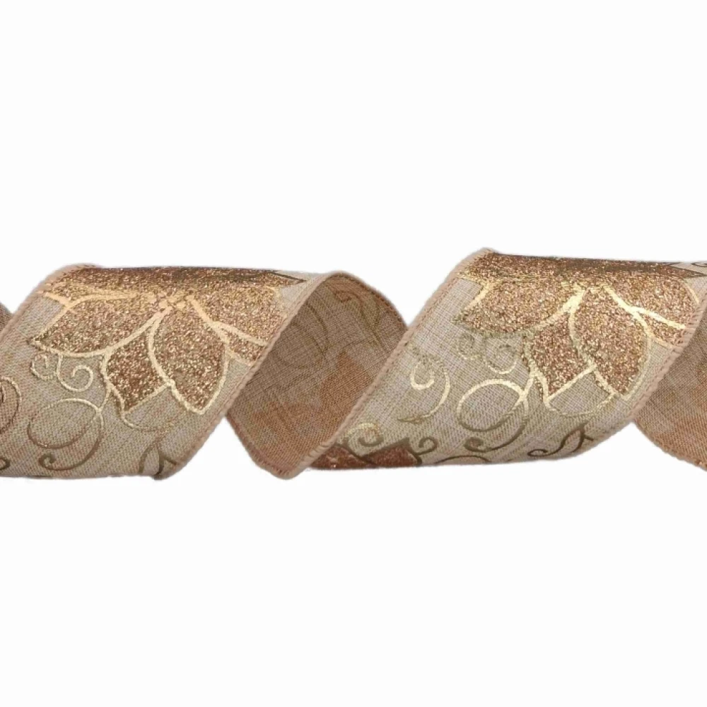 Stuha jutová s drátkem béžovo - zlatá vánoční 9.1 m