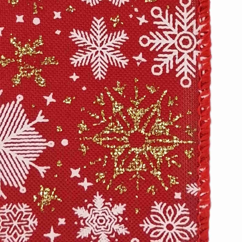 Stuha jutová s drátkem červená vánoční sněhové vločky 9.1 m