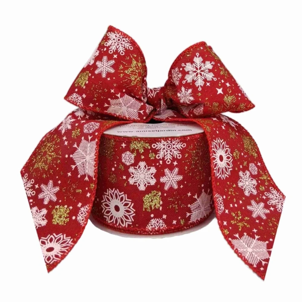 Tato červená jutová stuha s drátkovým lemem a třpytivým potiskem sněhových vloček je ideální pro vánoční dekorace a balení dárků. Díky střední tuhosti a šíři 6,3 mm je vhodná pro tvarování mašlí na adventní věnce nebo dárky. Stuhy jsou skladem. Objednejte dnes do 17:00, zítra vám je doručíme kamkoliv po ČR. Kurýra můžete díky GPS sledovat online.