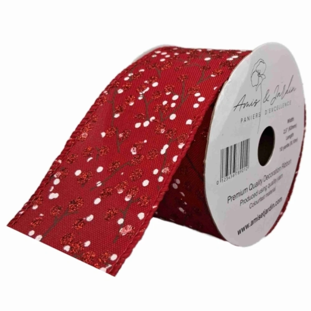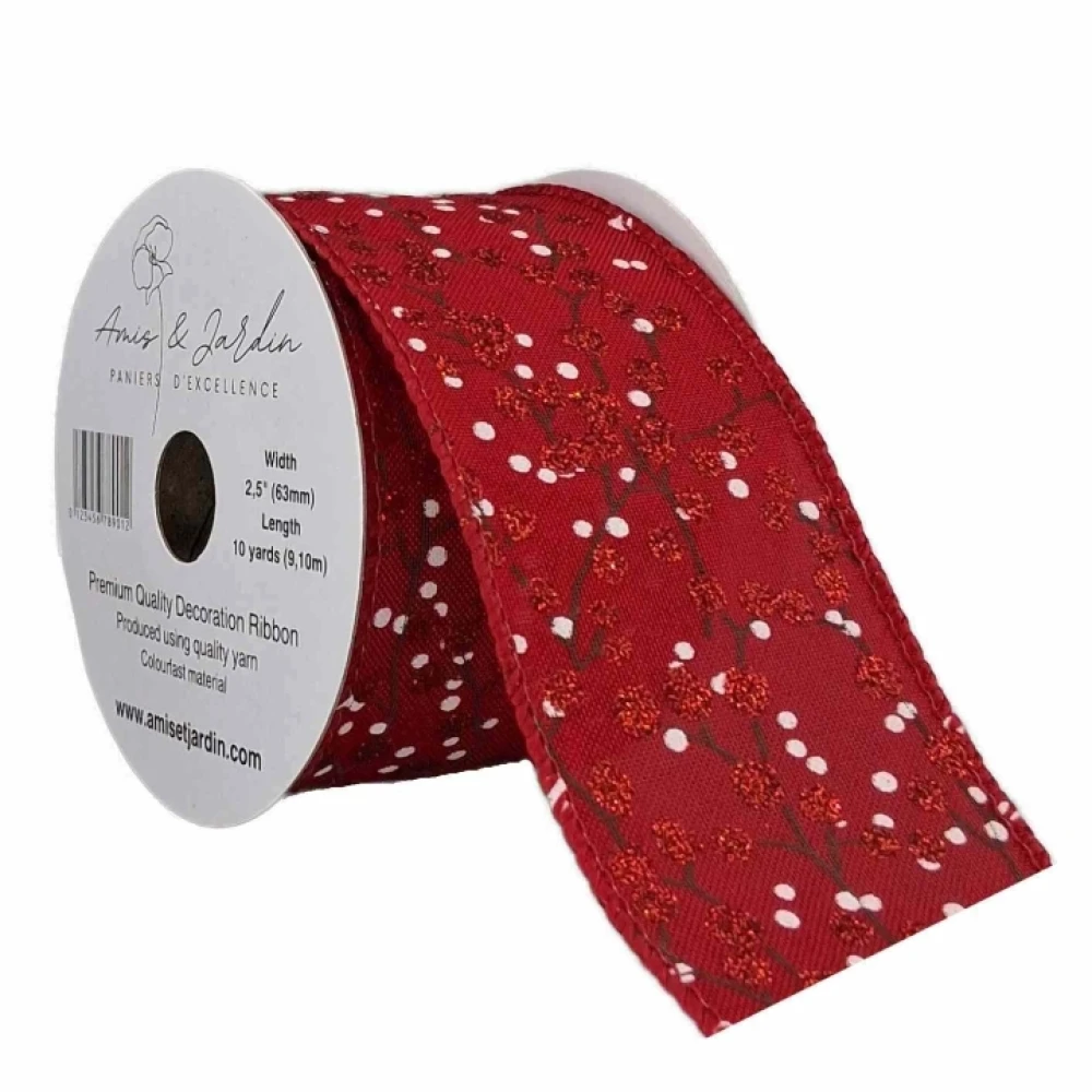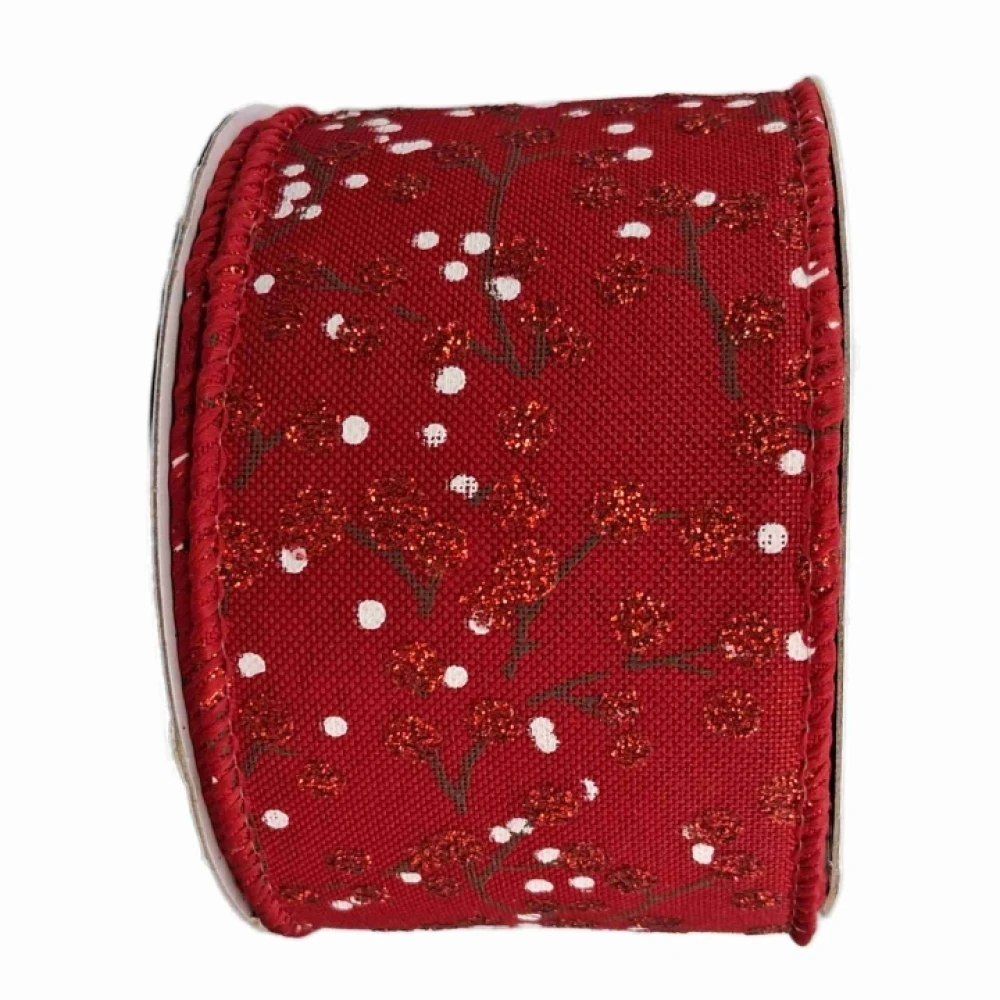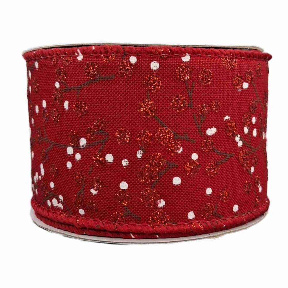 Stuha jutová s drátkem červená vánoční větvičky s bobulkami 9.1 m