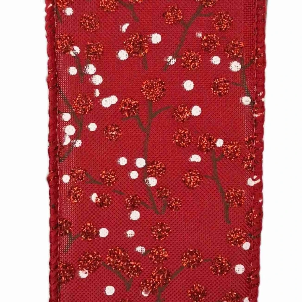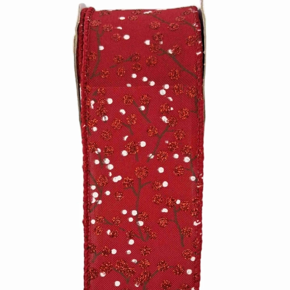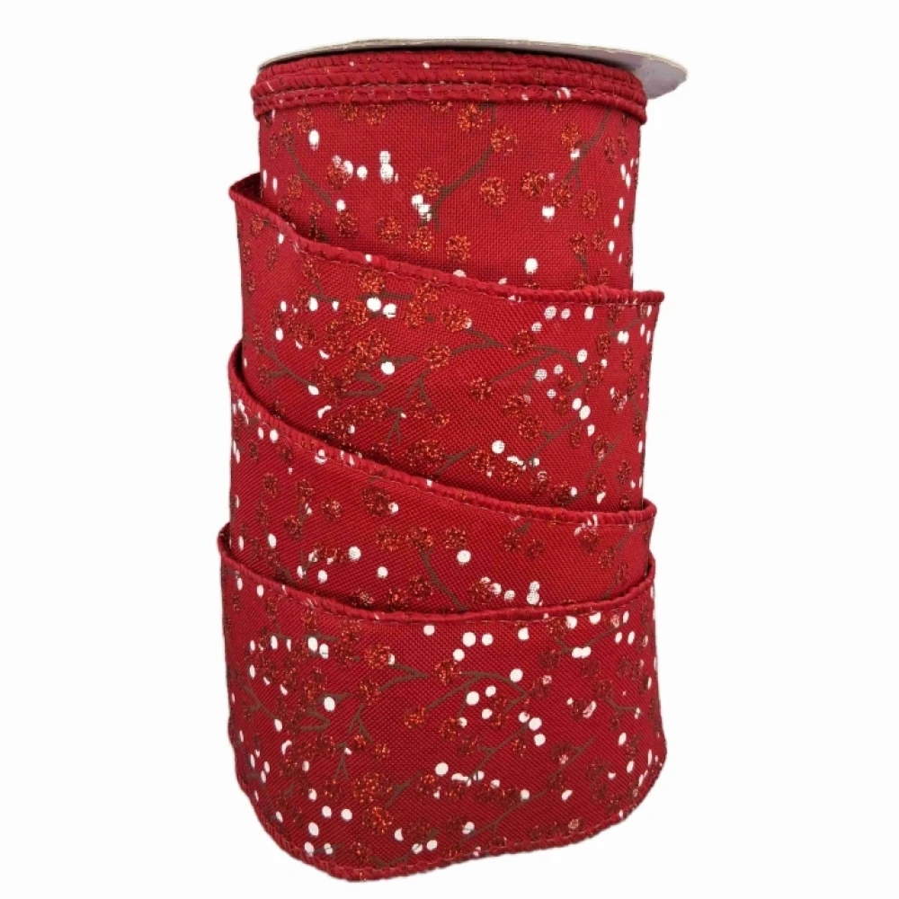 - Stuha jutová s drátkem červená vánoční větvičky s bobulkami 9.1 m