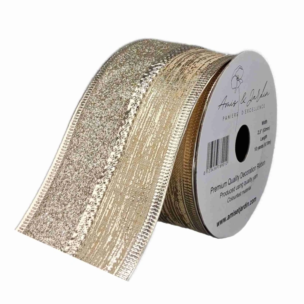 Tato jutová stuha v champagne odstínu se stříbrnými třpytivými pruhy je ideální pro vánoční dekorace. Díky drátkovému lemu snadno vytvoříte elegantní mašle na dárky, věnce nebo stromeček. Stuhy jsou skladem. Objednejte dnes do 17:00, zítra vám je doručíme kamkoliv po ČR. Kurýra můžete díky GPS sledovat online.