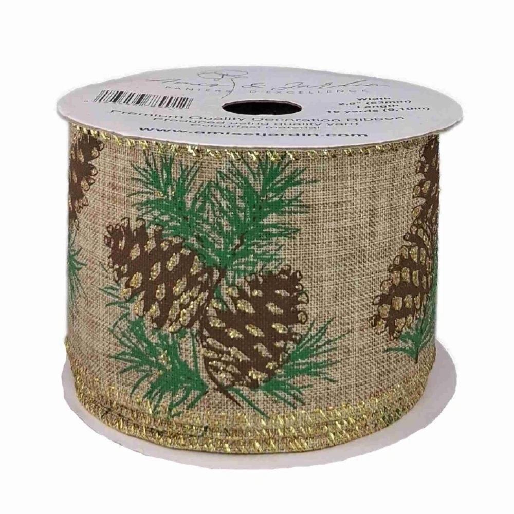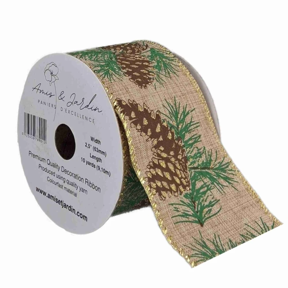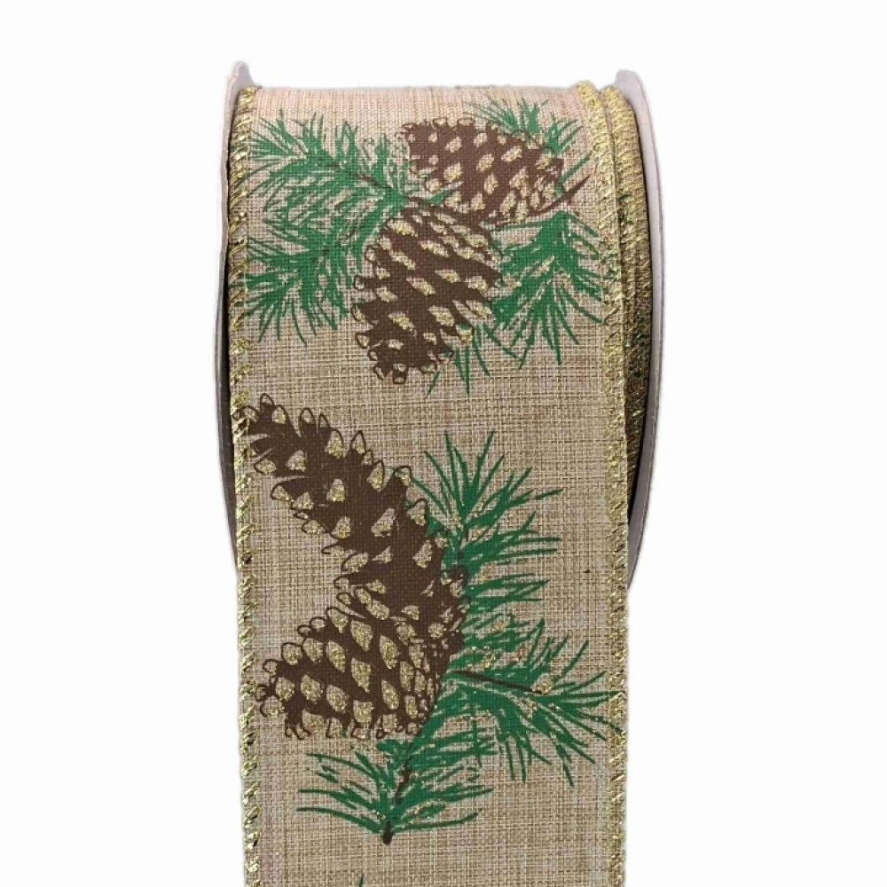Stuha jutová s drátkem hnědá vánoční šišky 9.1 m
