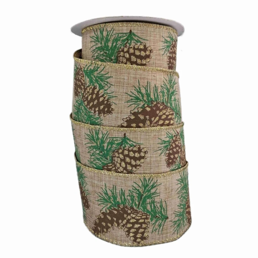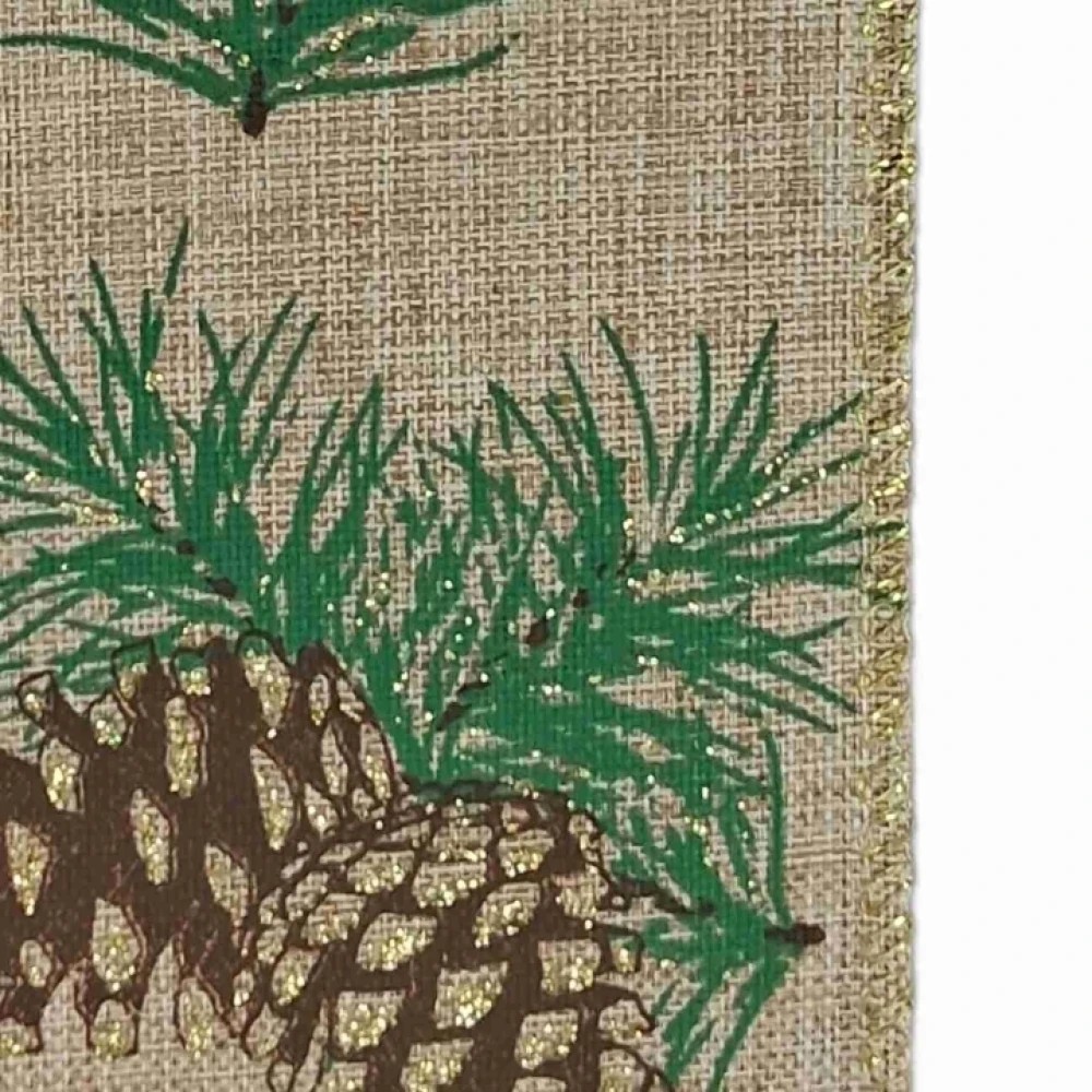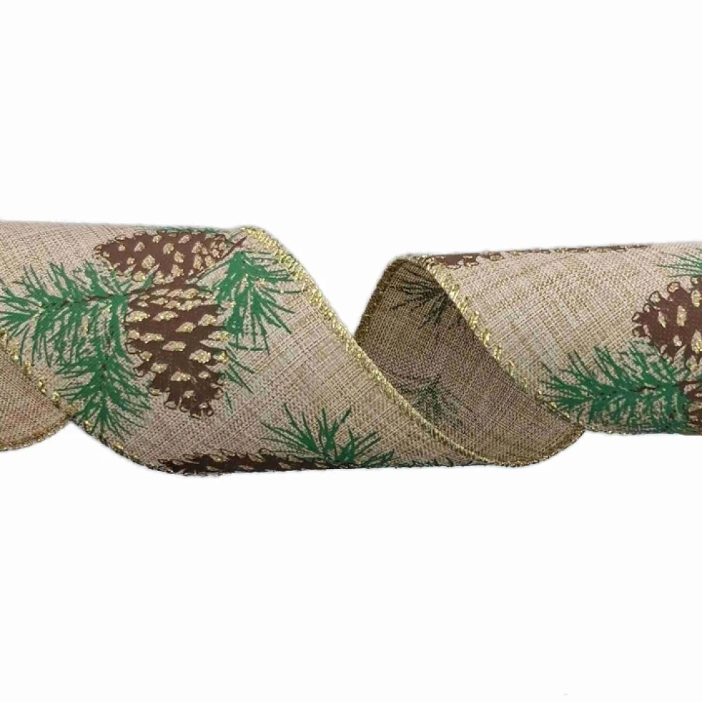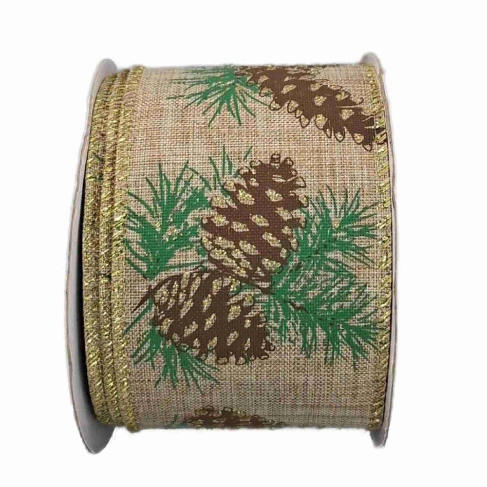 Stuha jutová s drátkem hnědá vánoční šišky 9.1 m
