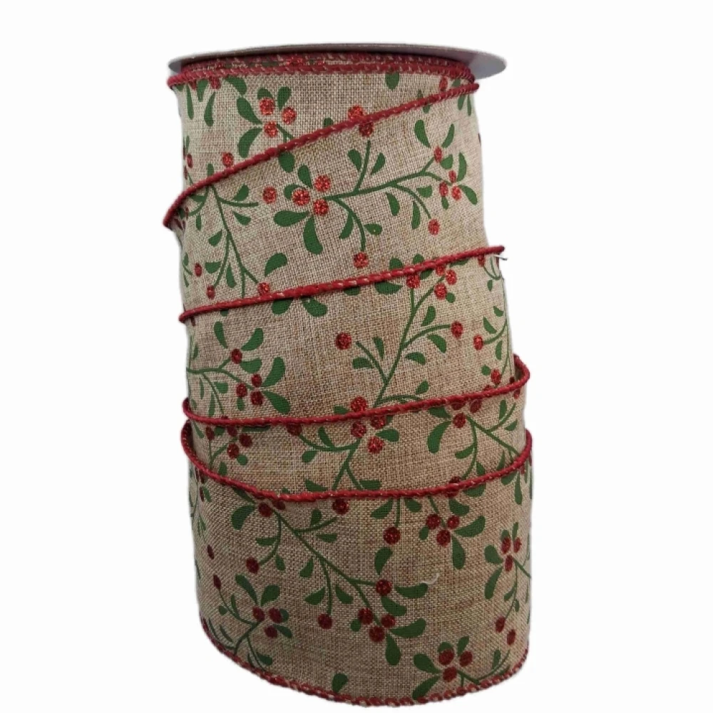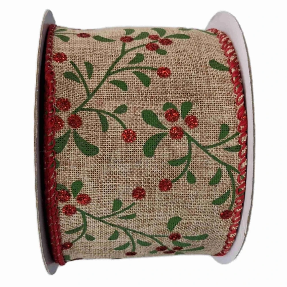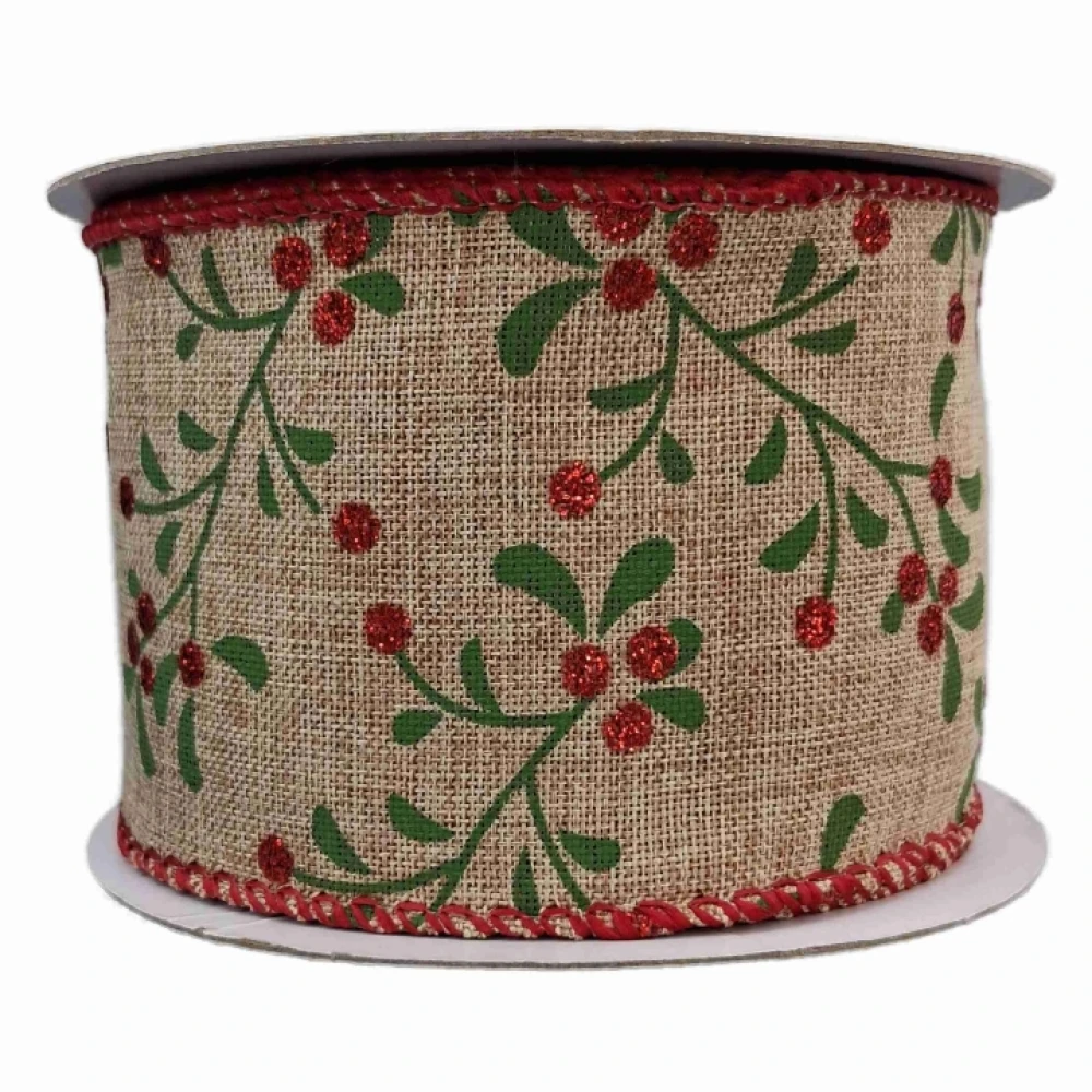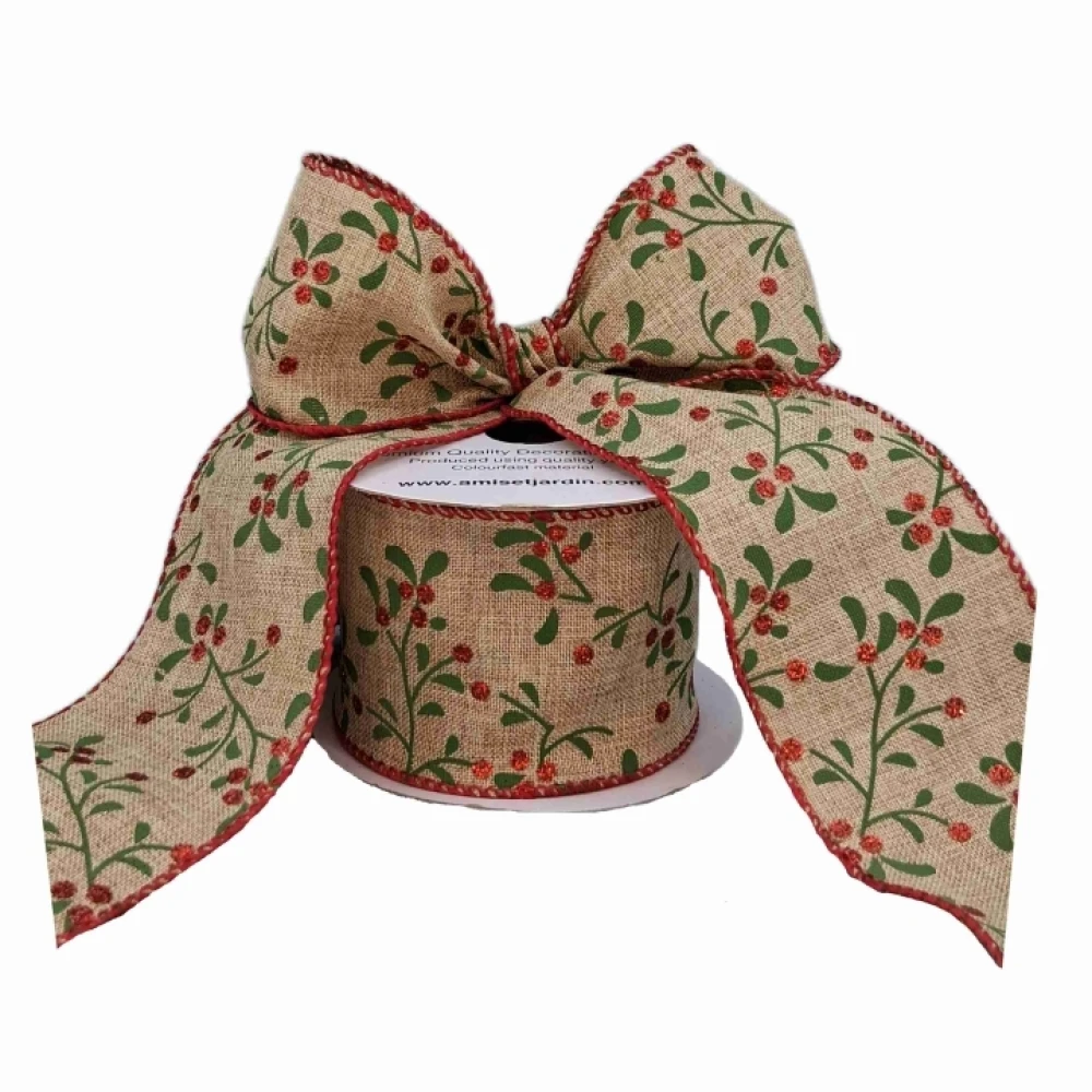 Stuha jutová s drátkem hnědá vánoční větvičky s bobulkami 9.1 m