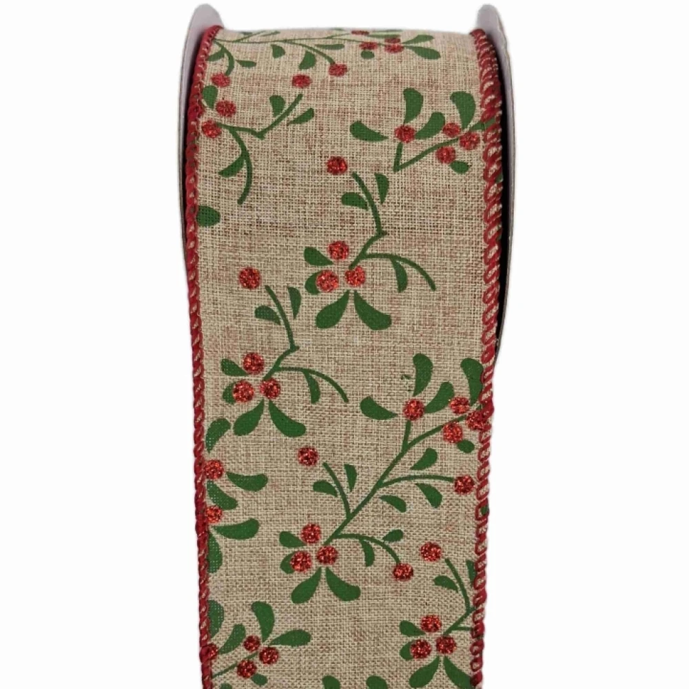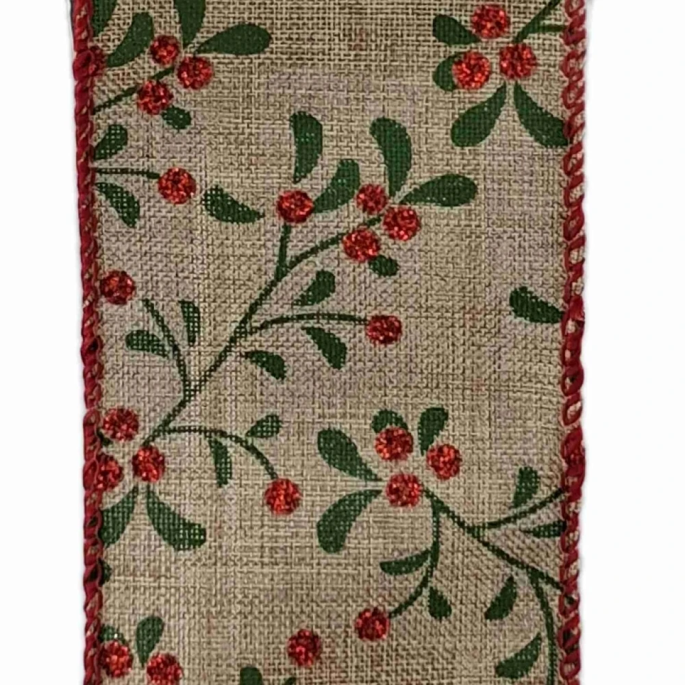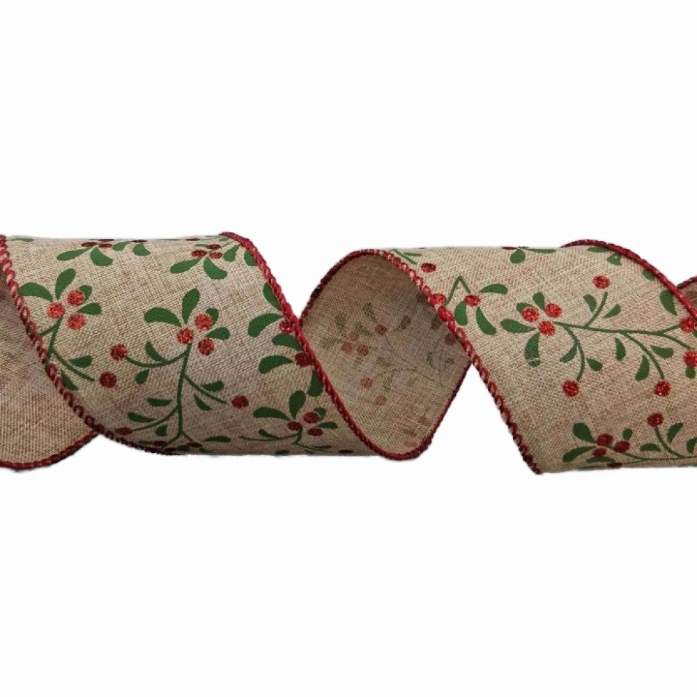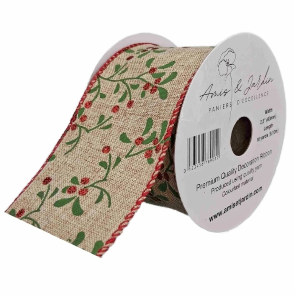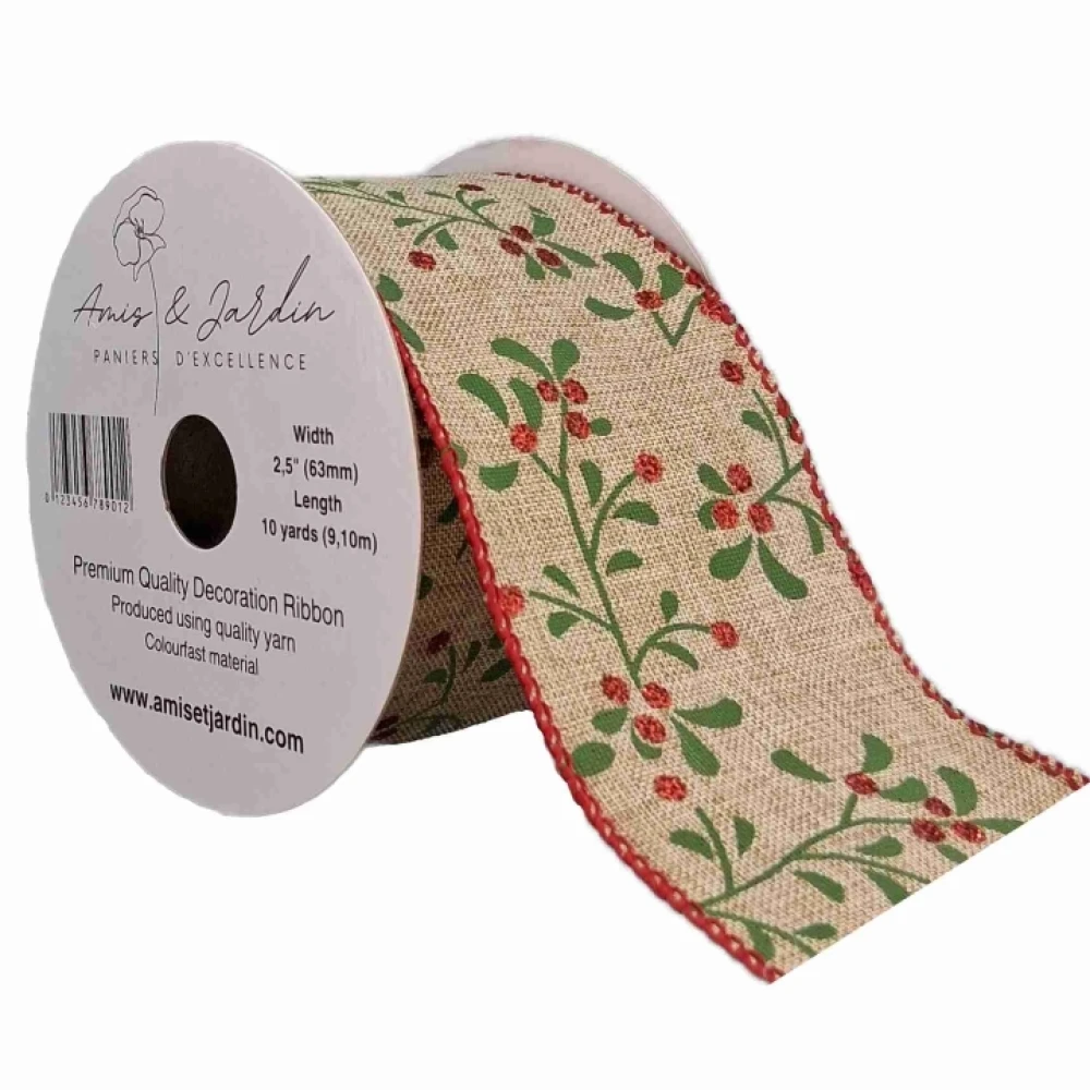 Stuha jutová s drátkem hnědá vánoční větvičky s bobulkami 9.1 m