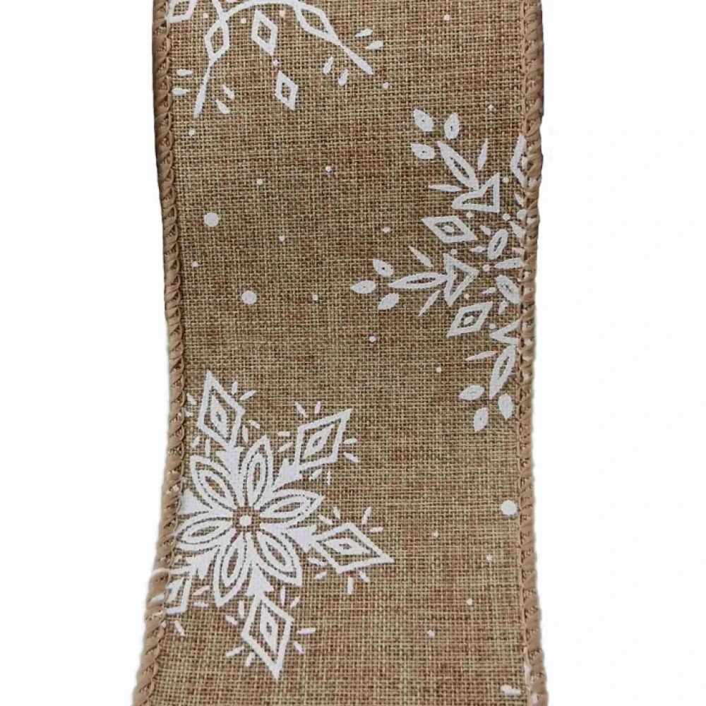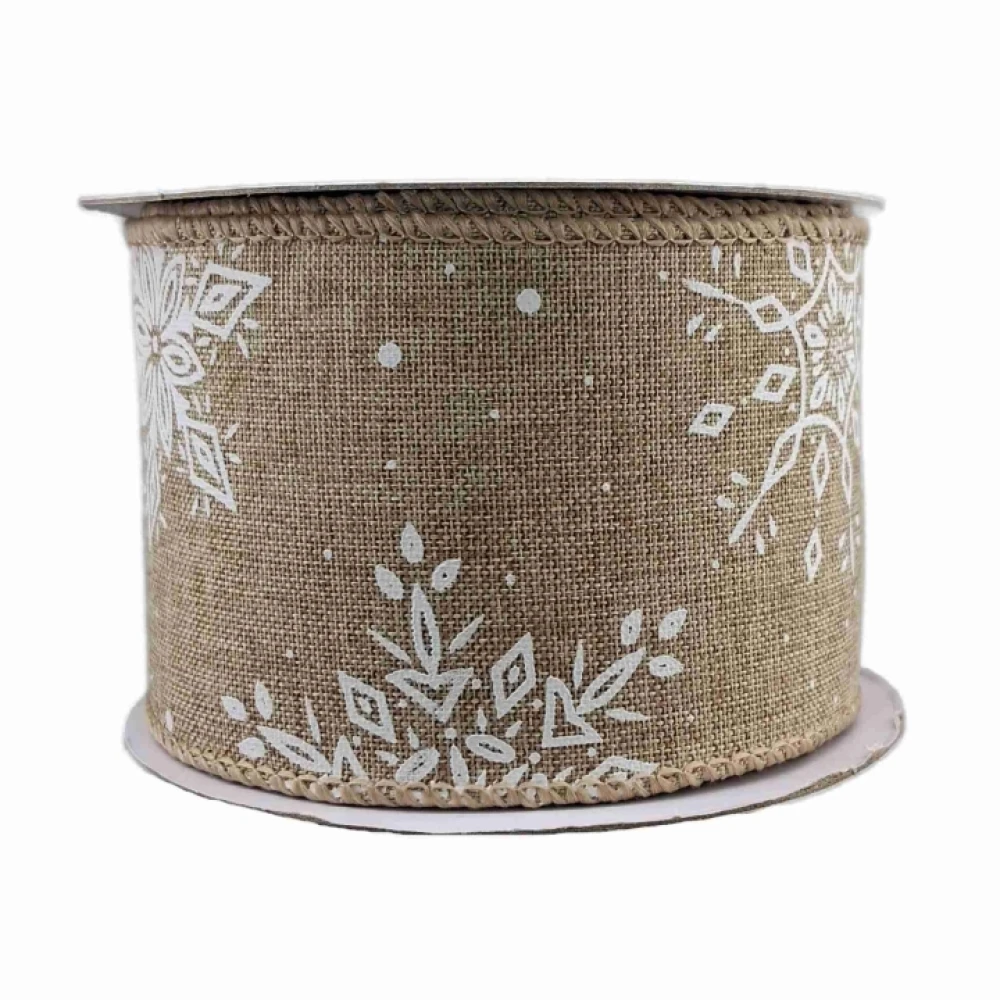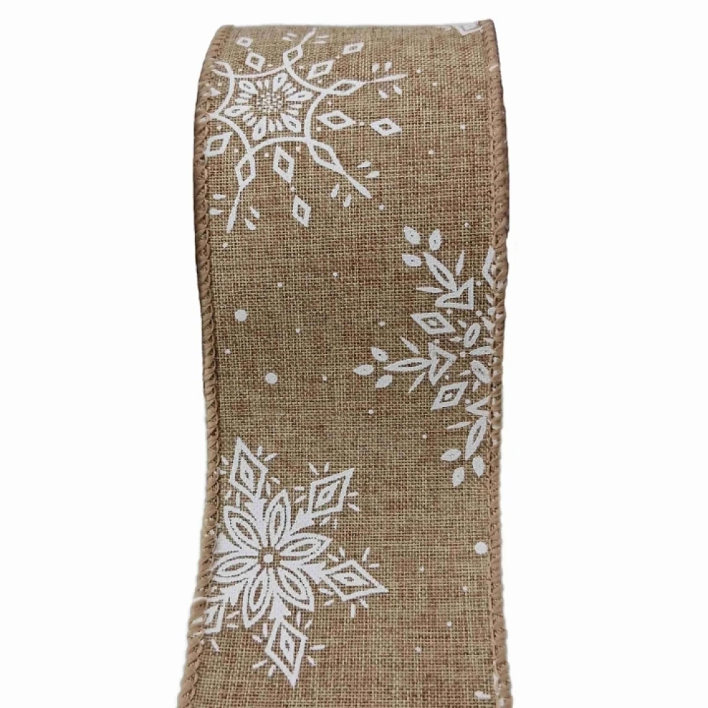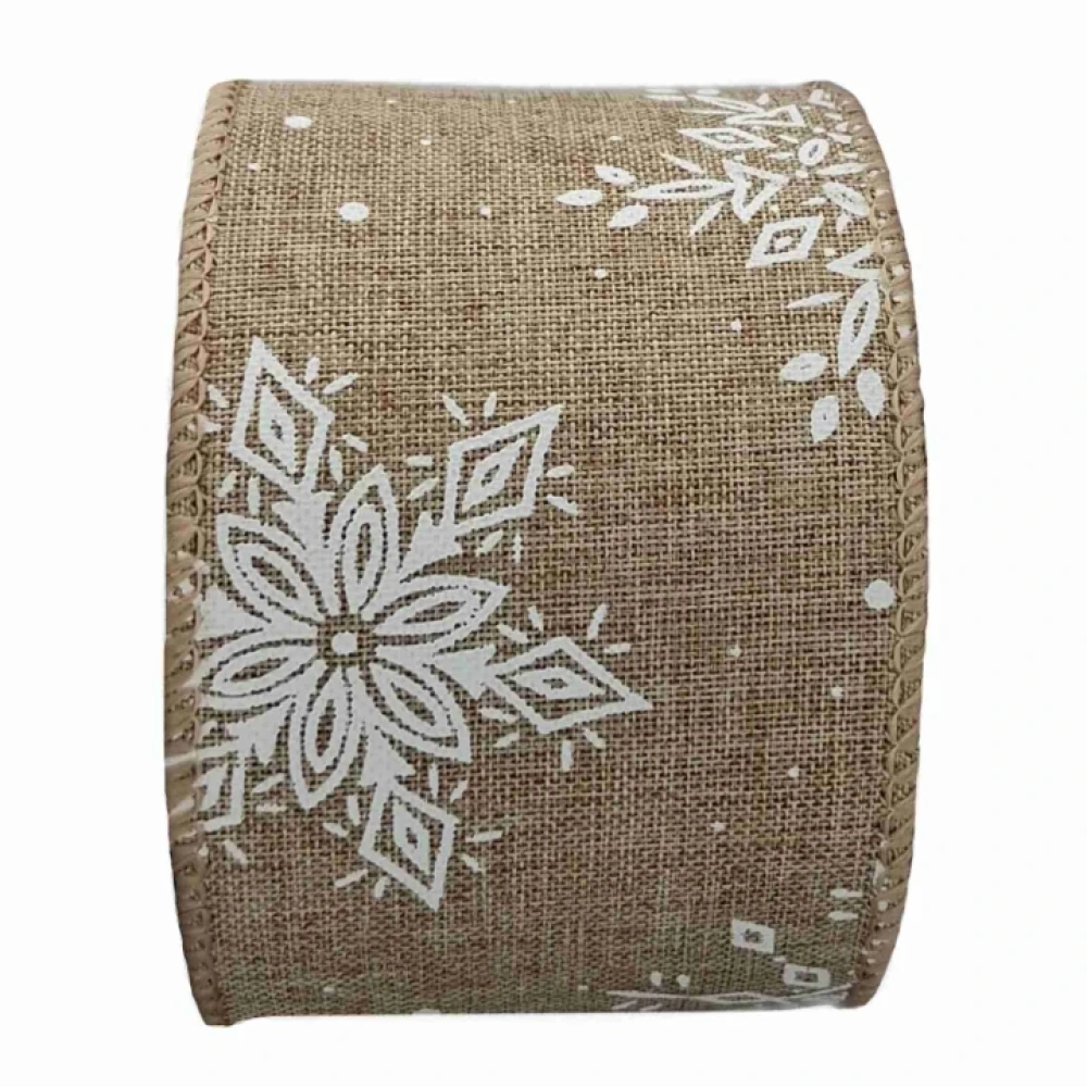 - Stuha jutová s drátkem hnědá zimní sněhové vločky 9.1 m