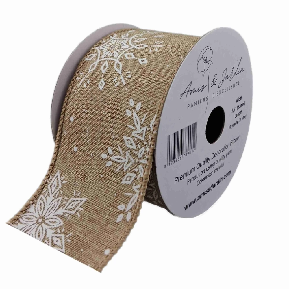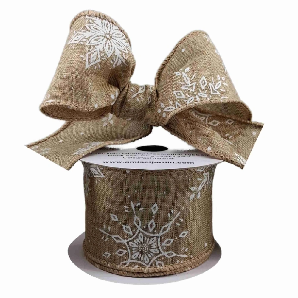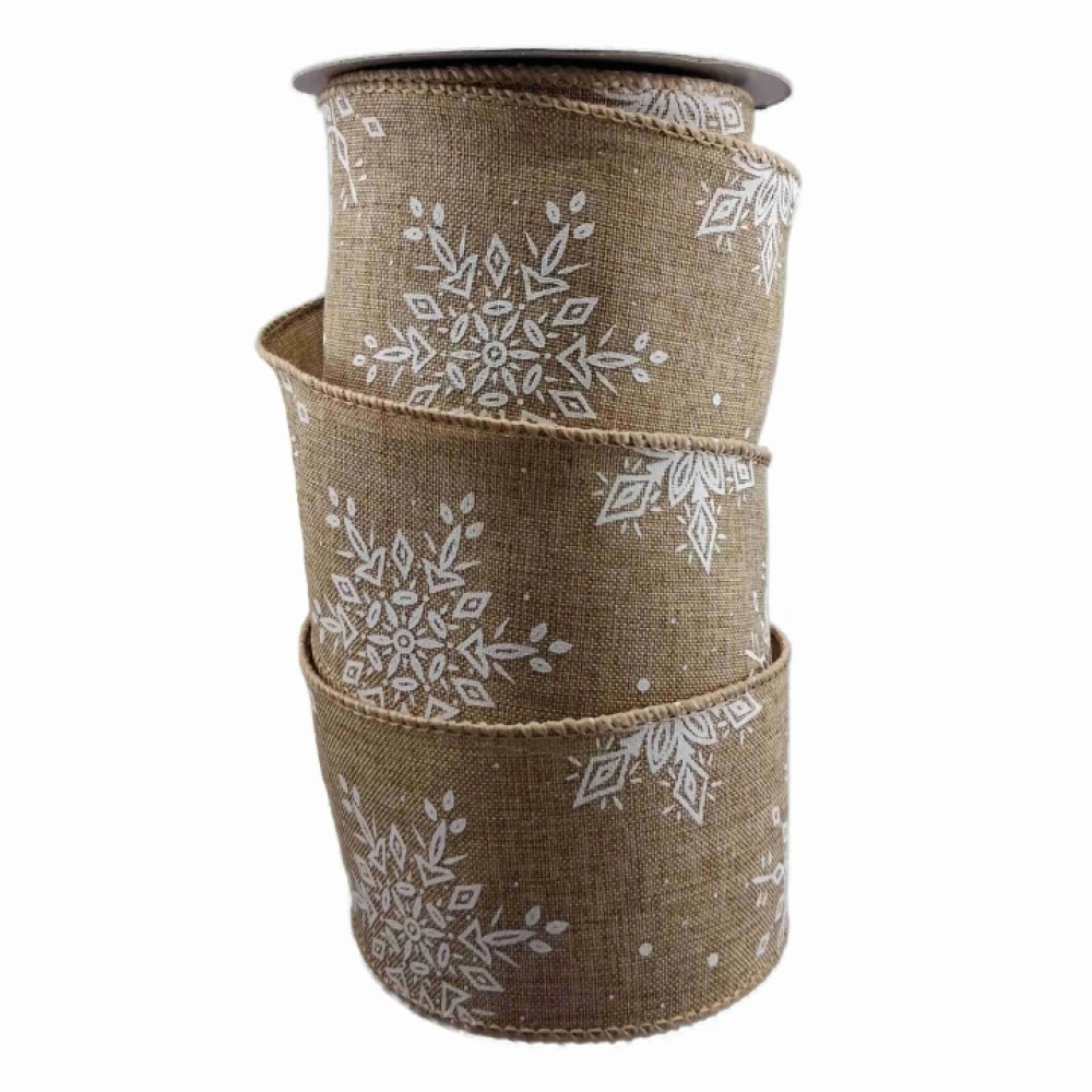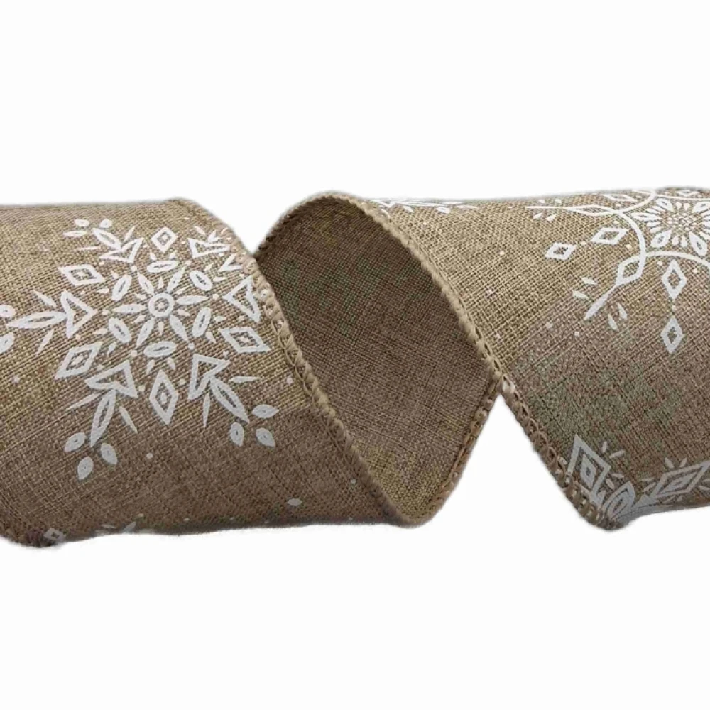 - Stuha jutová s drátkem hnědá zimní sněhové vločky 9.1 m