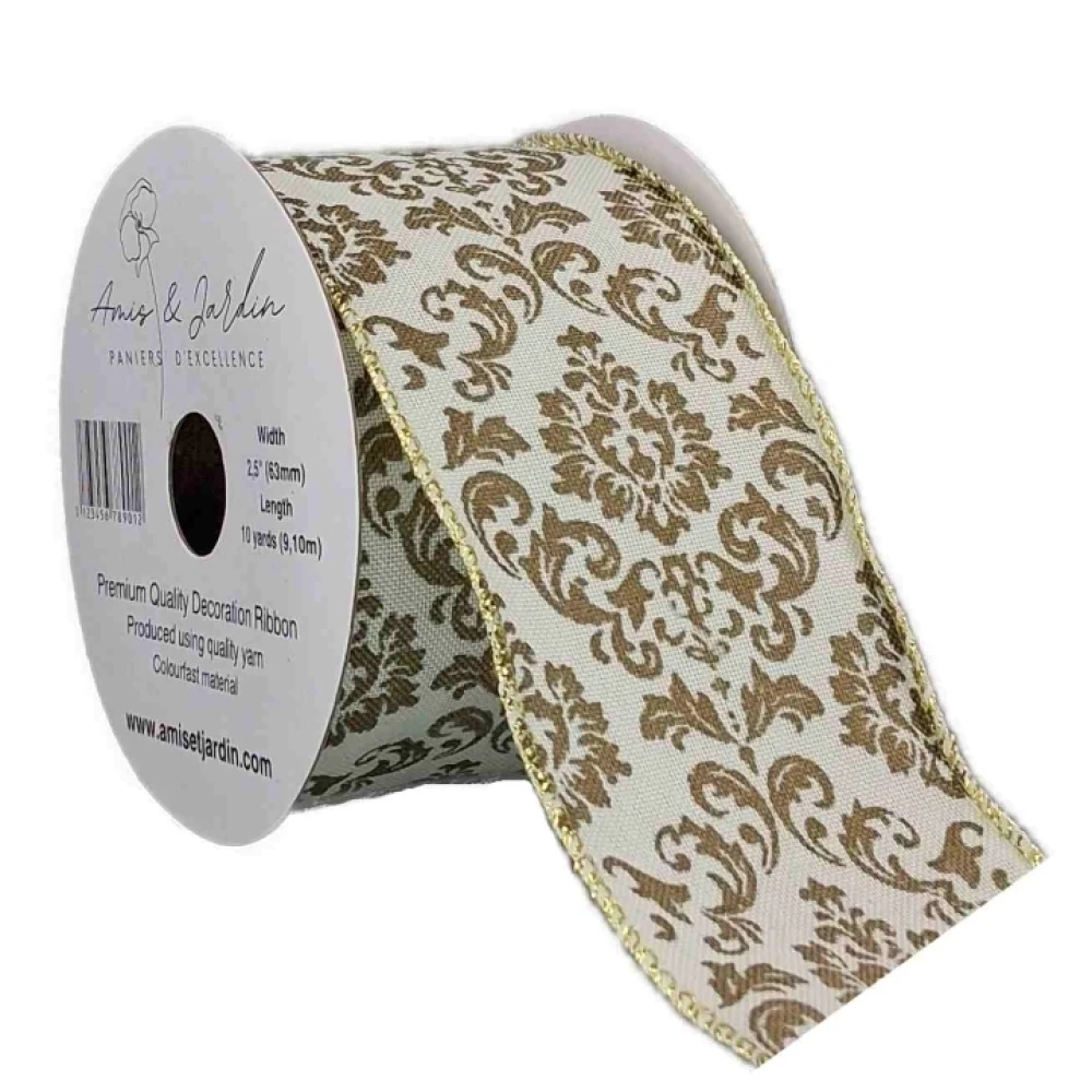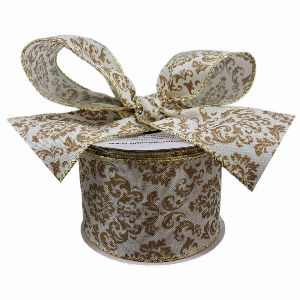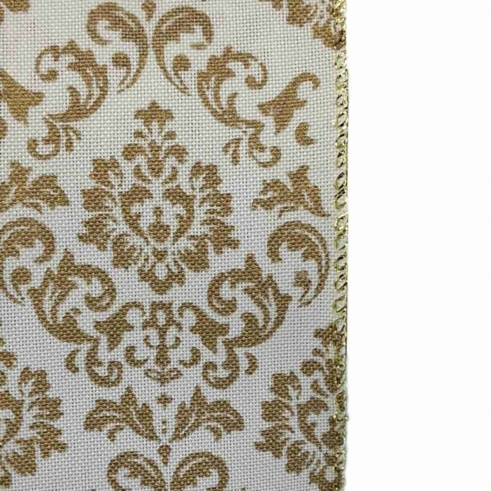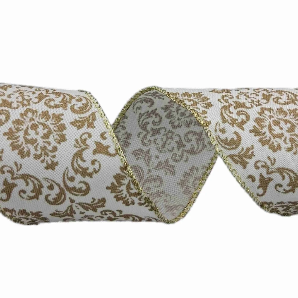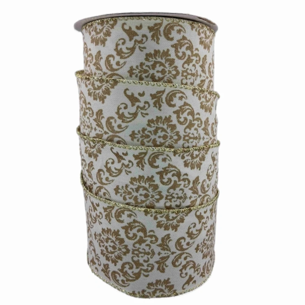 Stuha jutová s drátkem krémová ornamenty 9.1 m