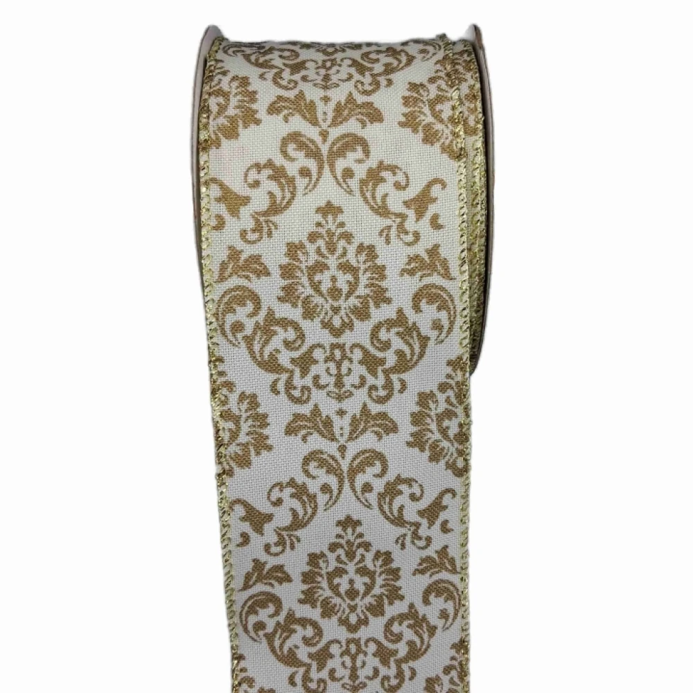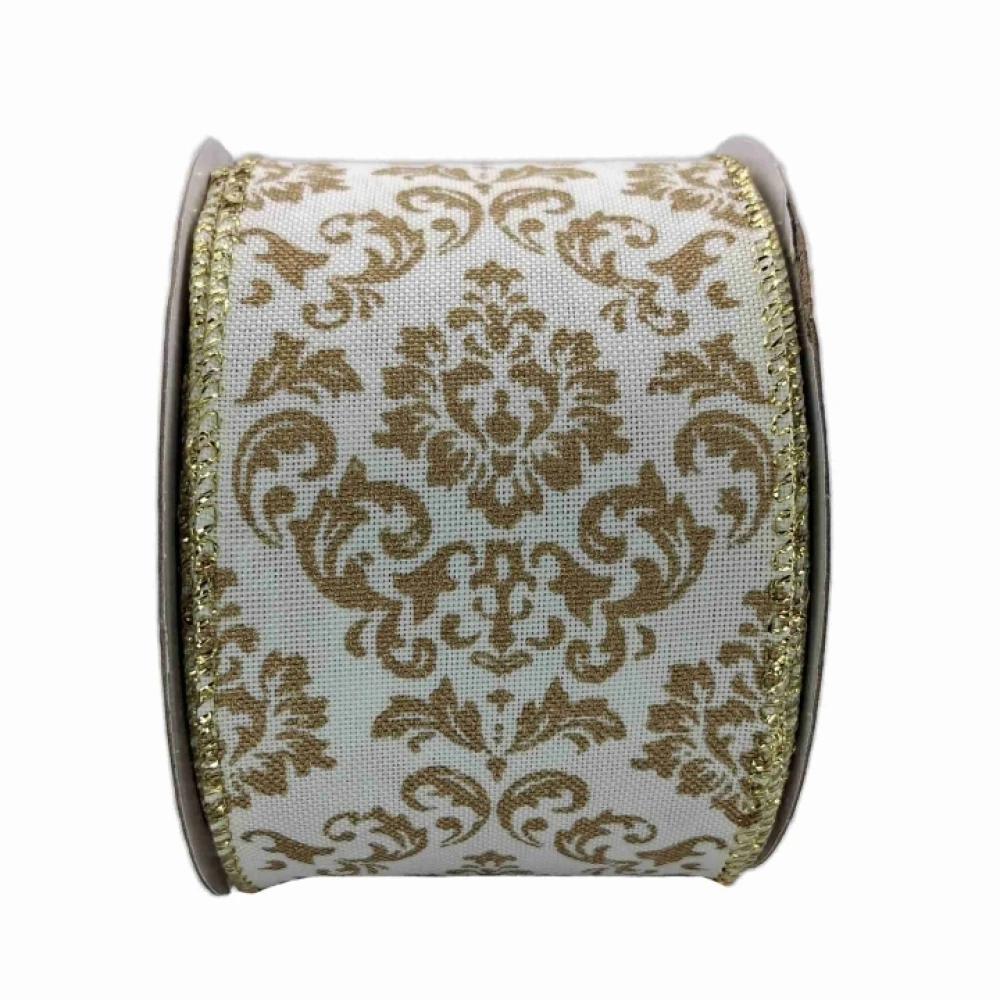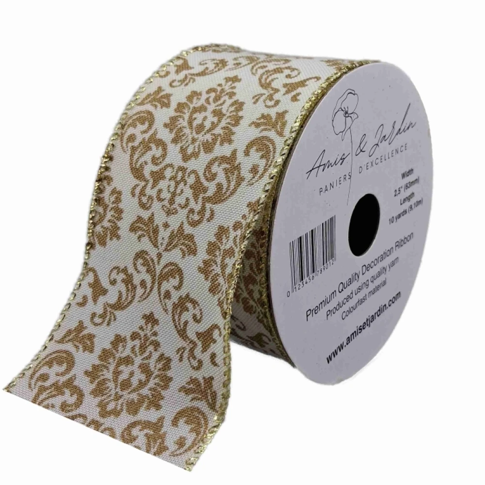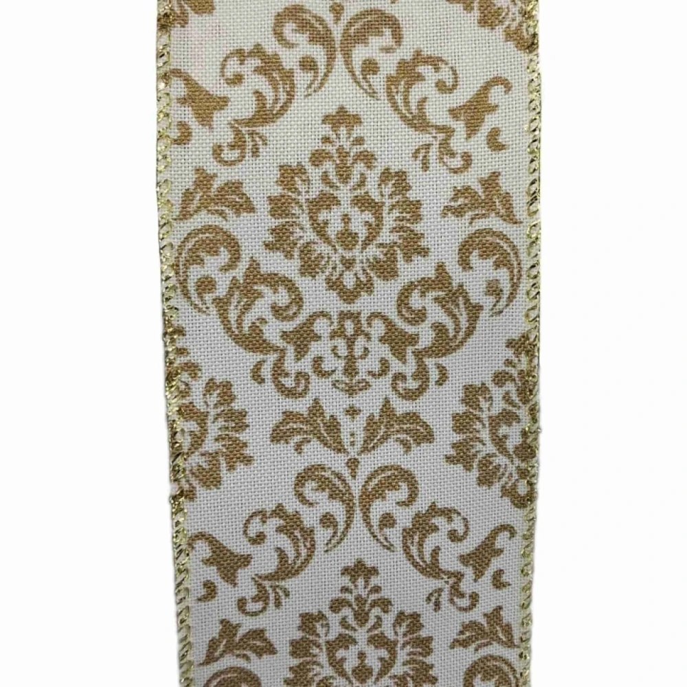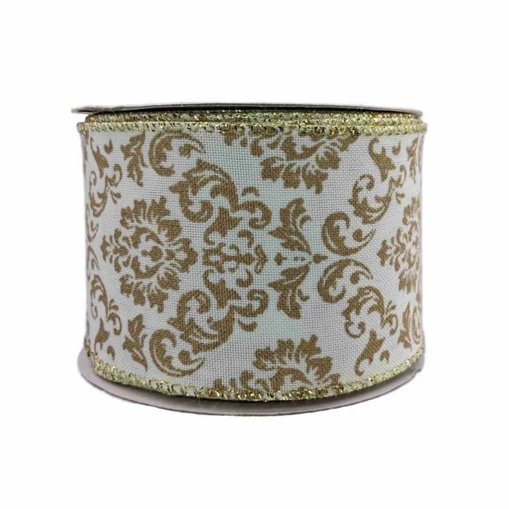 Stuha jutová s drátkem krémová ornamenty 9.1 m