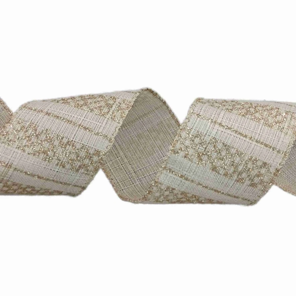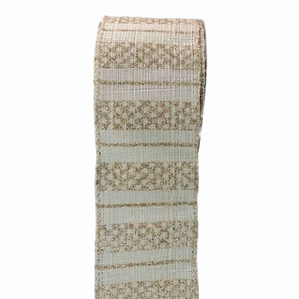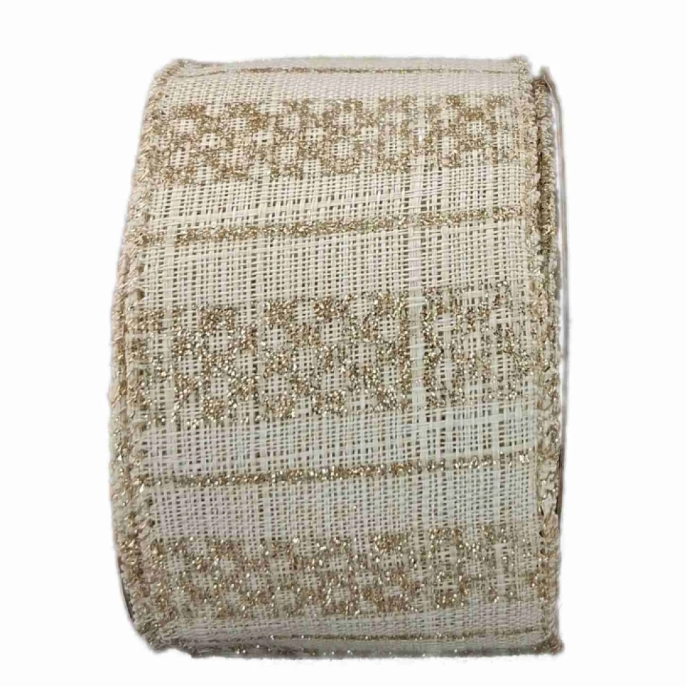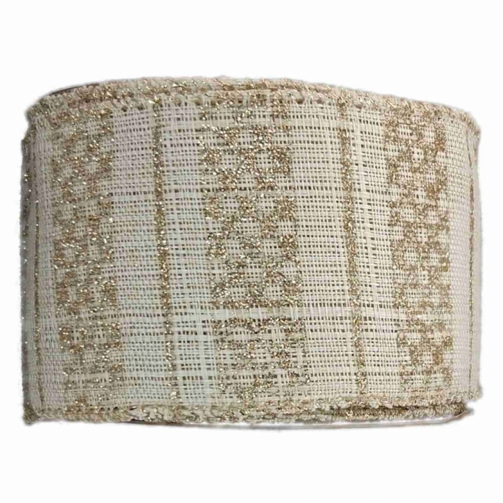 Stuha jutová s drátkem krémová vánoční geometrie 9.1 m