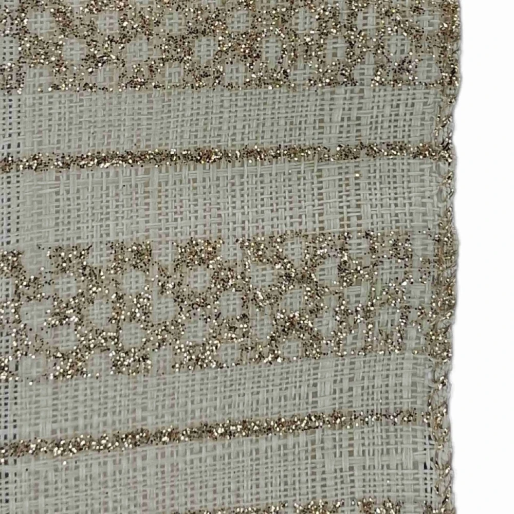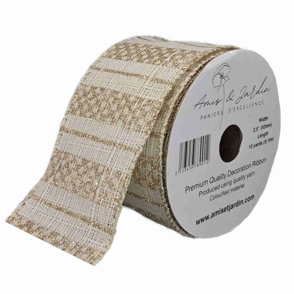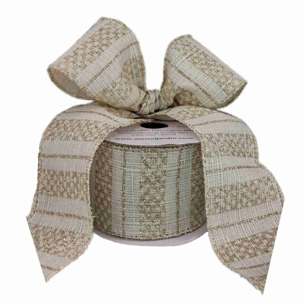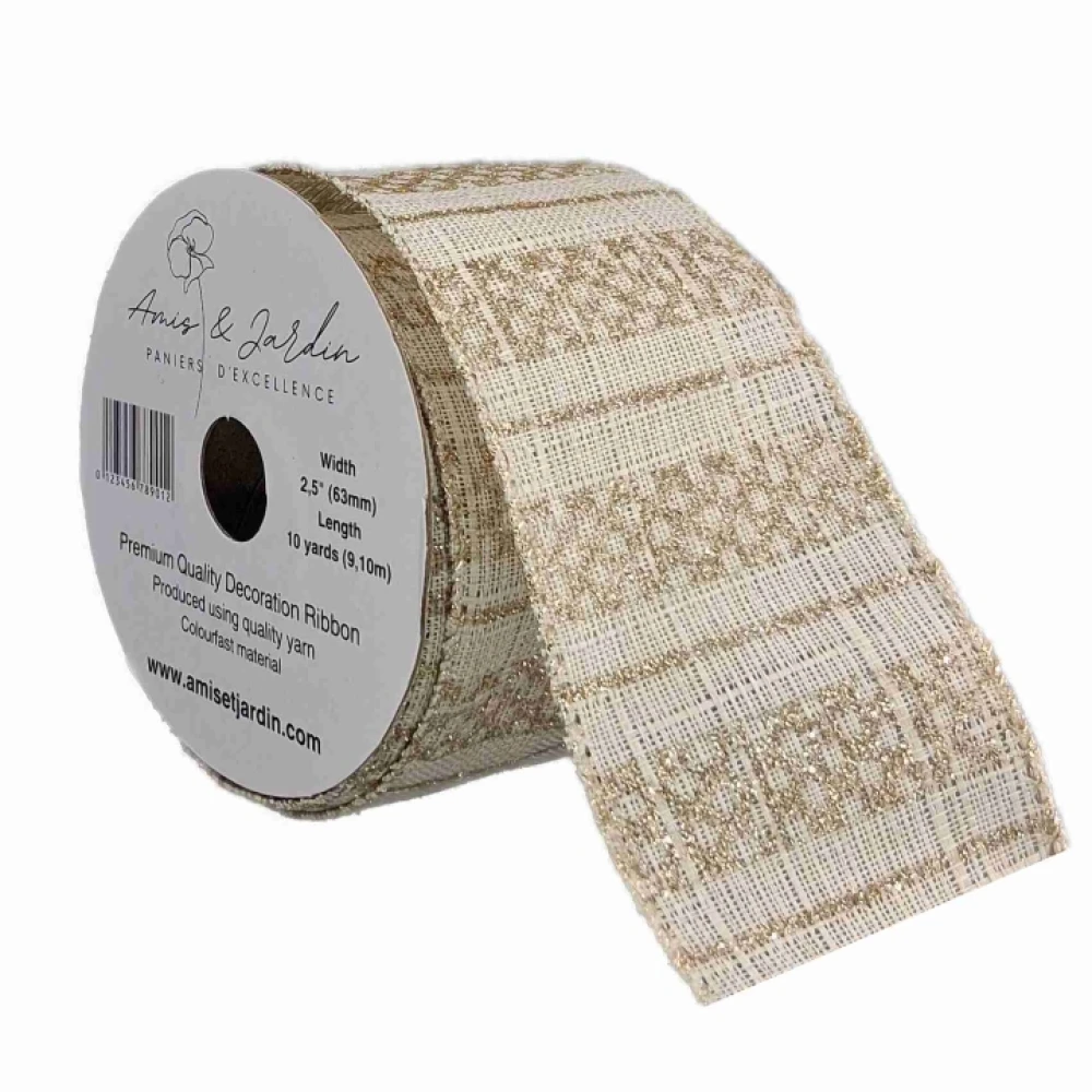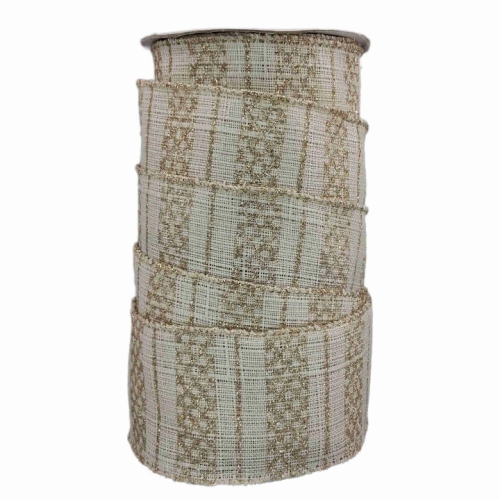 Stuha jutová s drátkem krémová vánoční geometrie 9.1 m