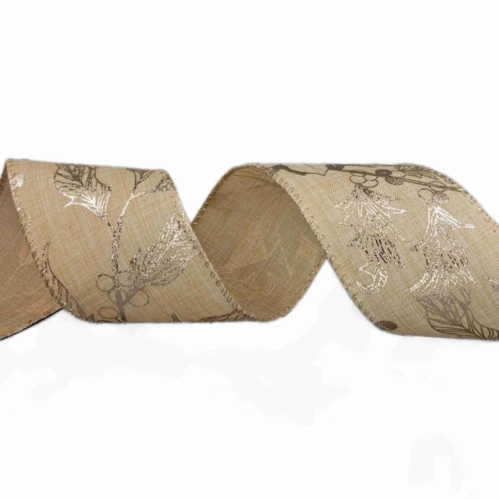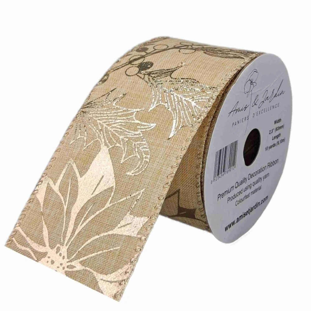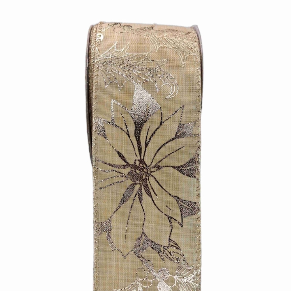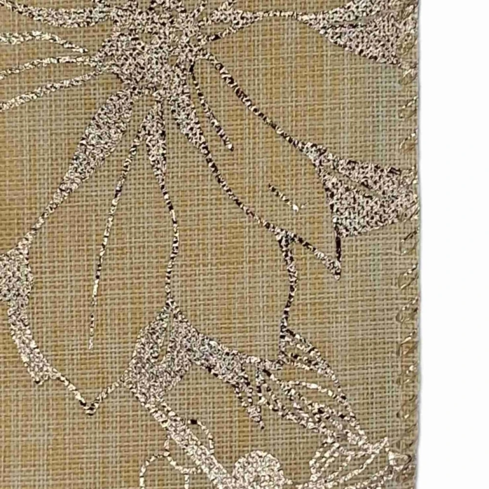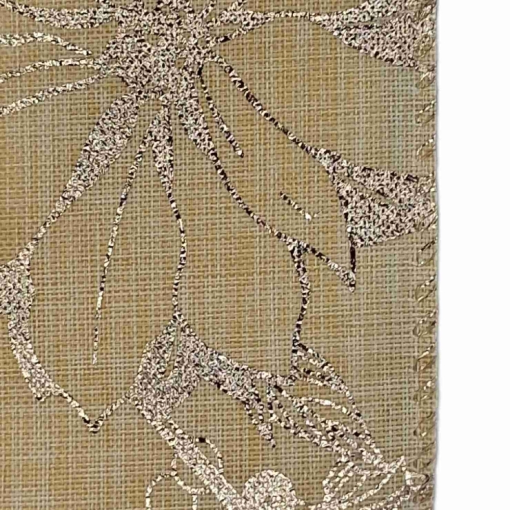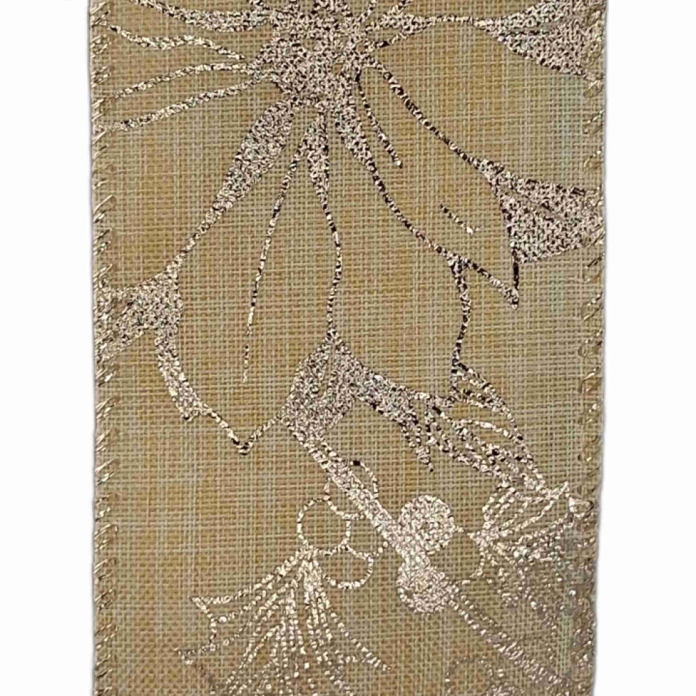 Stuha jutová s drátkem krémová vánoční květy 9.1 m