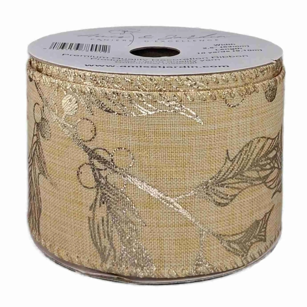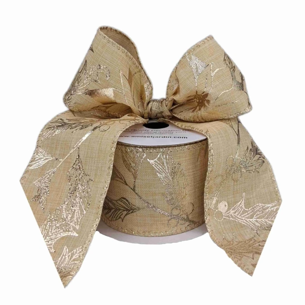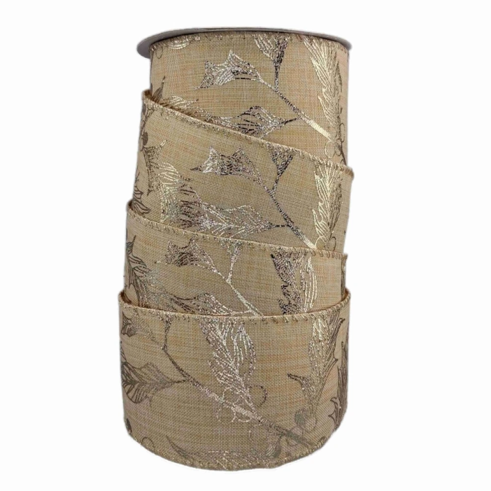 - Stuha jutová s drátkem krémová vánoční květy 9.1 m