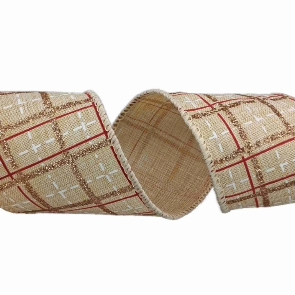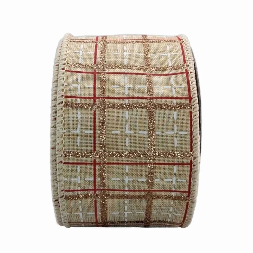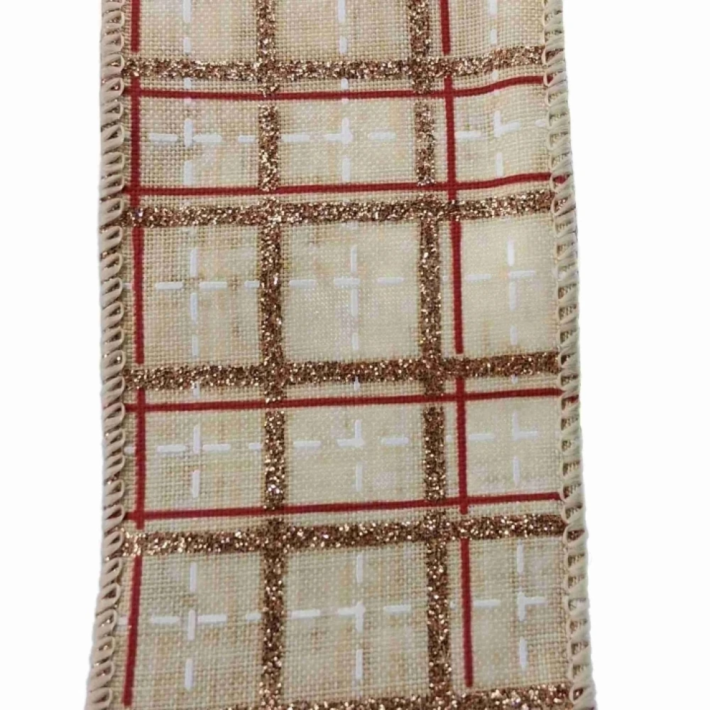 - Stuha jutová s drátkem krémová vánoční mřížka 9.1 m