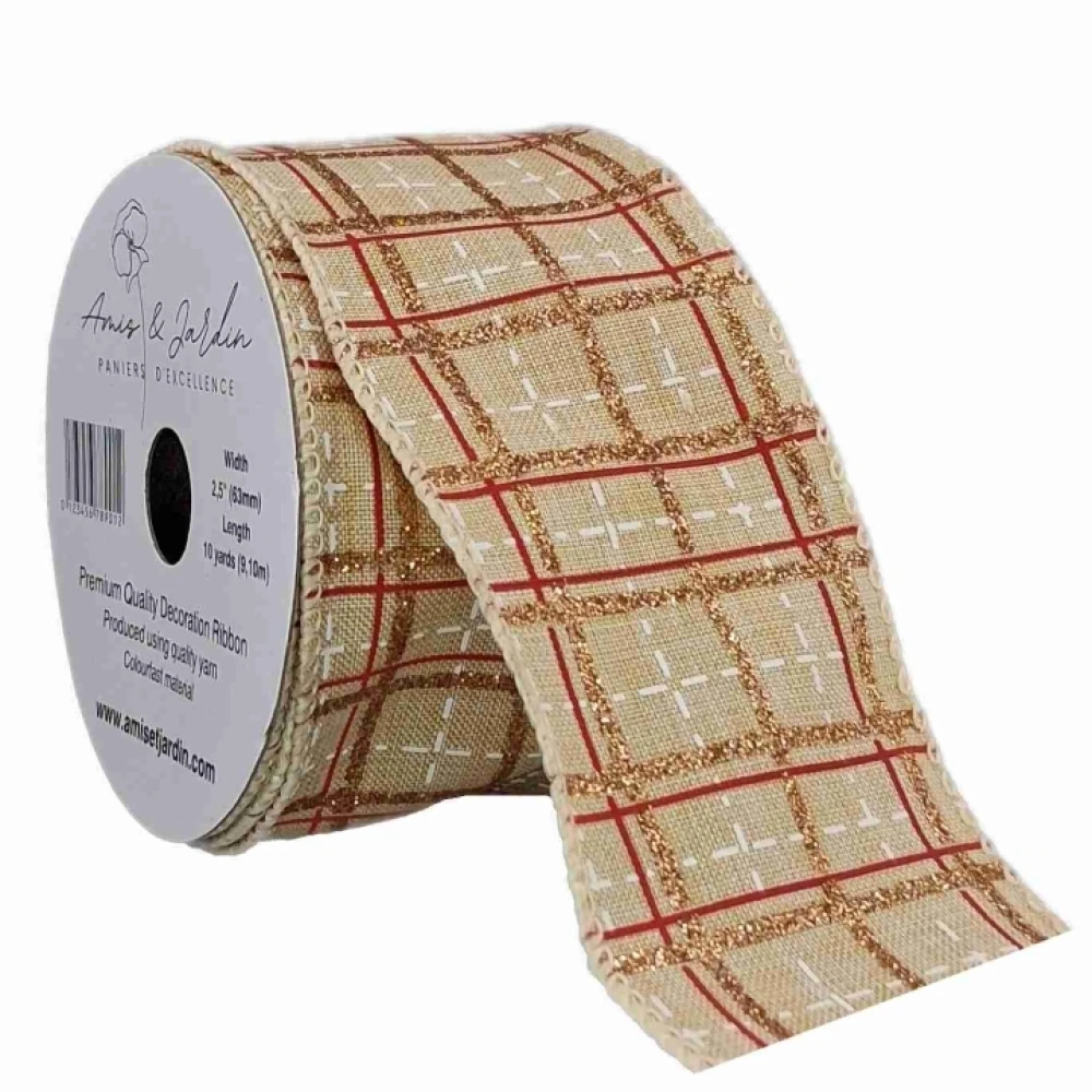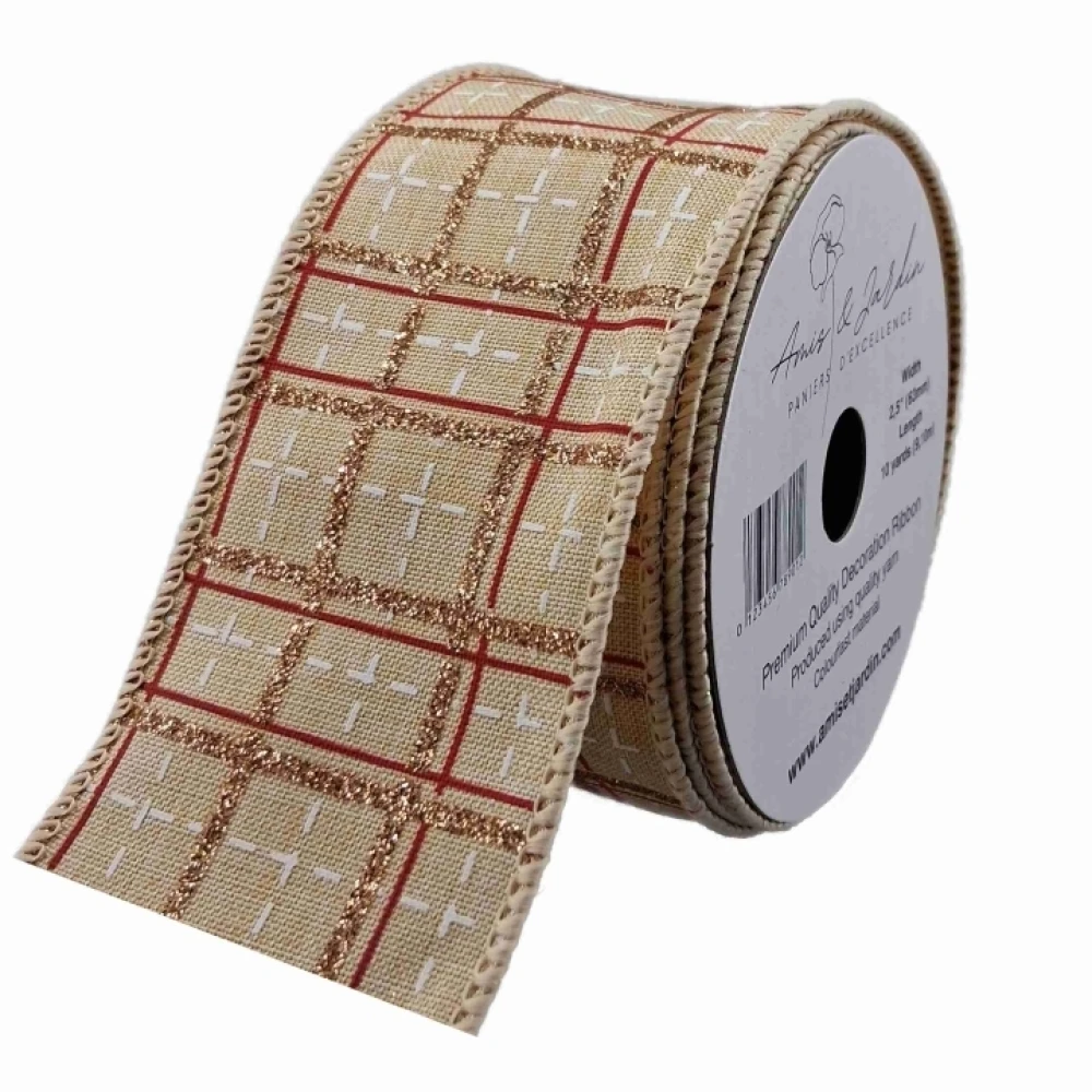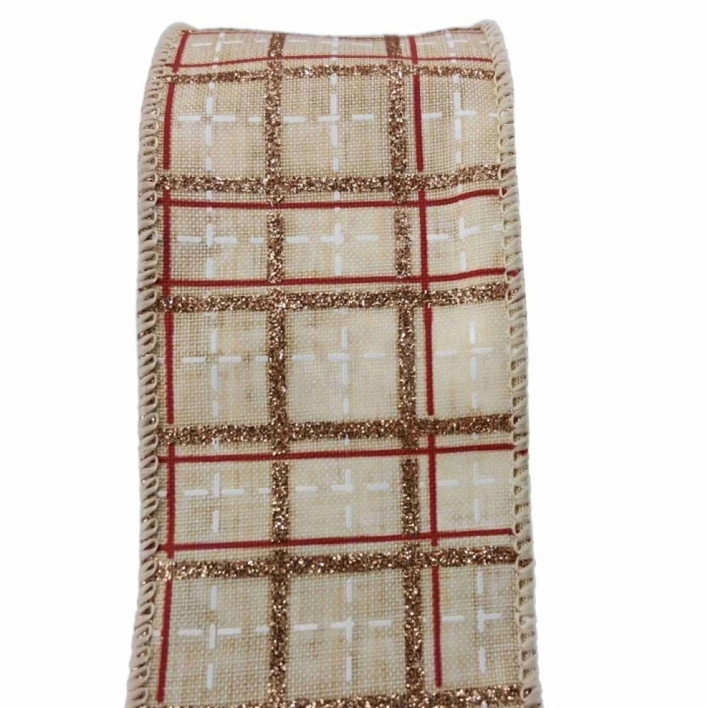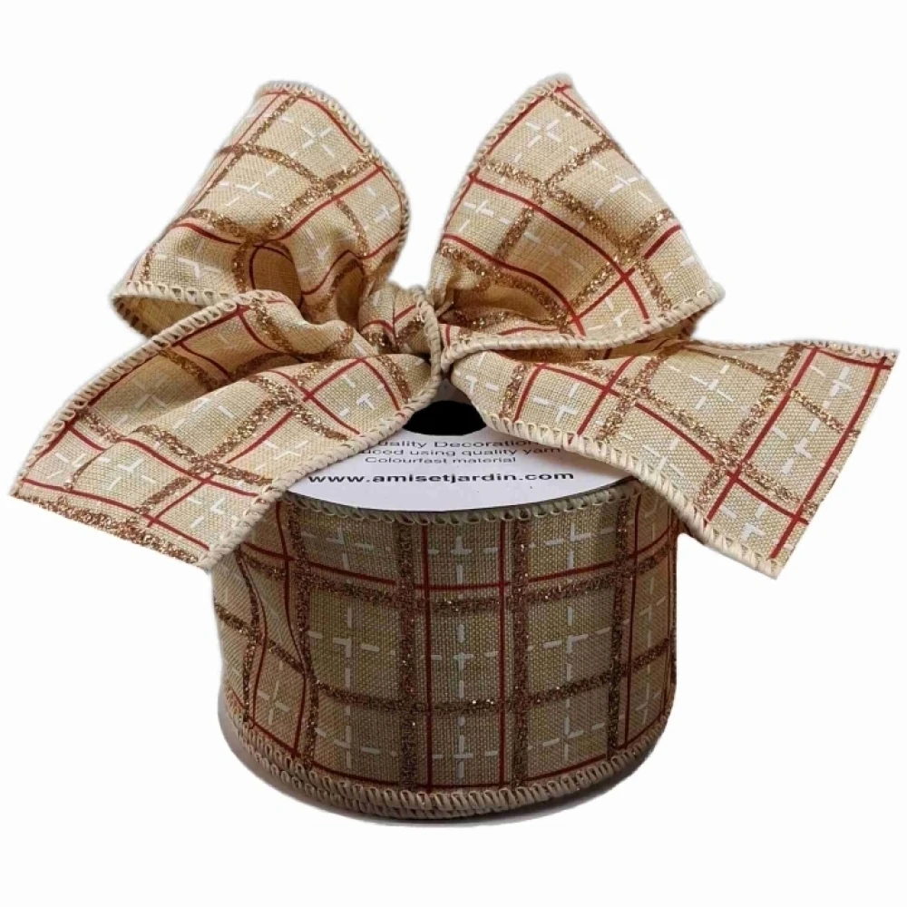 - Stuha jutová s drátkem krémová vánoční mřížka 9.1 m