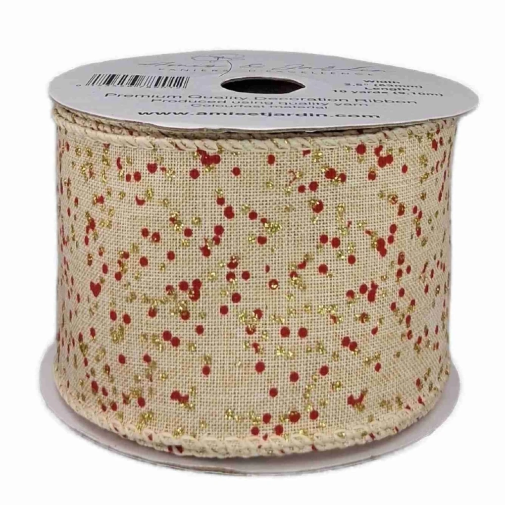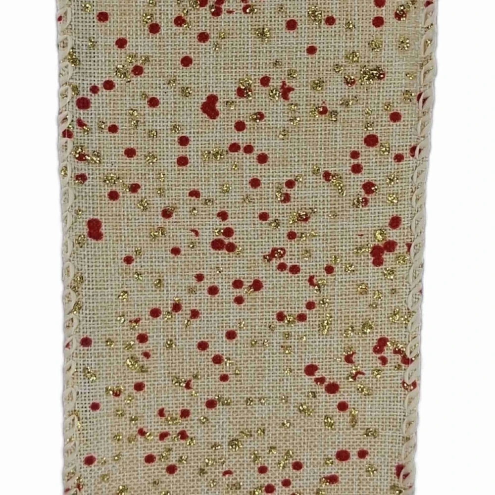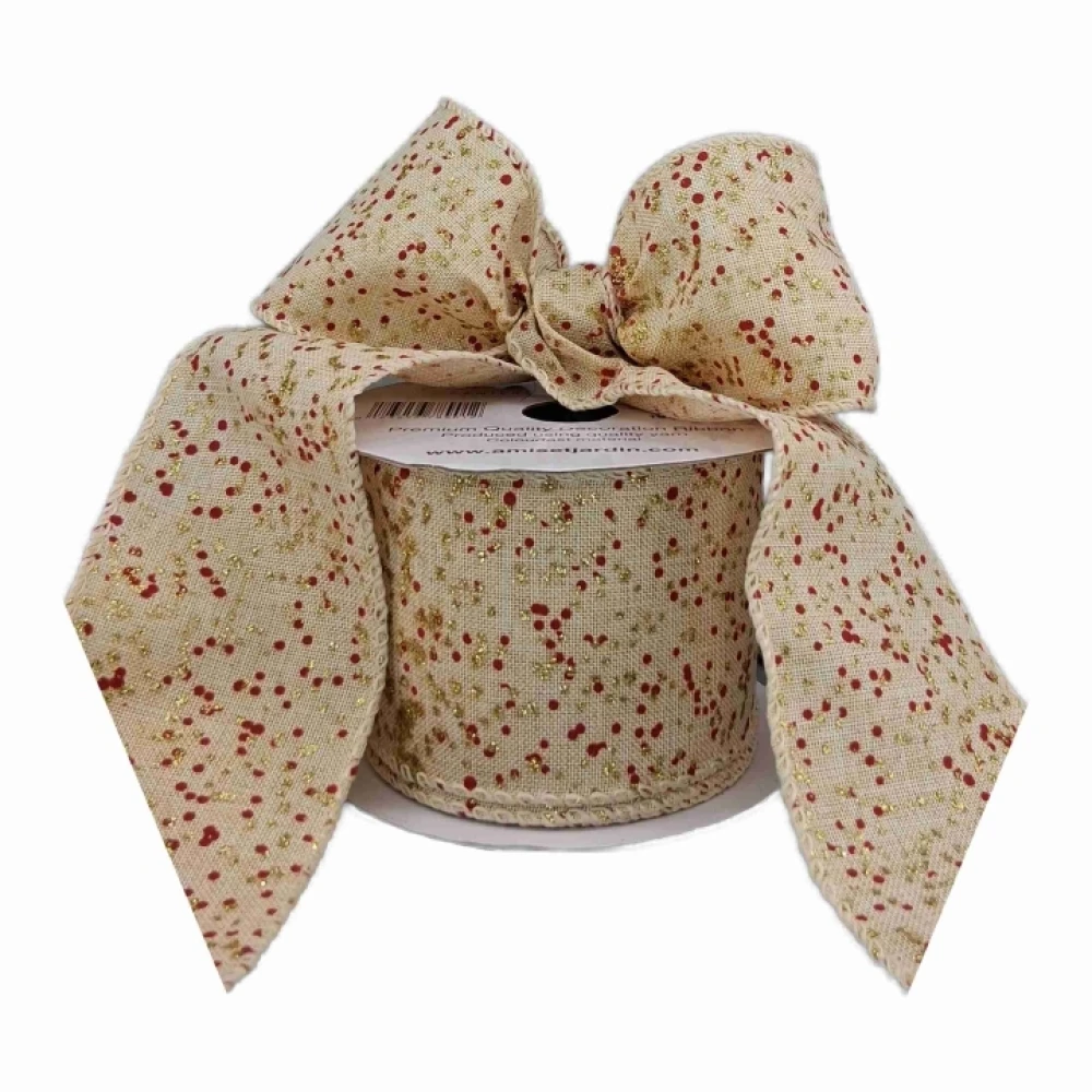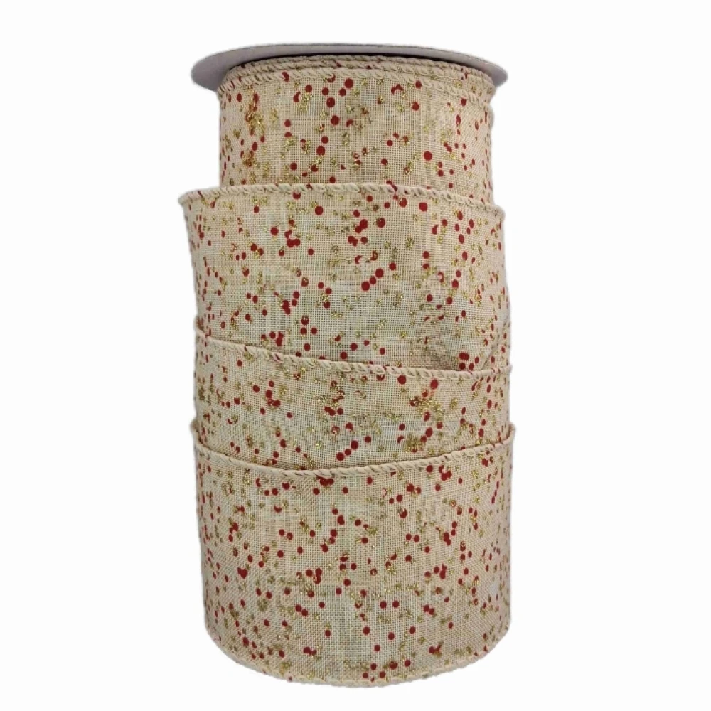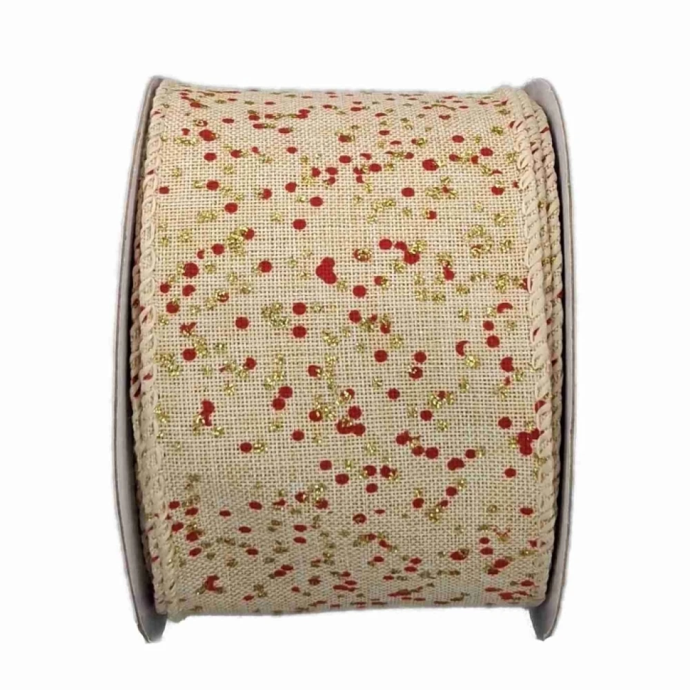 - Stuha jutová s drátkem krémová vánoční puntíky 9.1 m