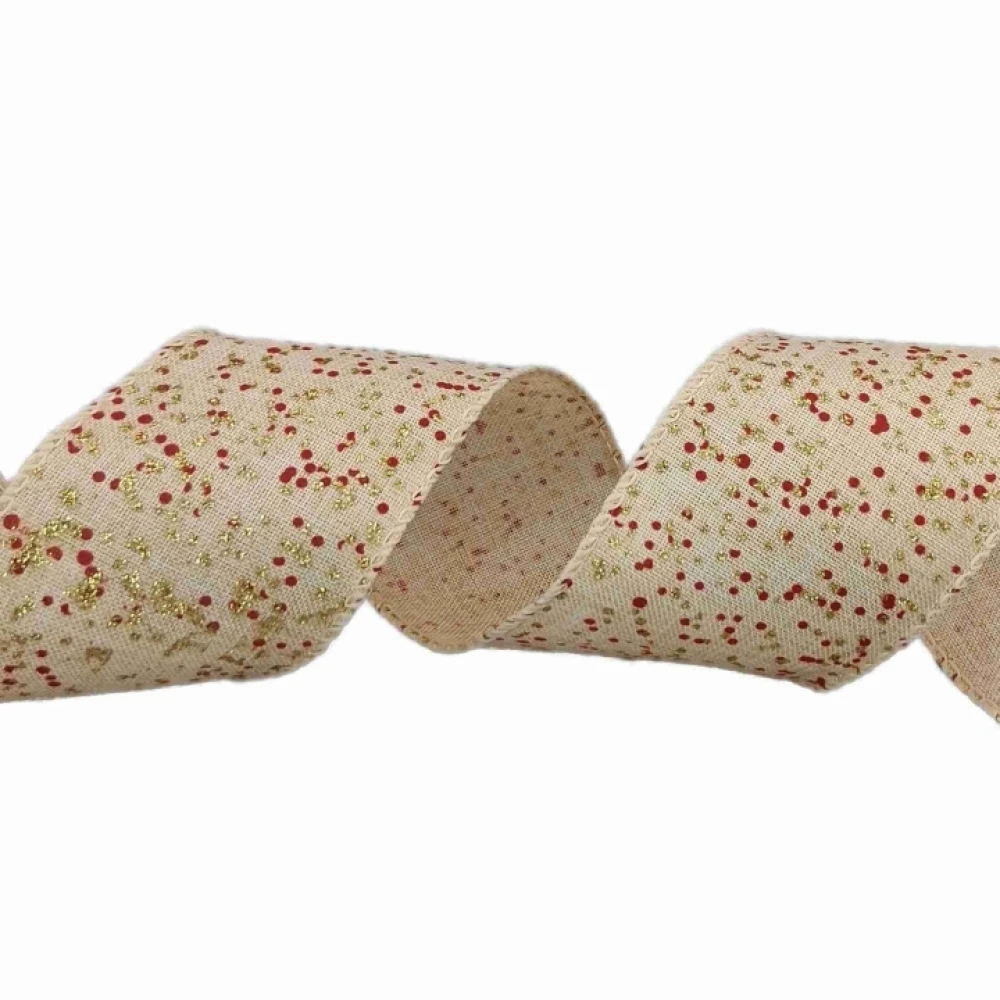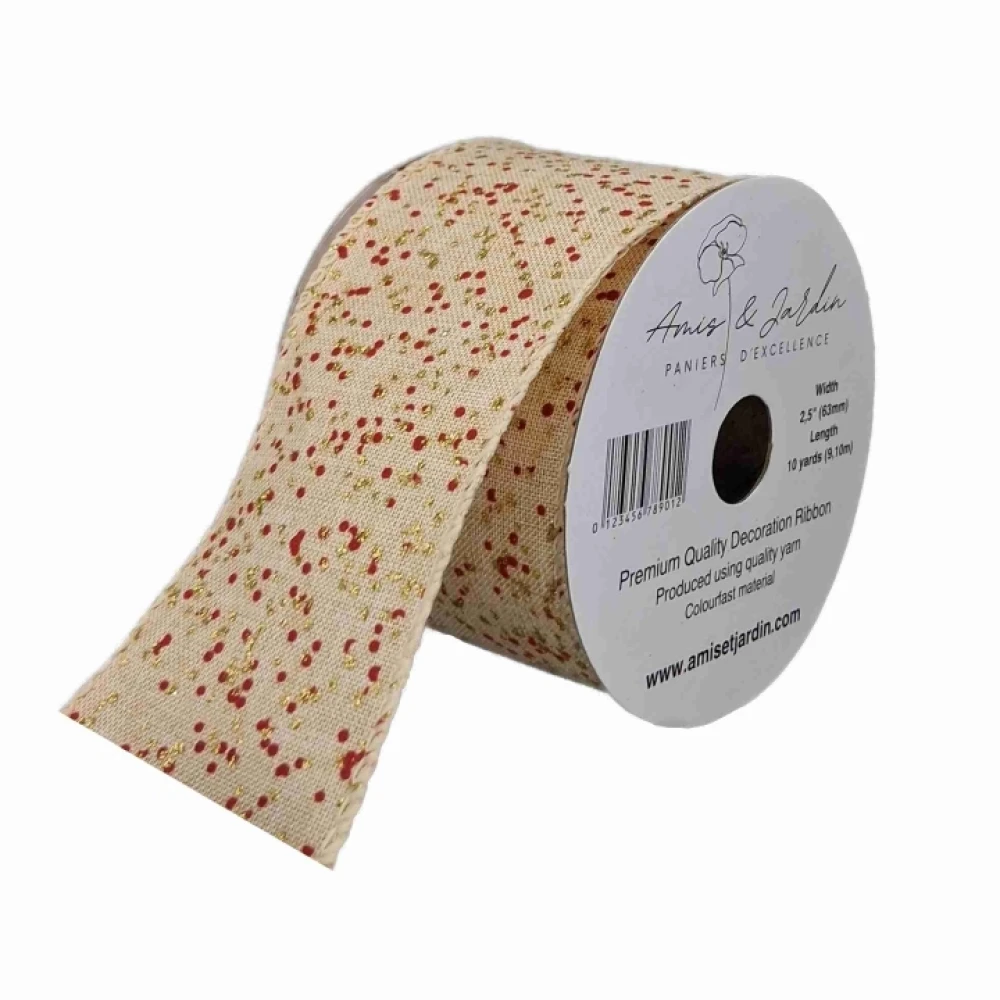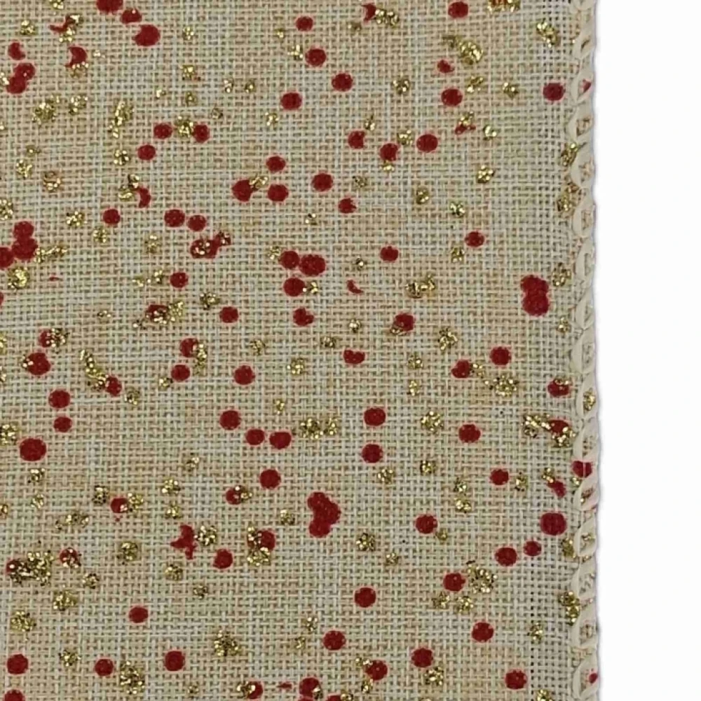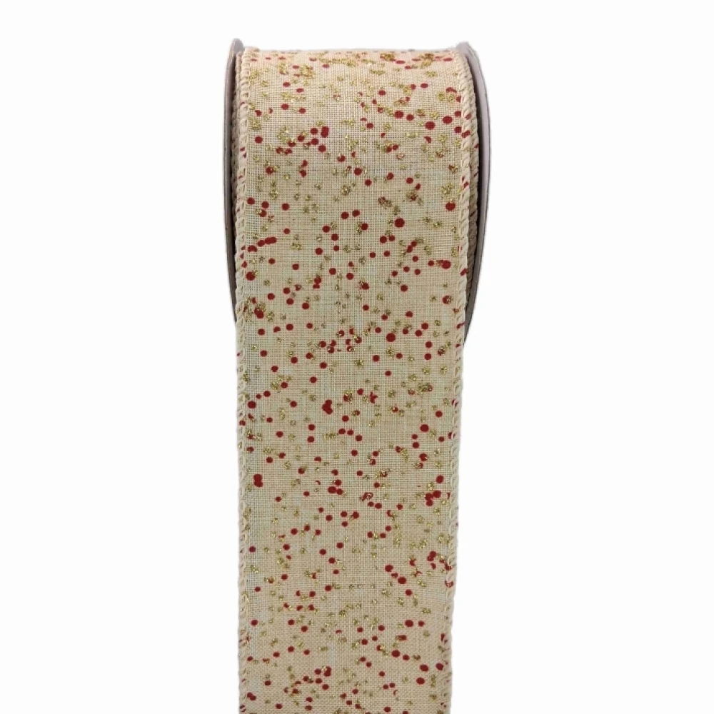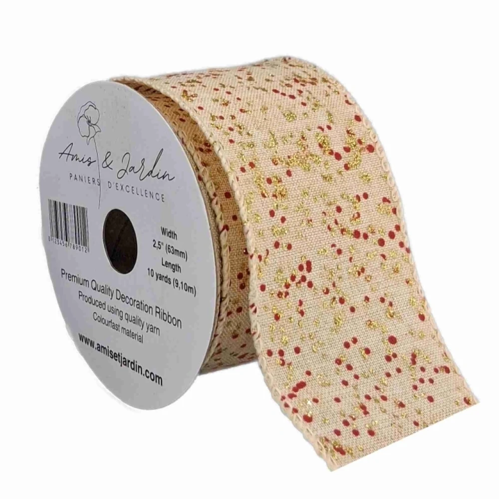 - Stuha jutová s drátkem krémová vánoční puntíky 9.1 m