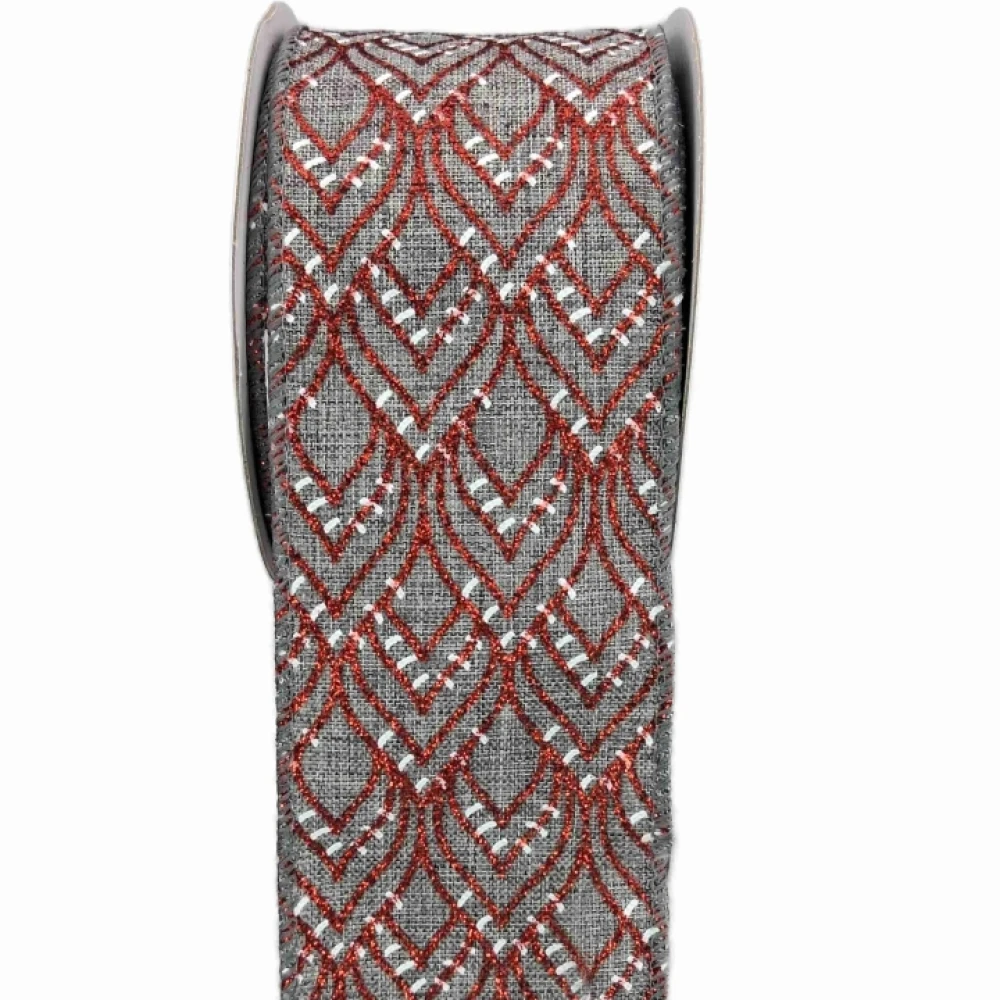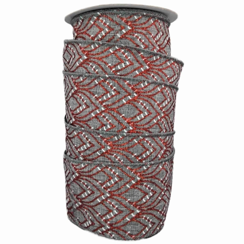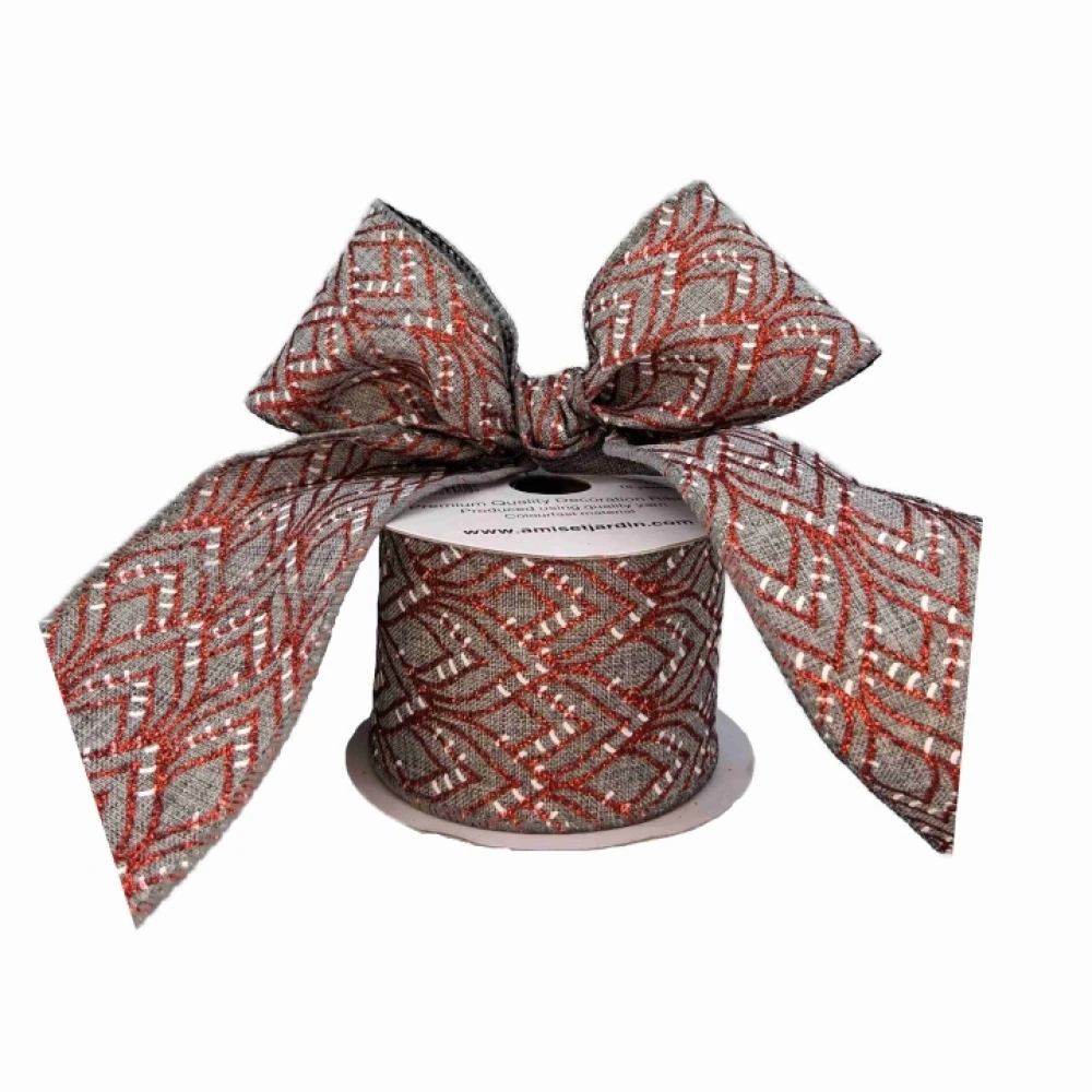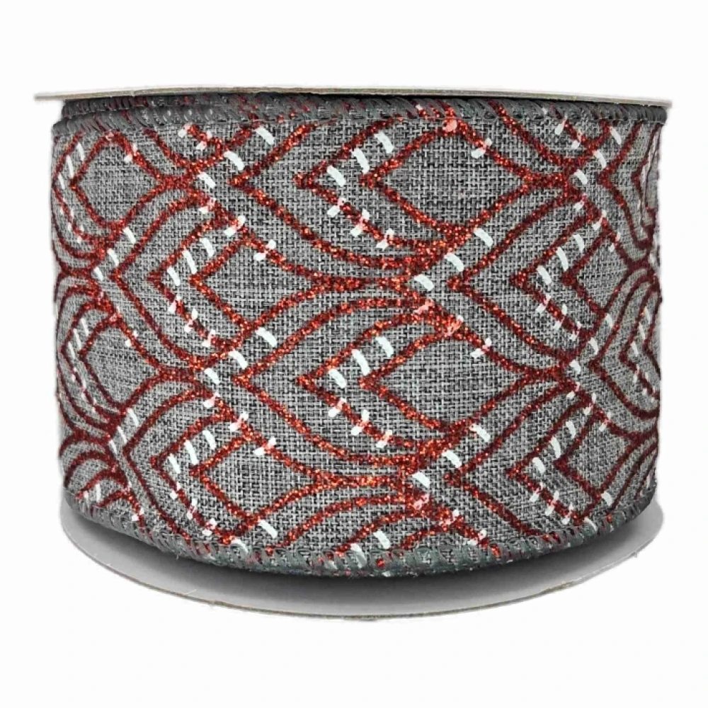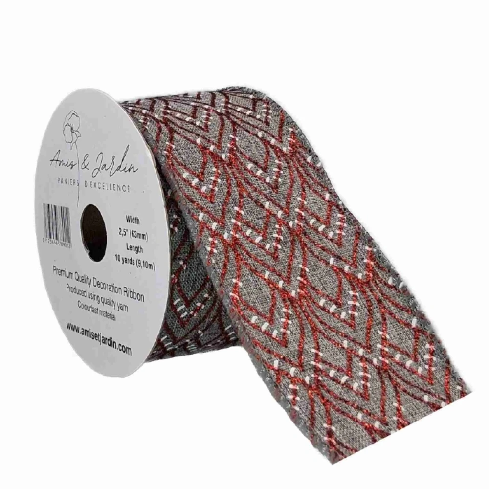 Stuha jutová s drátkem šedá vánoční geometrie 9.1 m