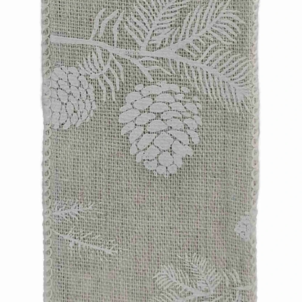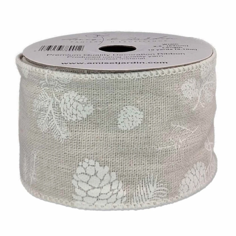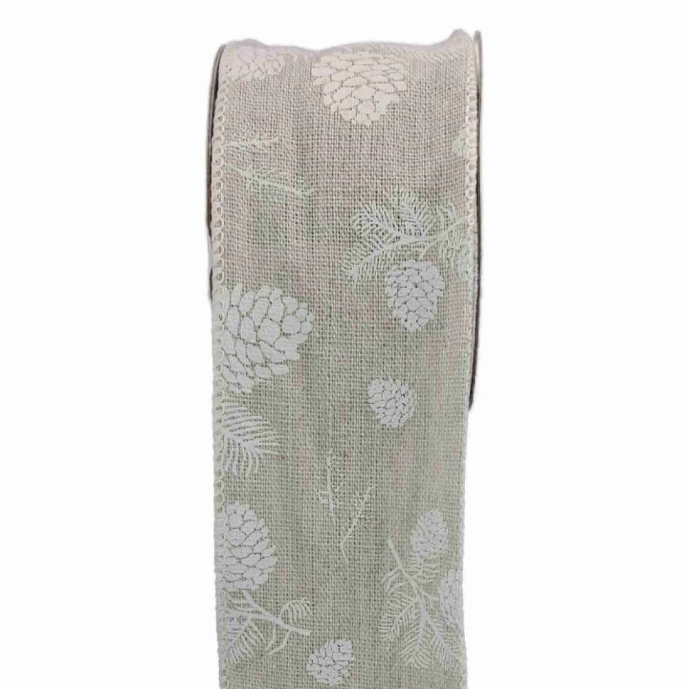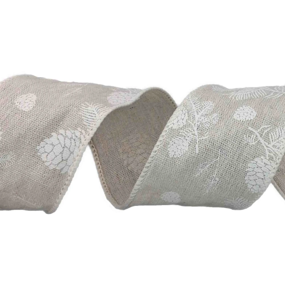 Stuha jutová s drátkem šedá vánoční šišky 9.1 m
