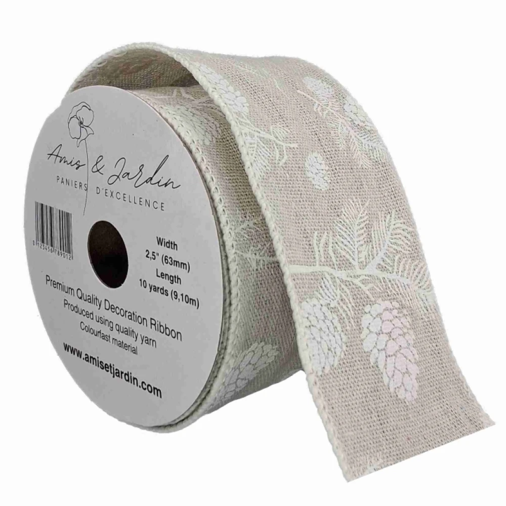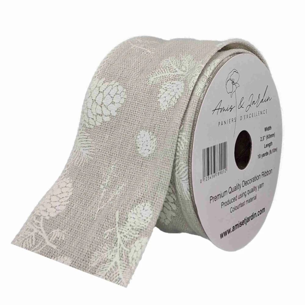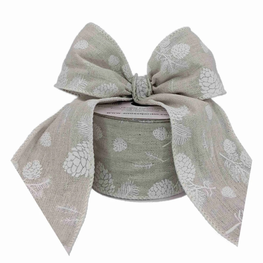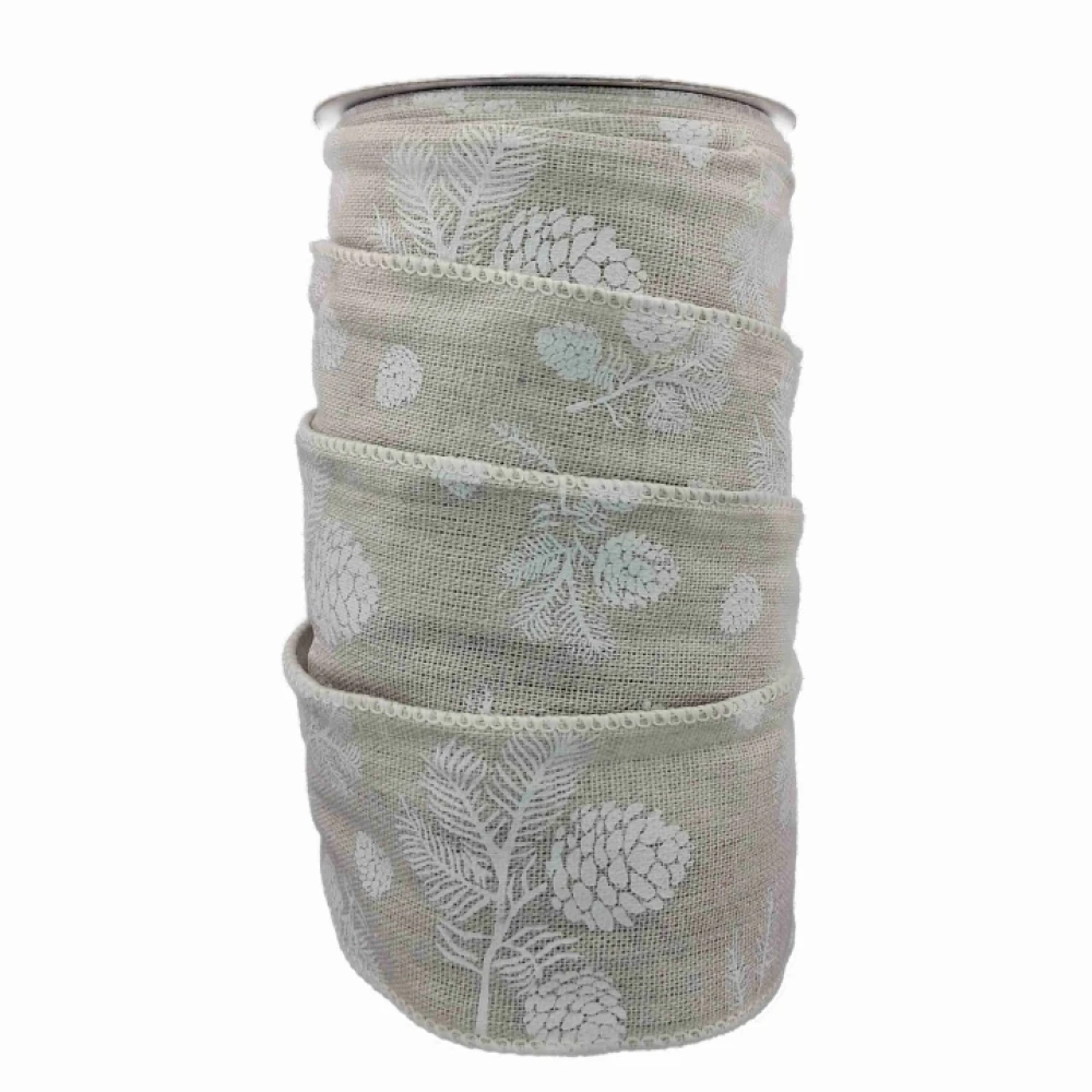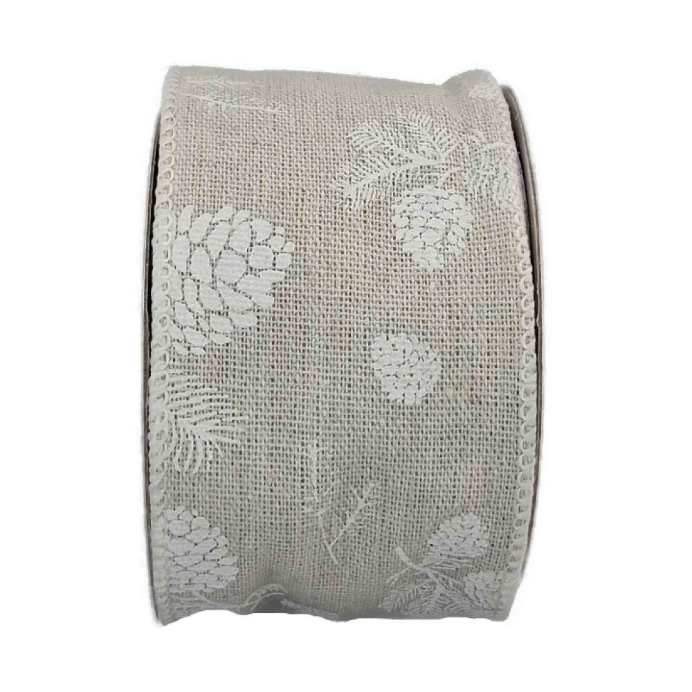 Stuha jutová s drátkem šedá vánoční šišky 9.1 m
