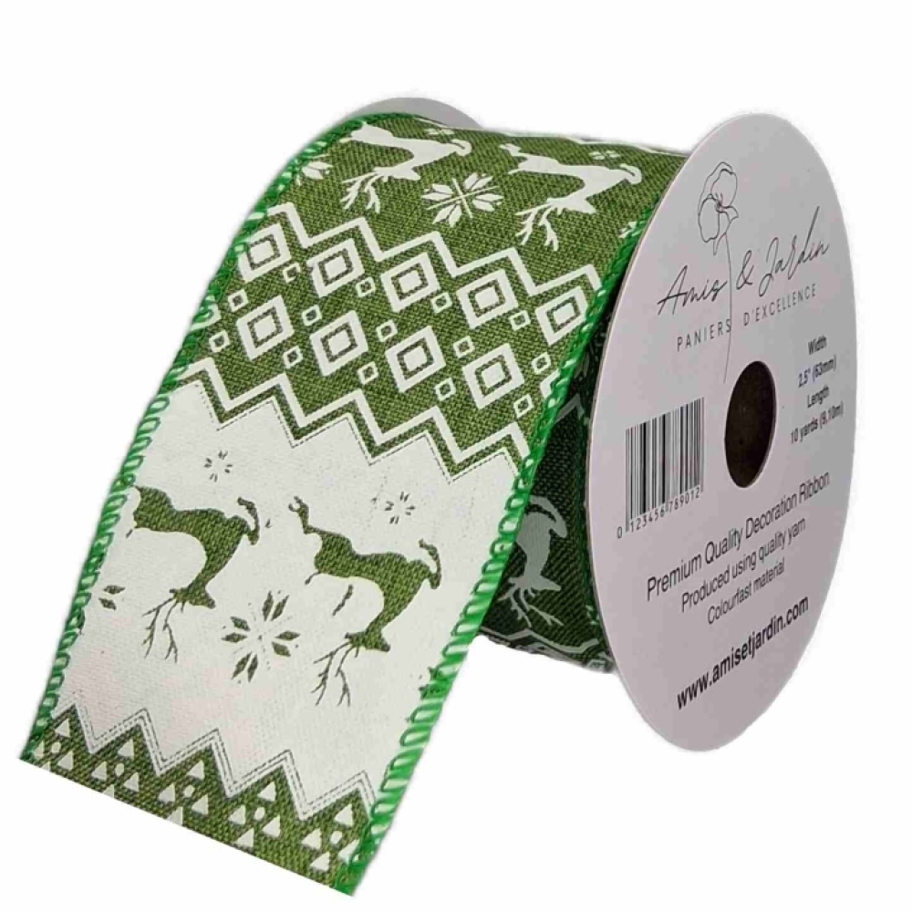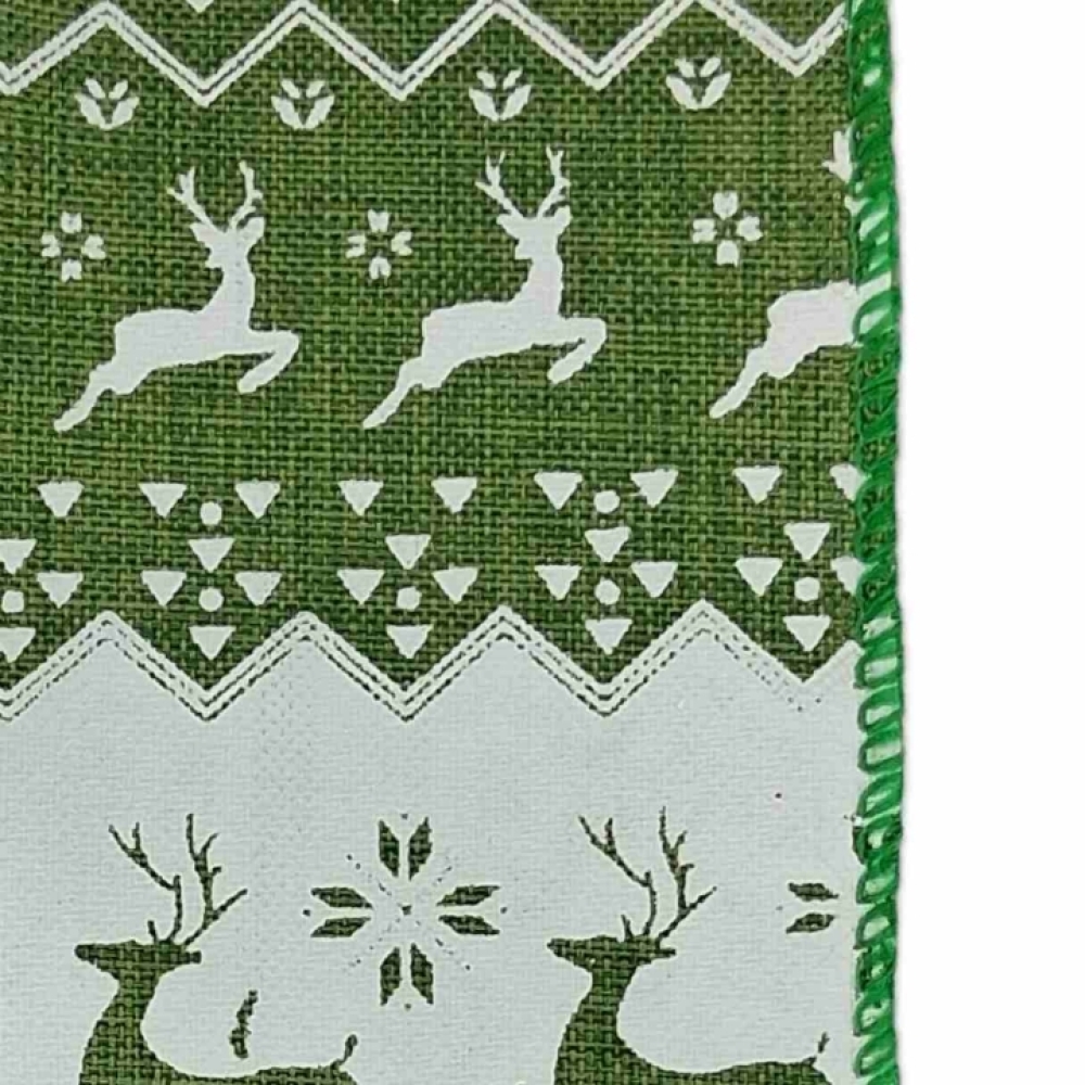 Stuha jutová s drátkem zelená vánoční jelen 9.1 m