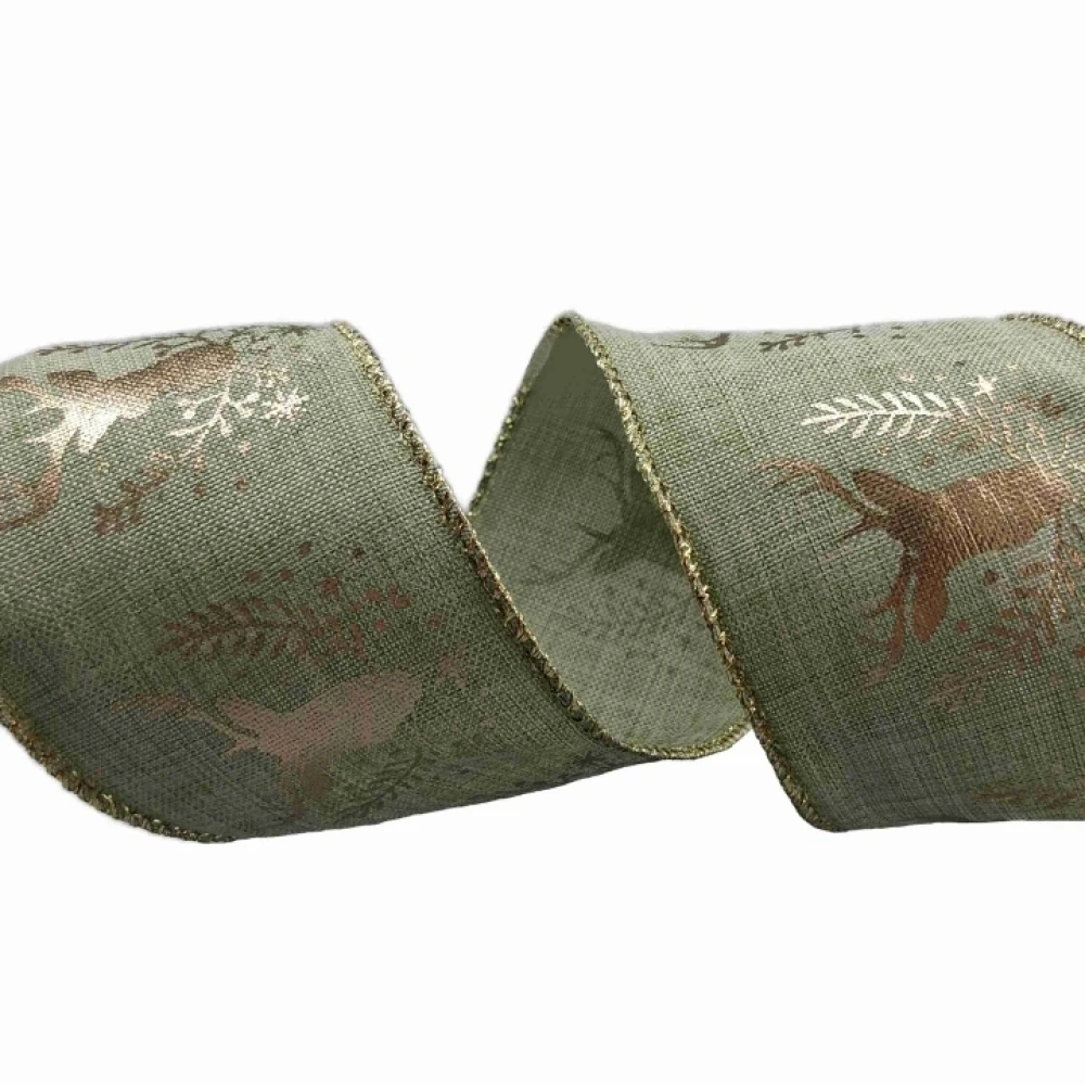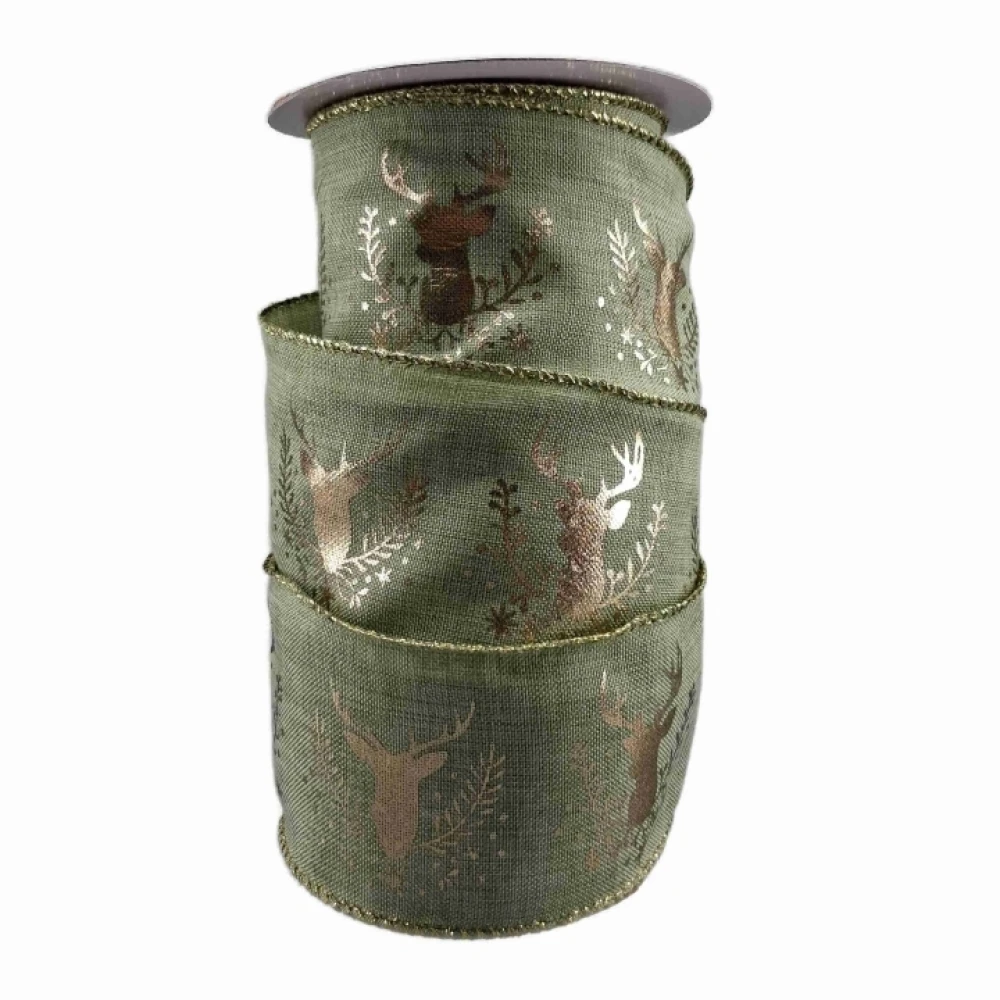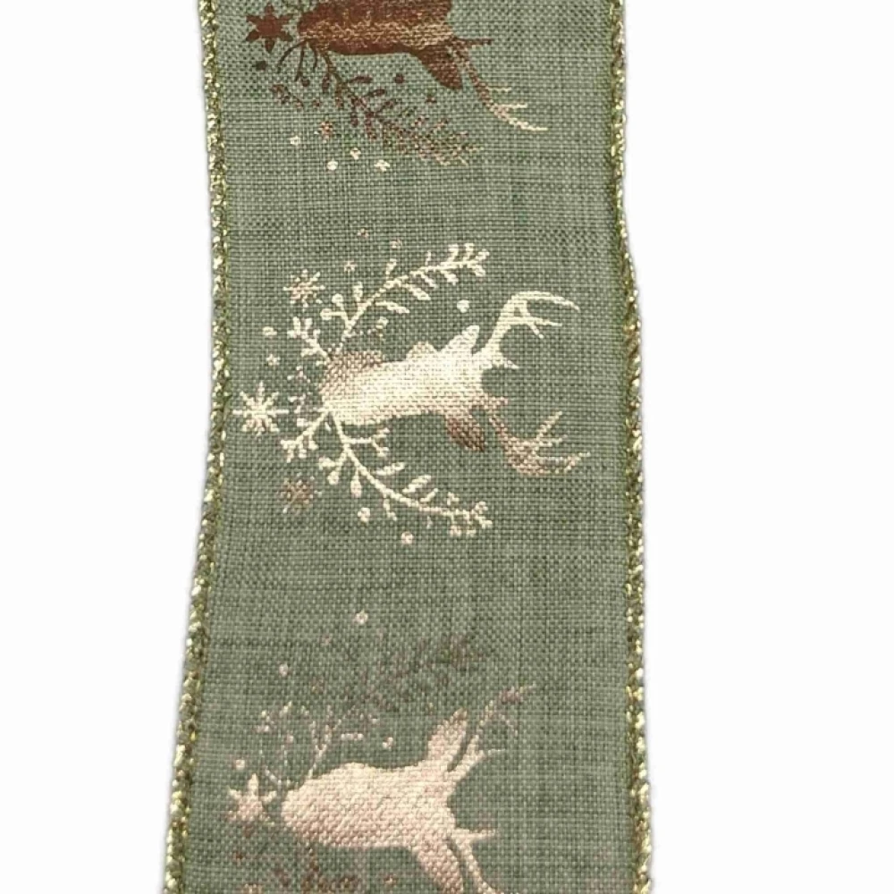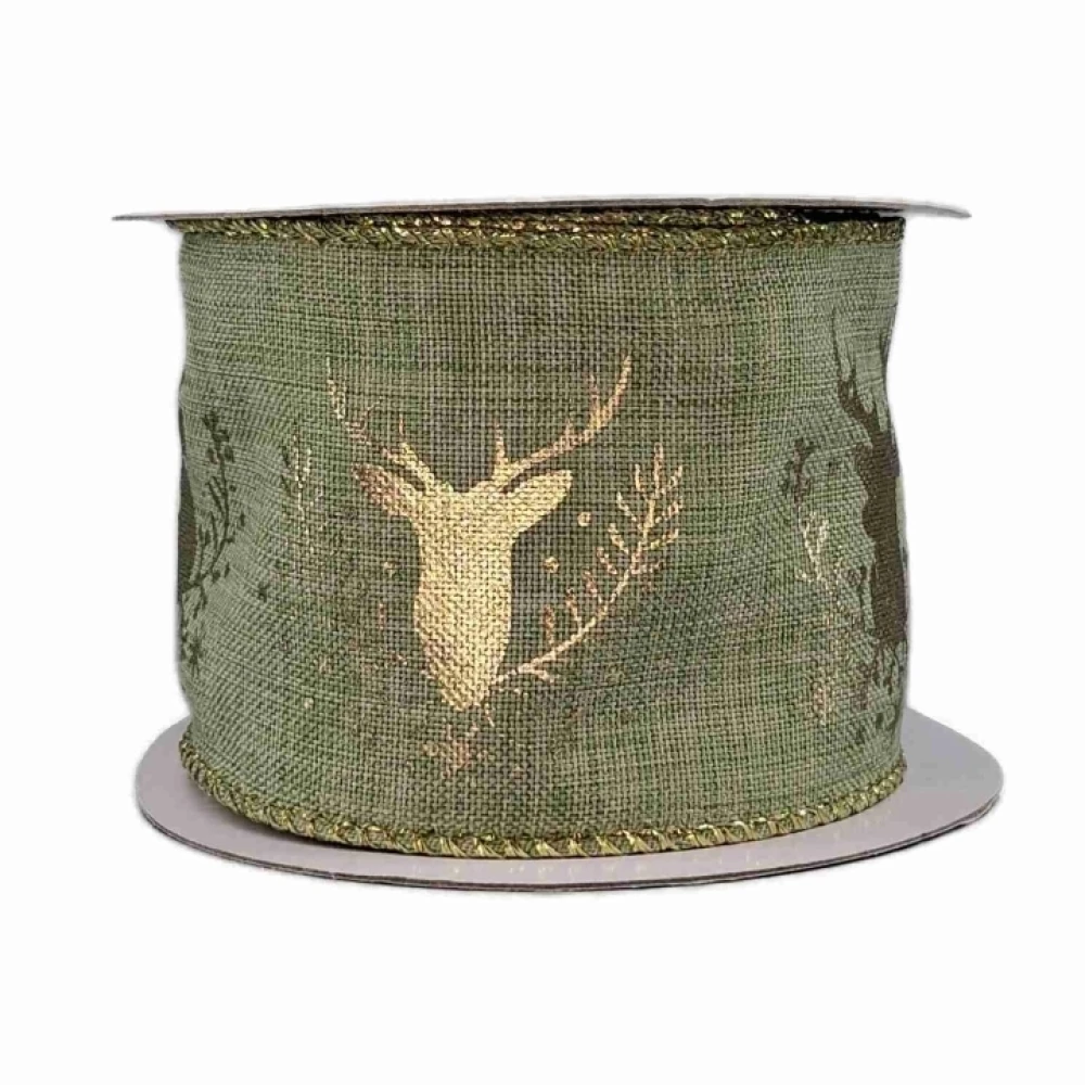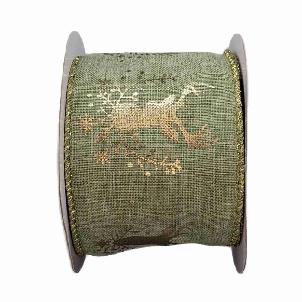 Stuha jutová s drátkem zelená vánoční jelen 9.1 m
