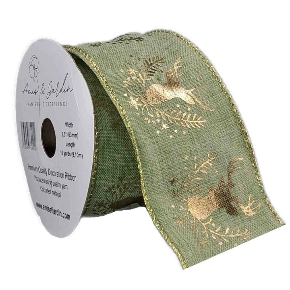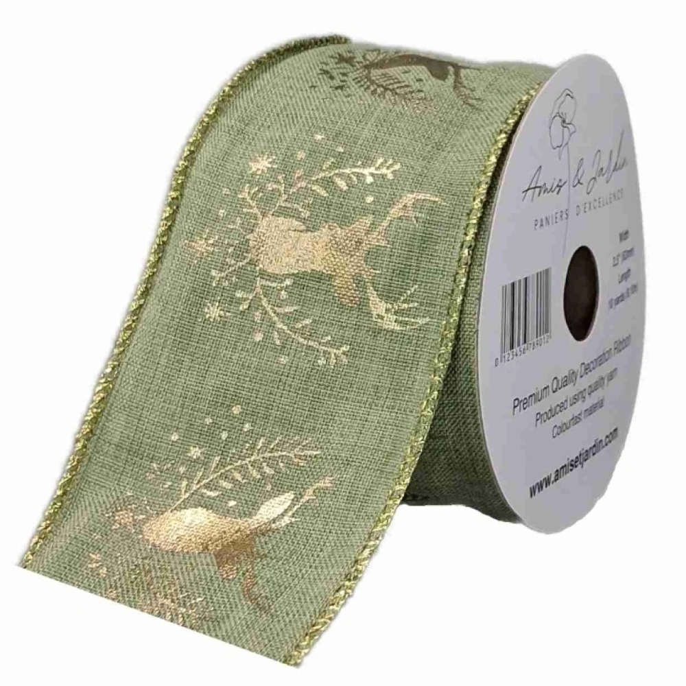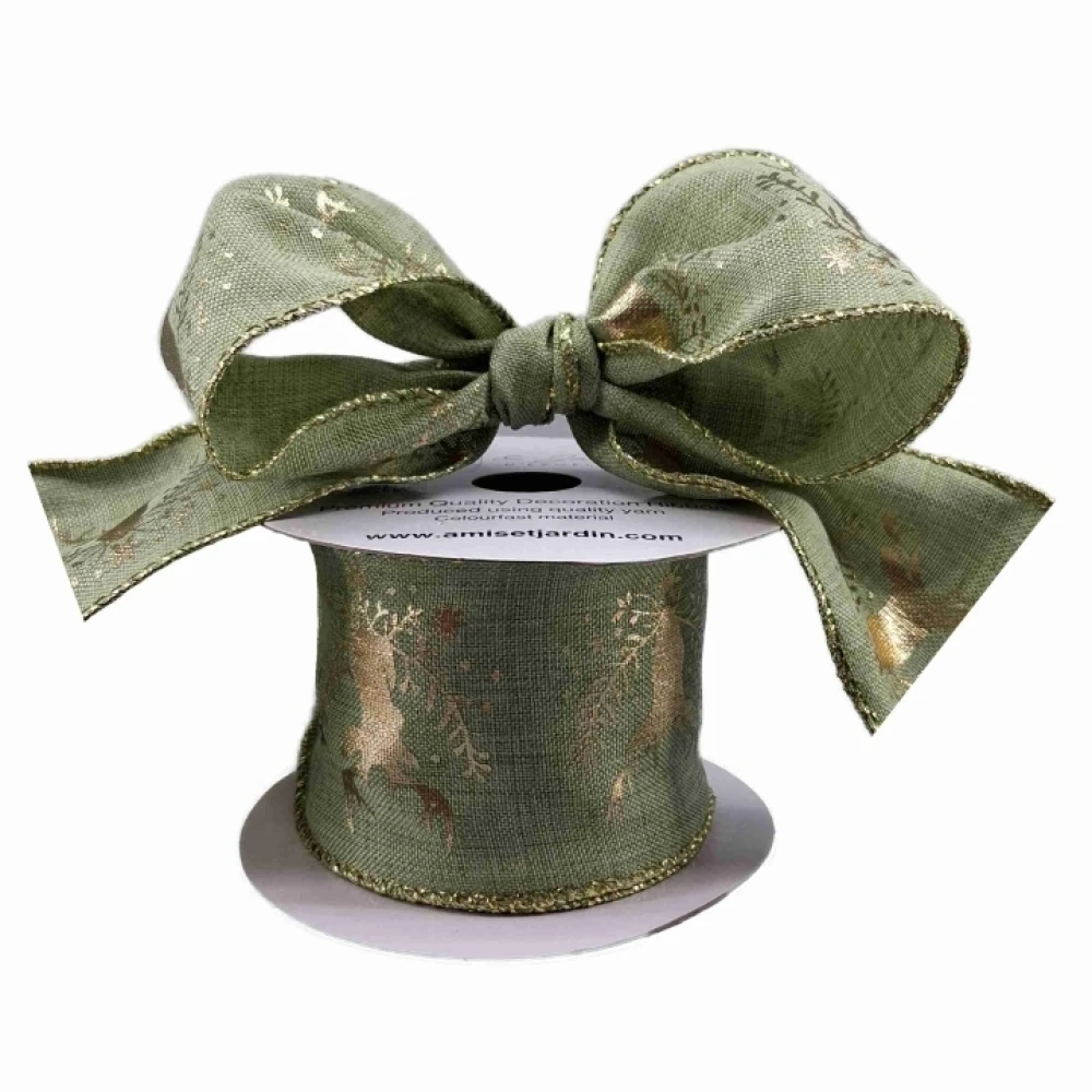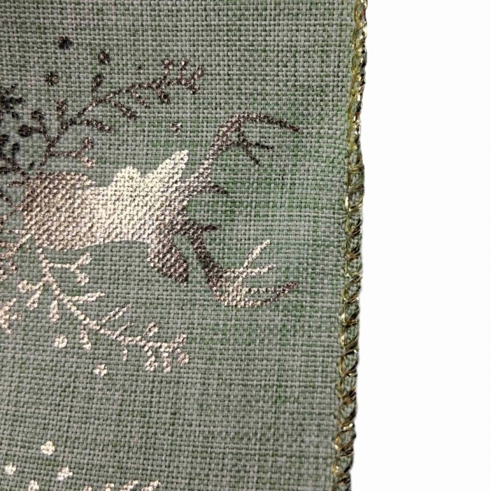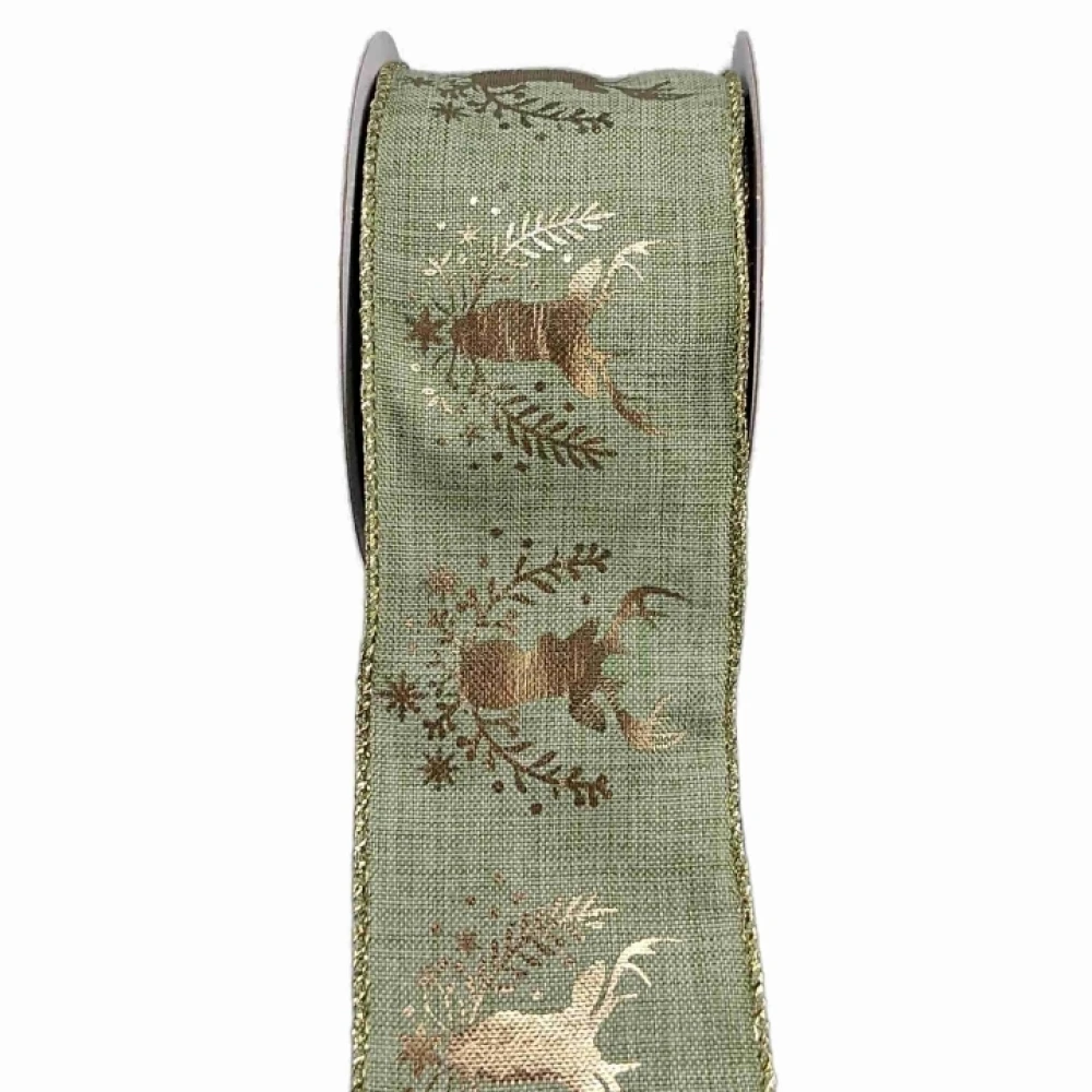 Stuha jutová s drátkem zelená vánoční jelen 9.1 m