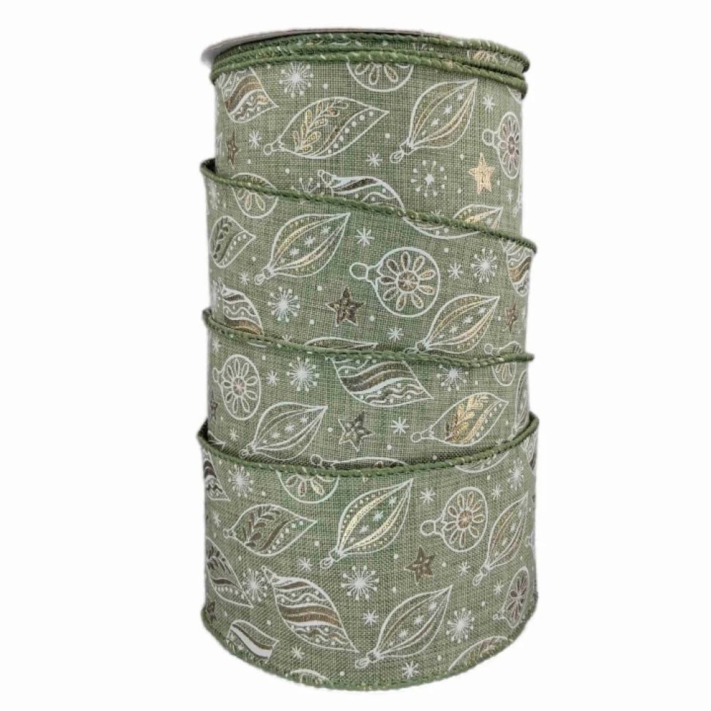 - Stuha jutová s drátkem zelená vánoční ozdoby 9.1 m