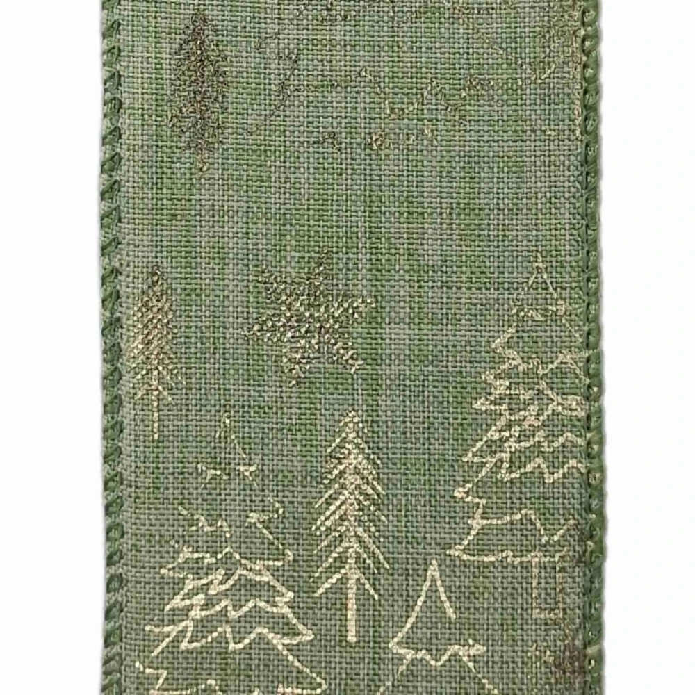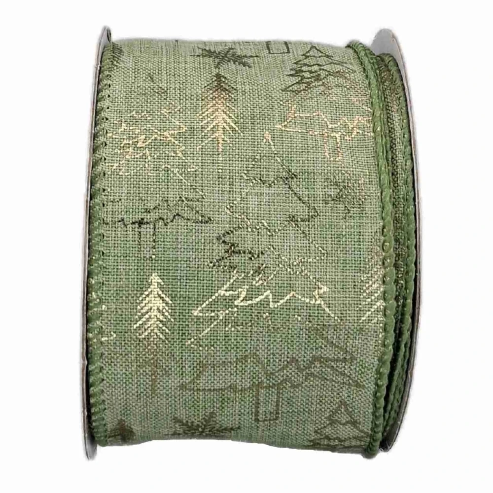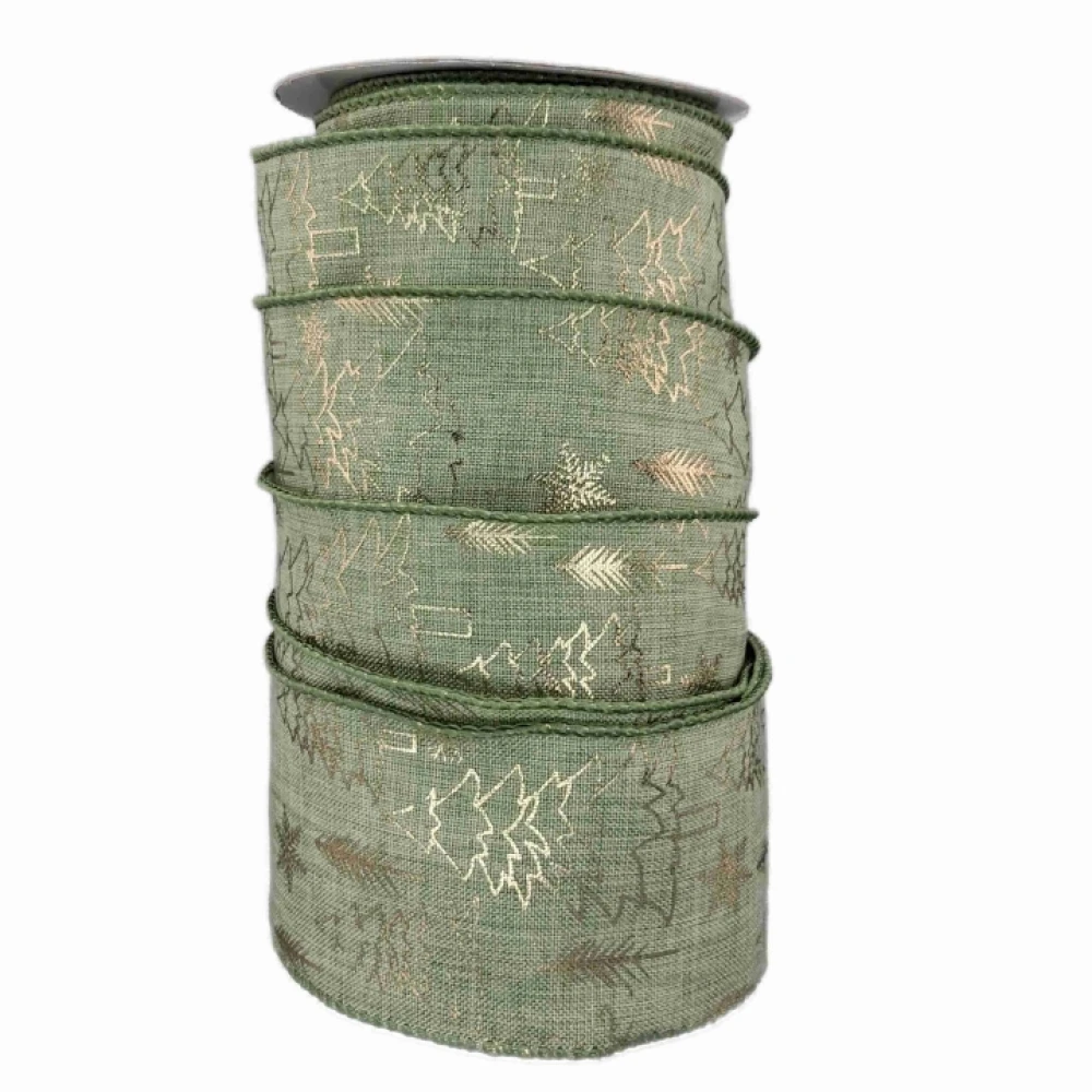 Stuha jutová s drátkem zelená vánoční stromek 9.1 m