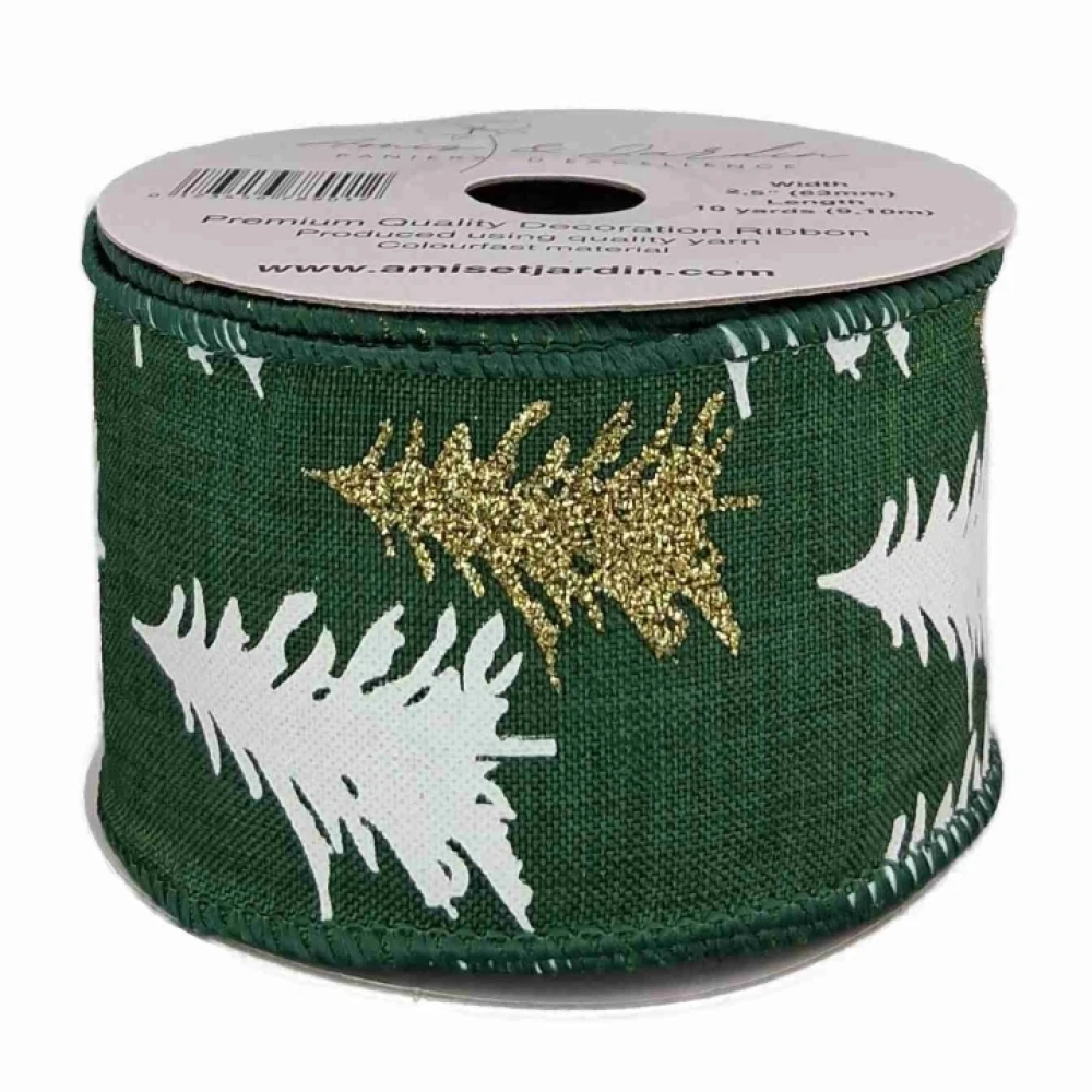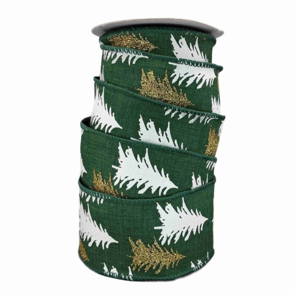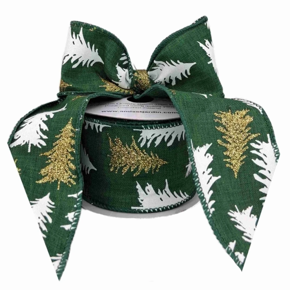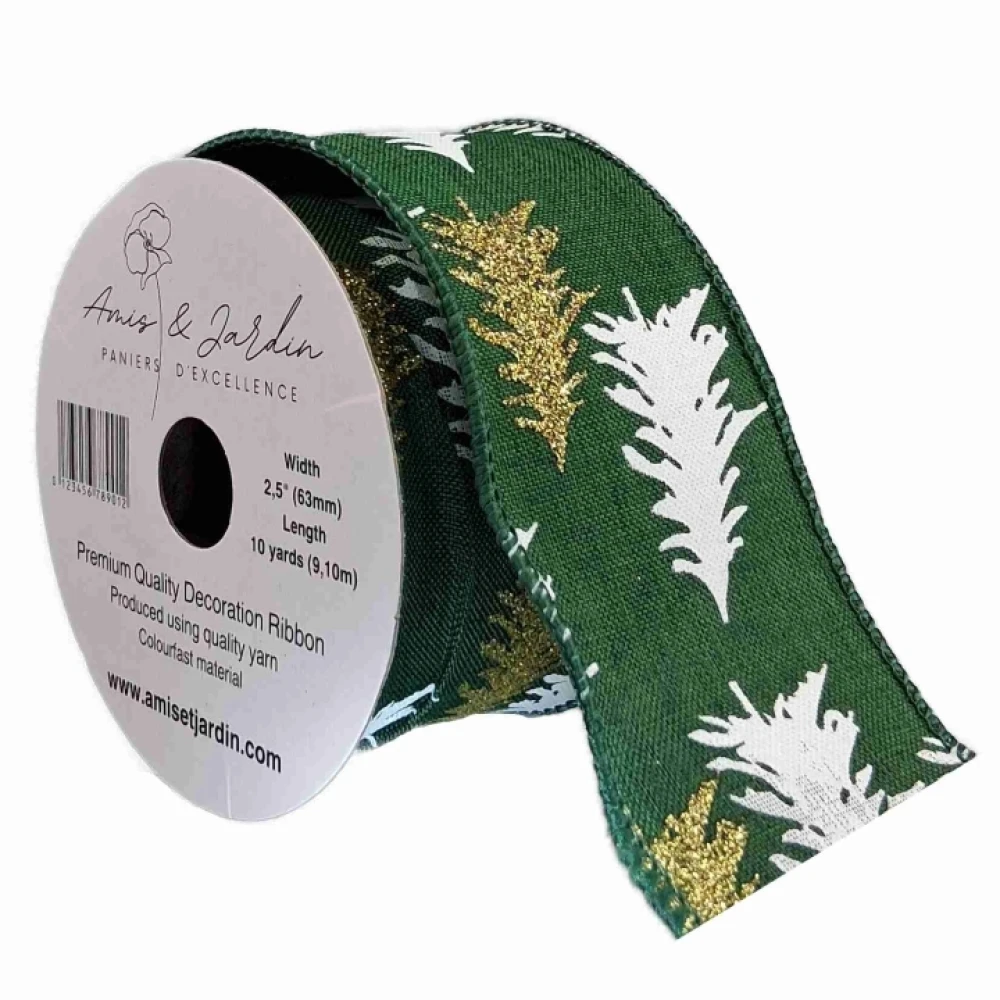 Stuha jutová s drátkem zelená vánoční stromek 9.1 m