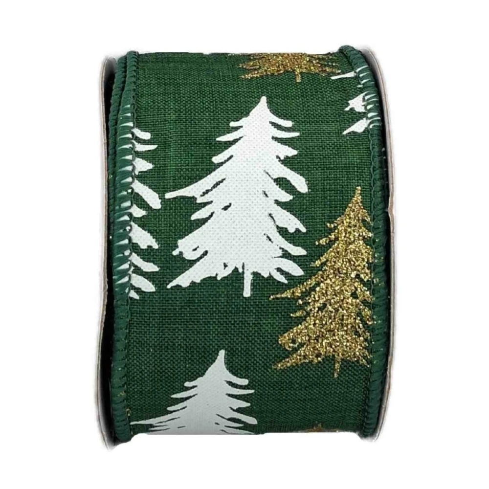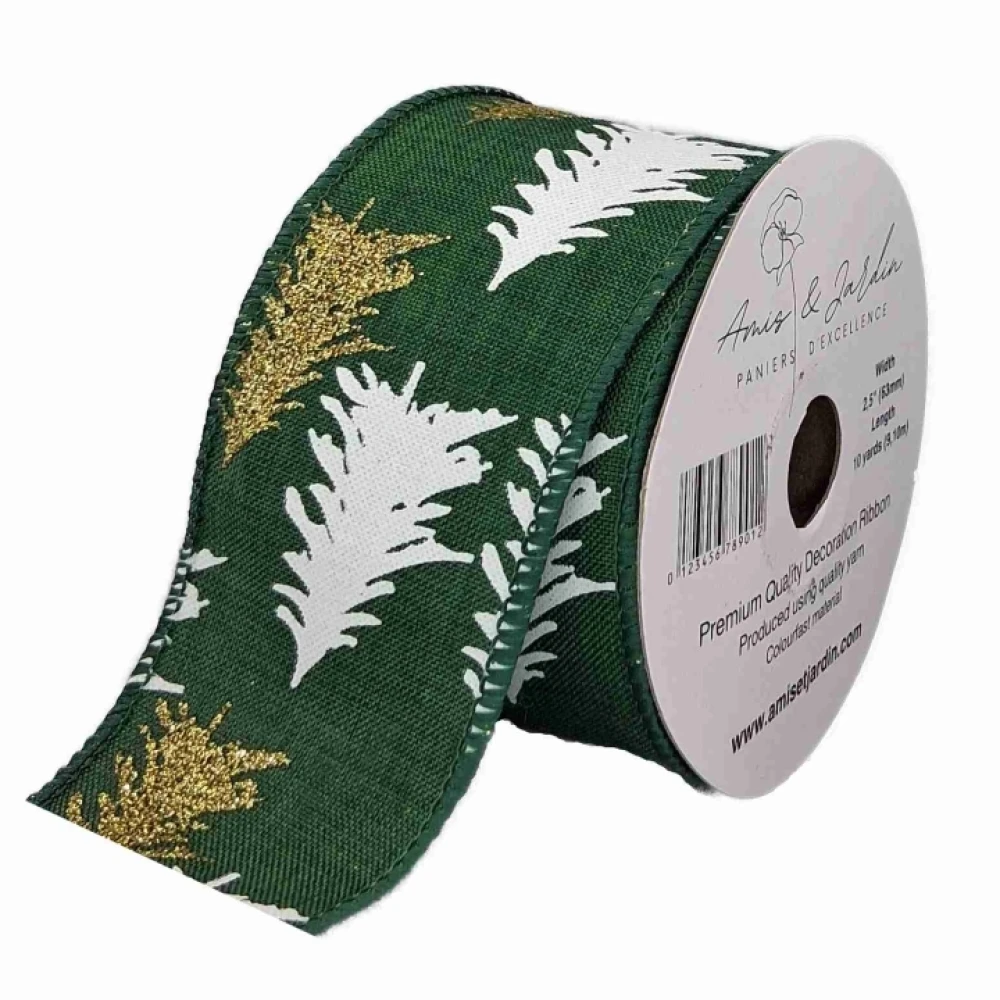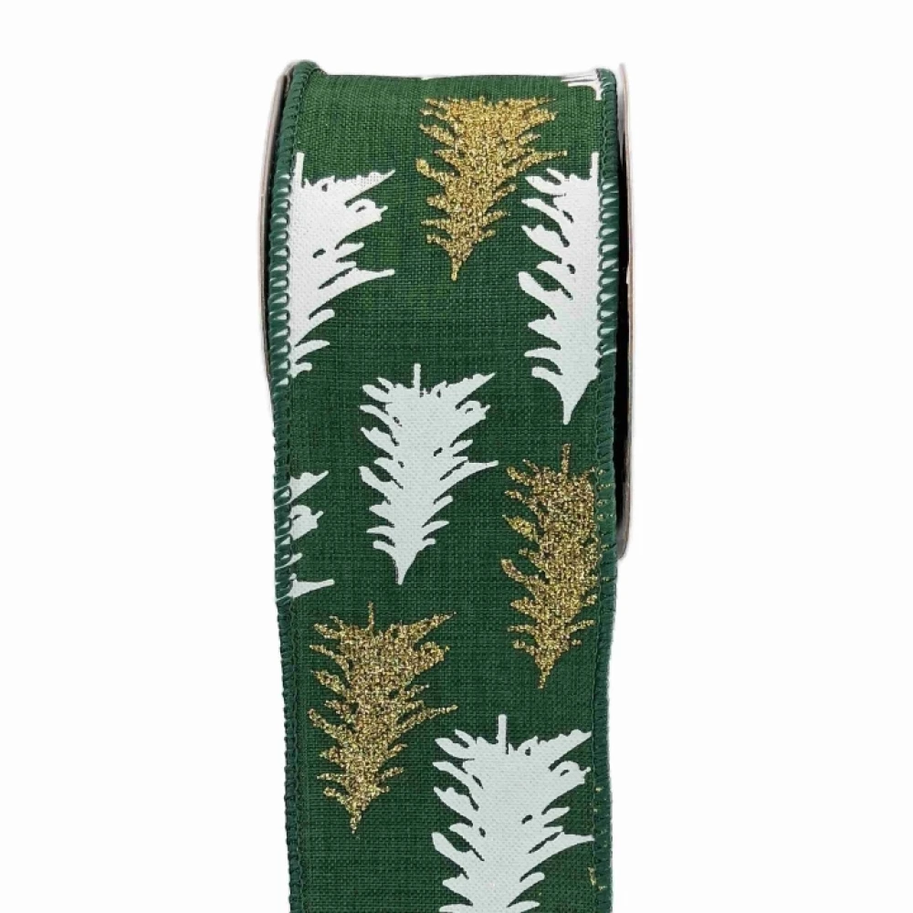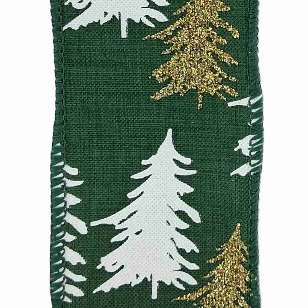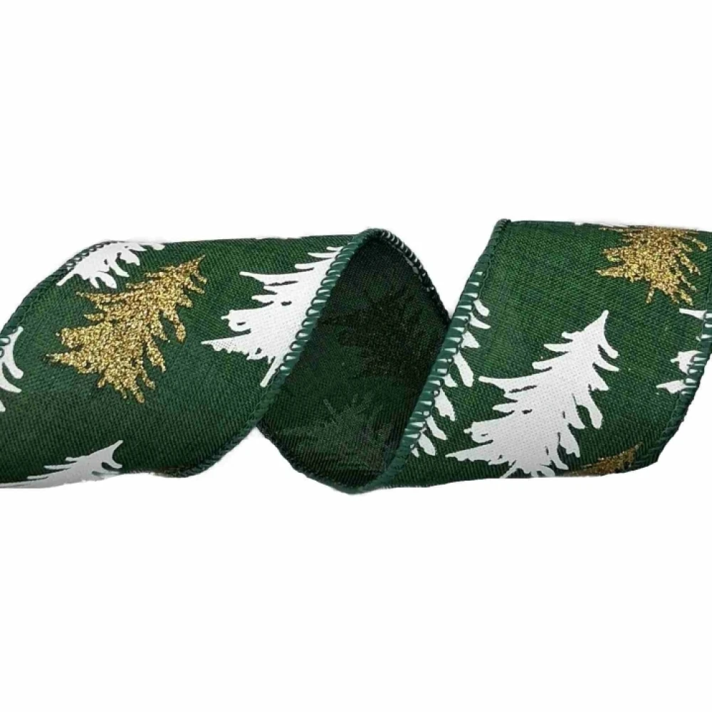 Stuha jutová s drátkem zelená vánoční stromek 9.1 m