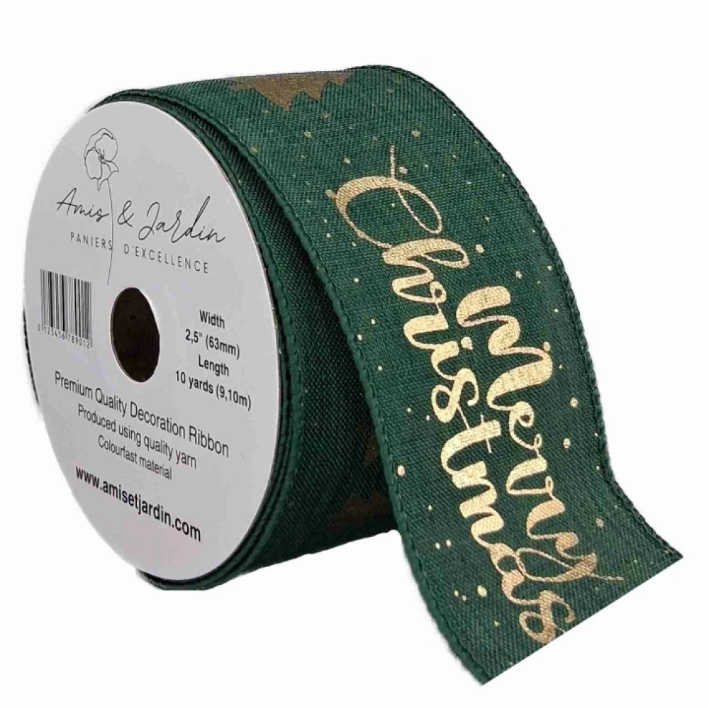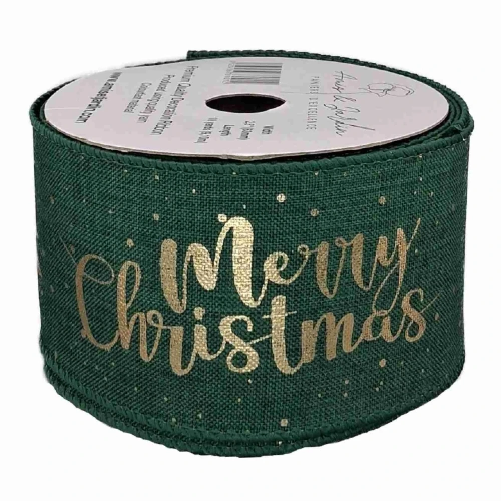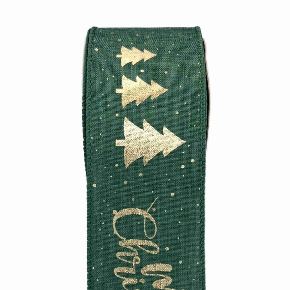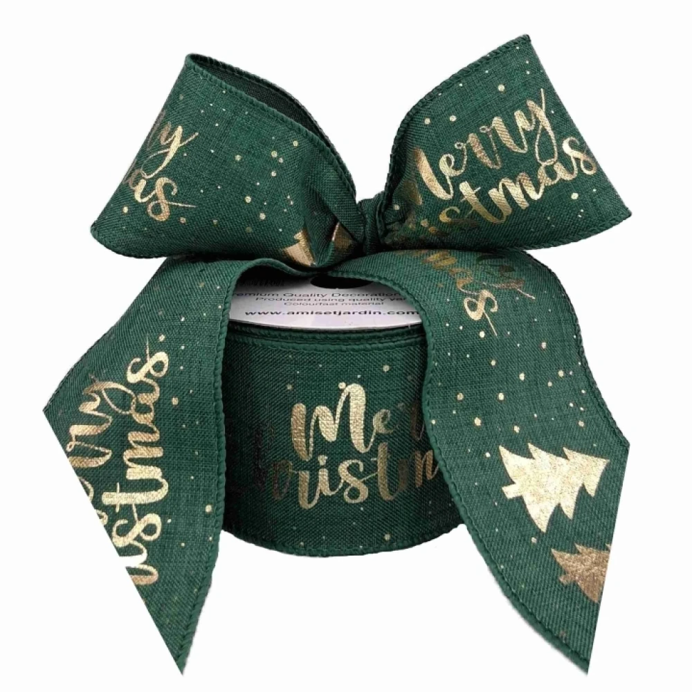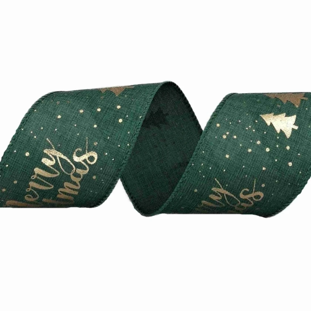 Stuha jutová s drátkem zelená vánoční stromek 9.1 m