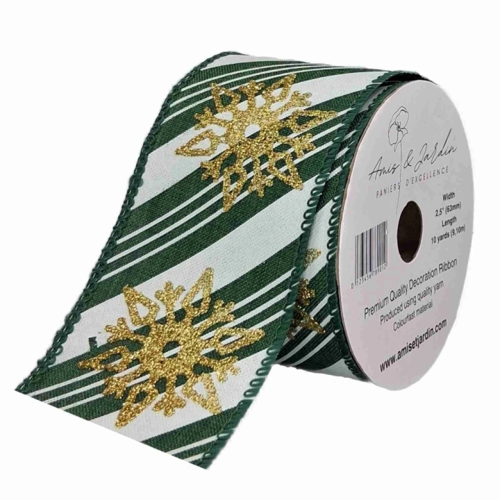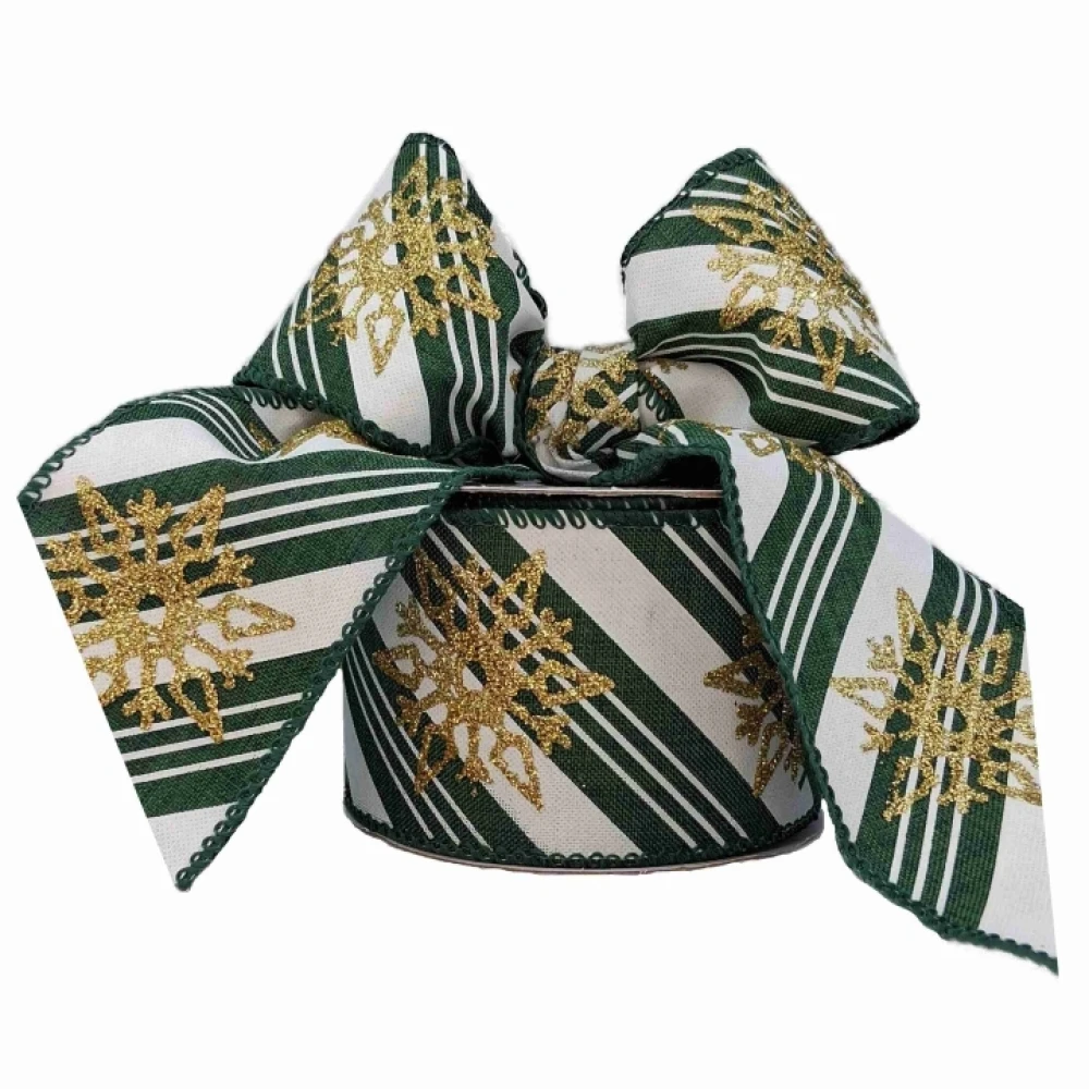 - Stuha jutová s drátkem zelená zimní sněhové vločky 9.1 m