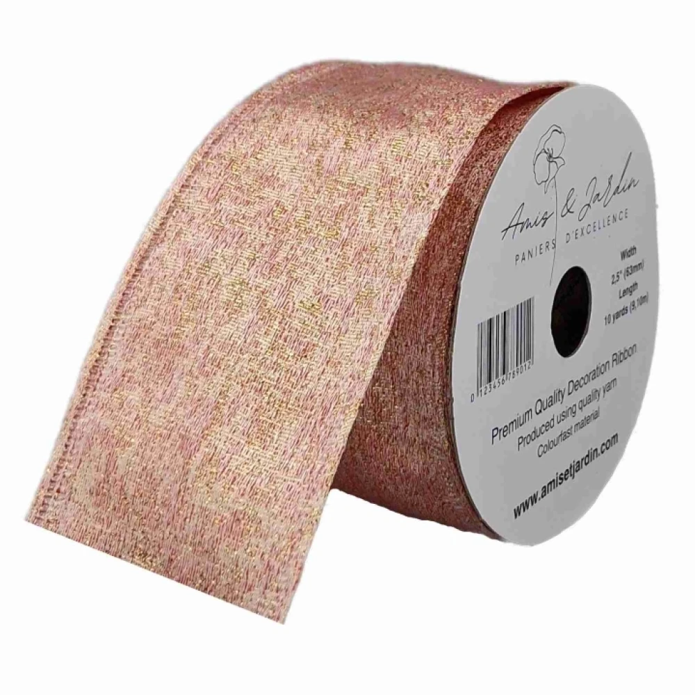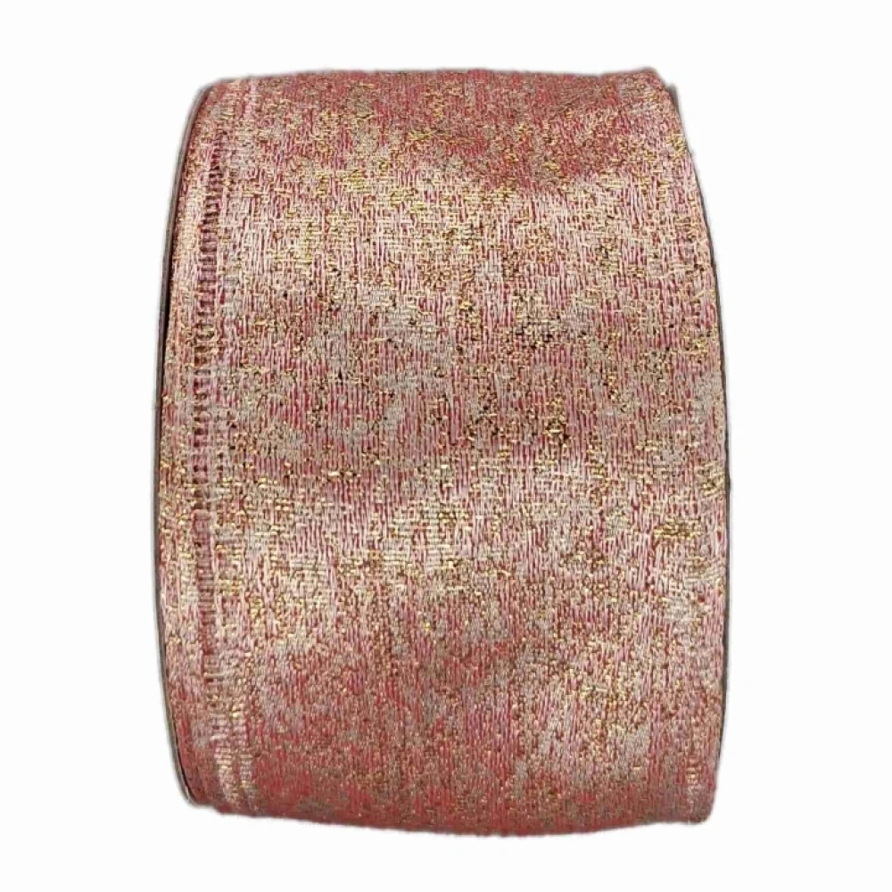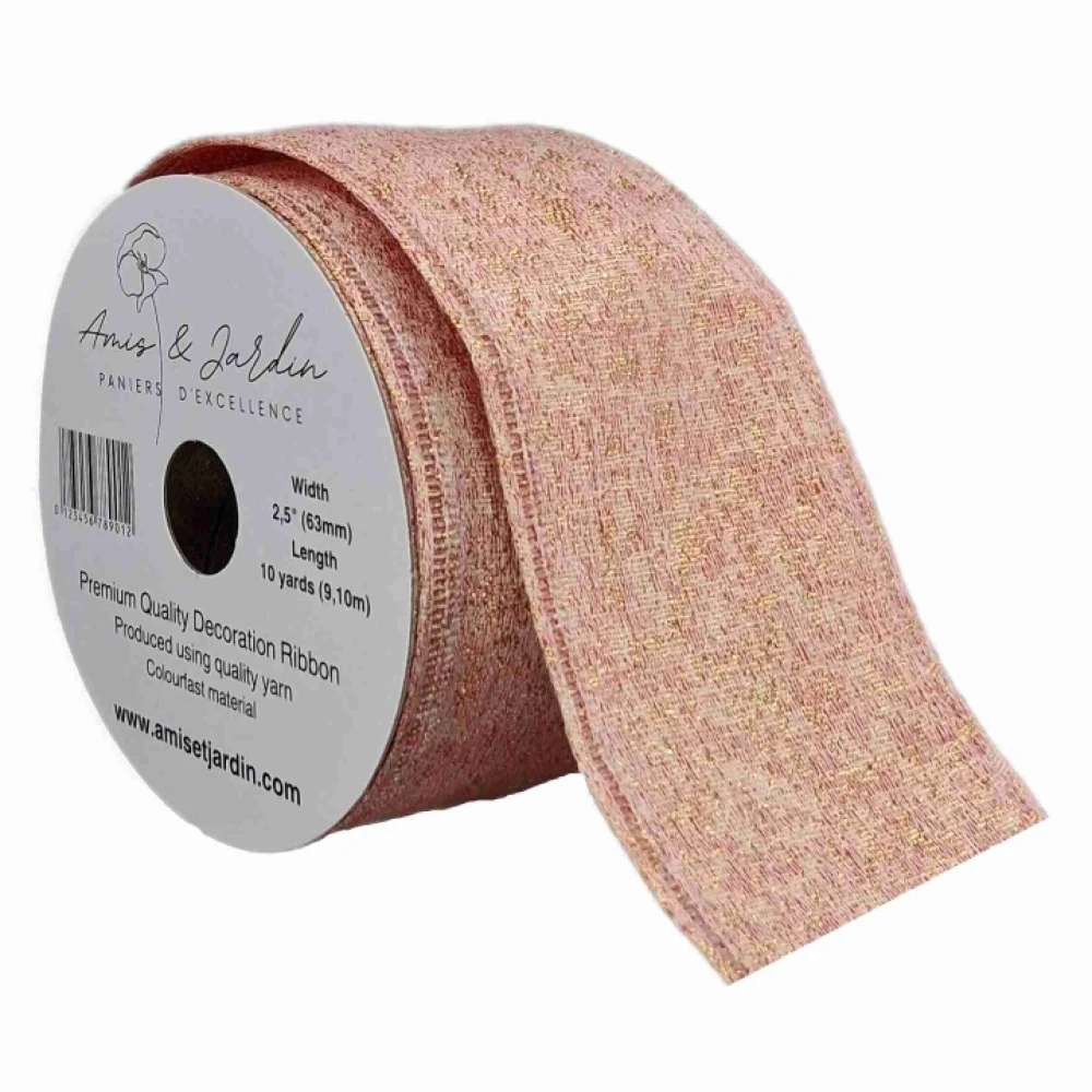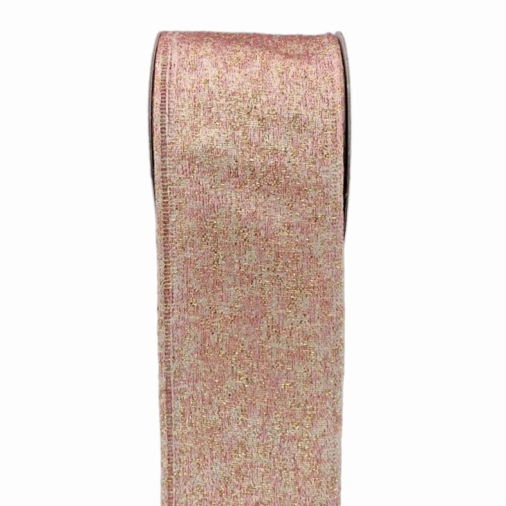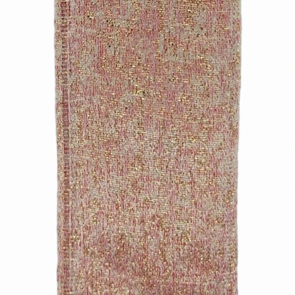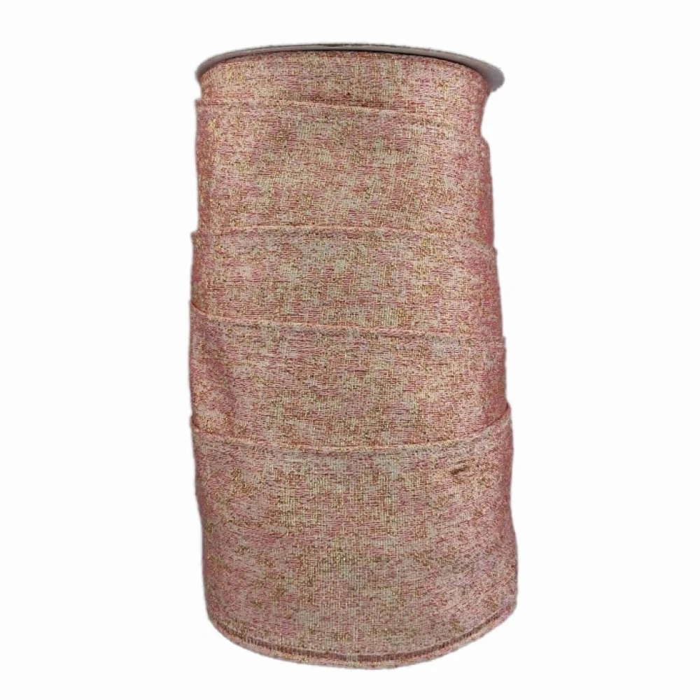 - Stuha lněná s drátkem růžová zlaté třpytky 9.1 m