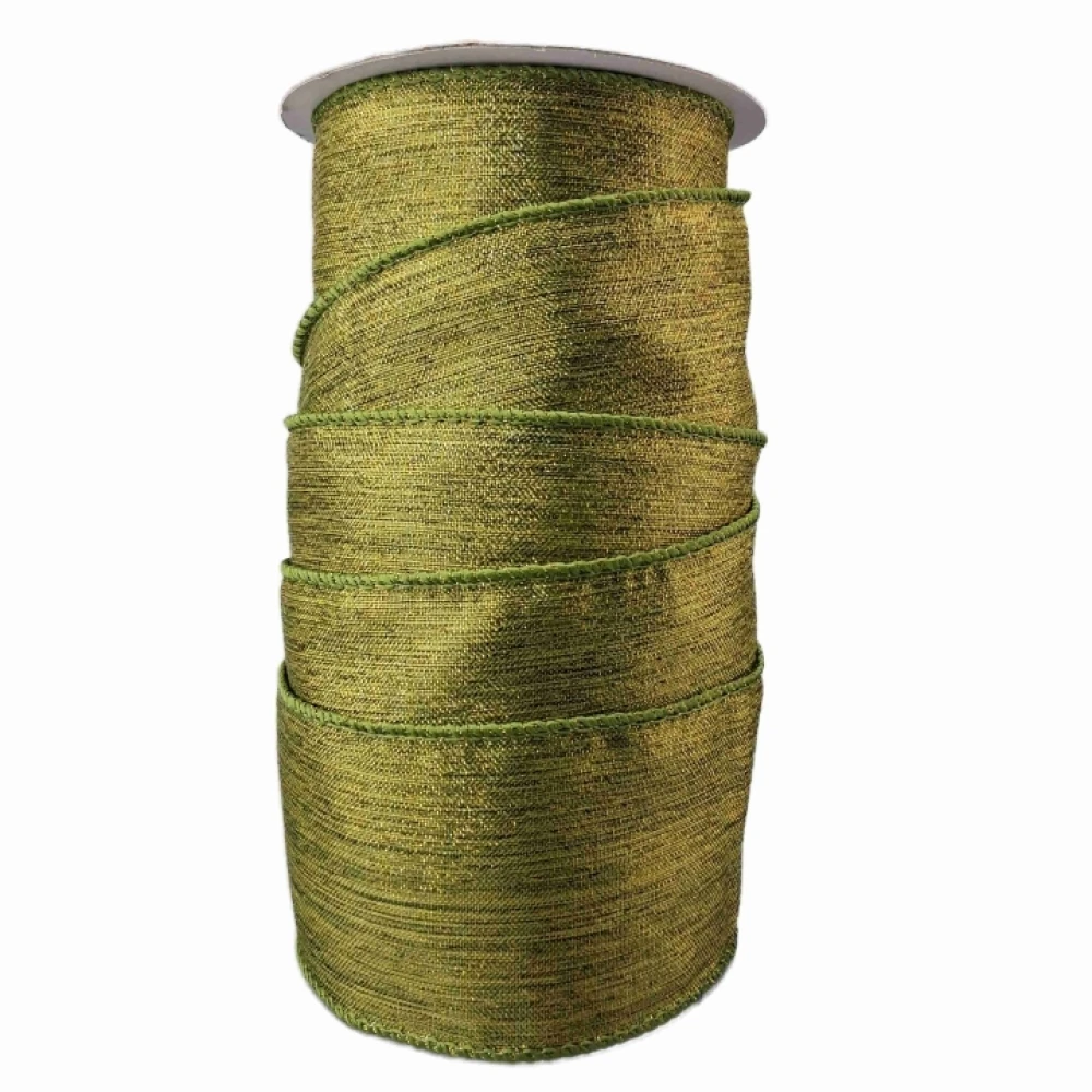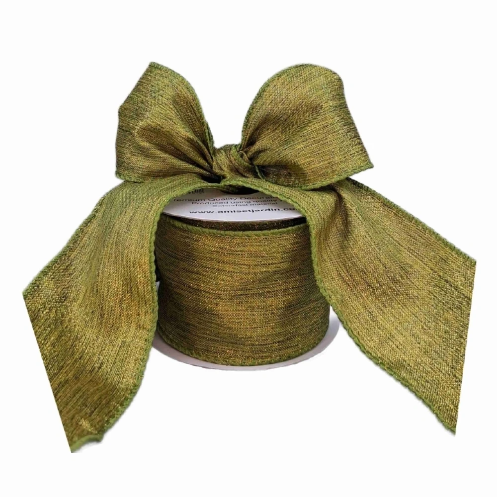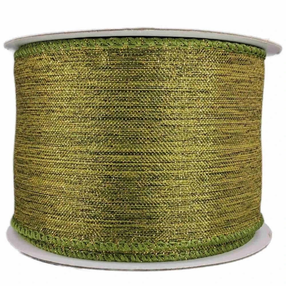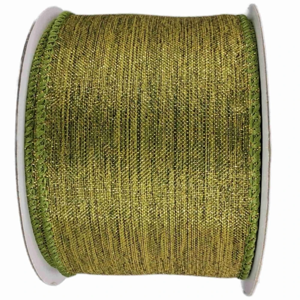Stuha organzová s drátkem zelená vánoční 9.1 m