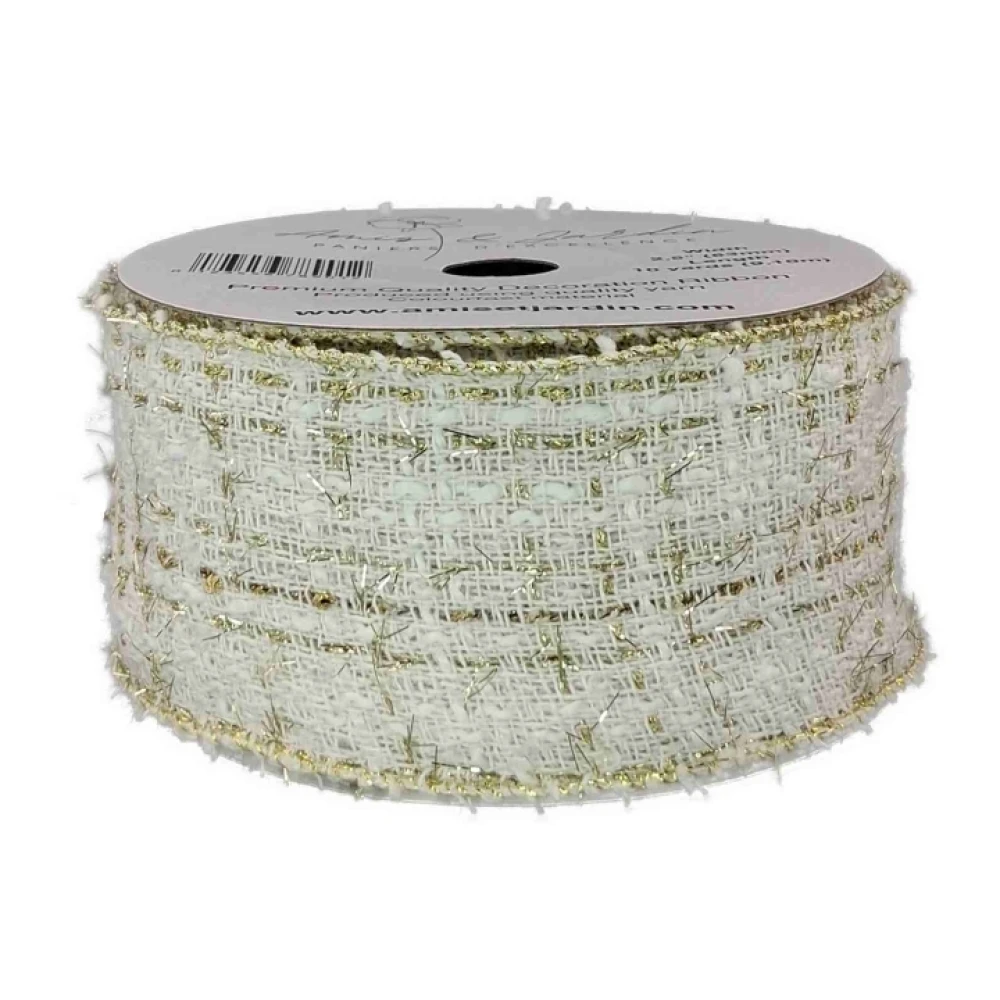 Stuha pletená s drátkem bílá bez potisku 9.1 m